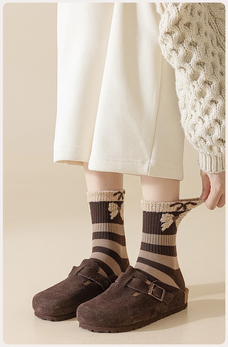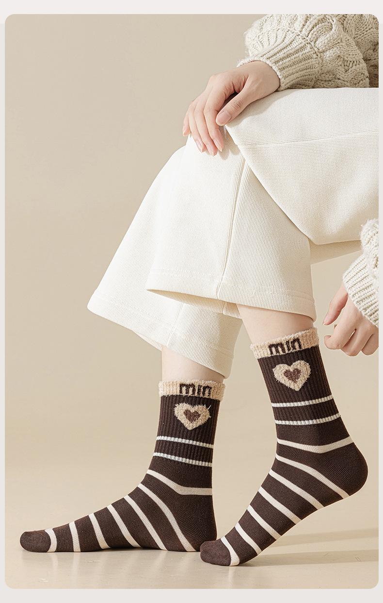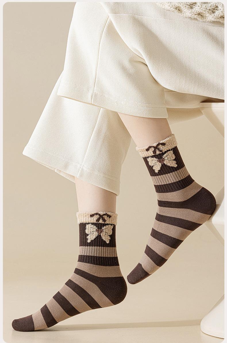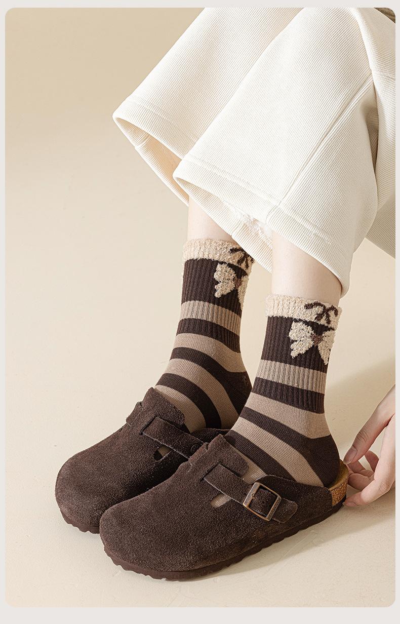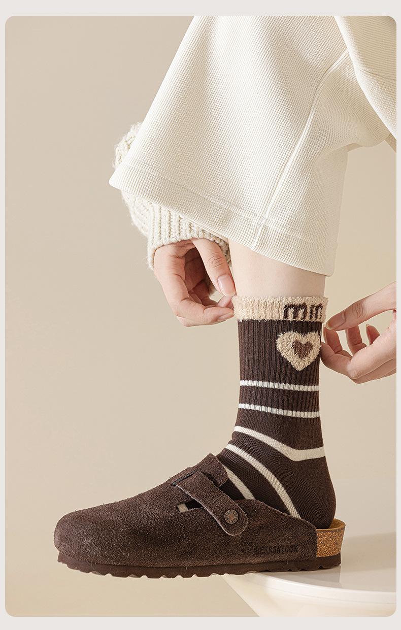 Calcetines de mujer, calcetines de moda de otoño e invierno, calcetines de marea, calcetines de algodón de color Maillard, calcetines de pelo de oso, venta al por mayor