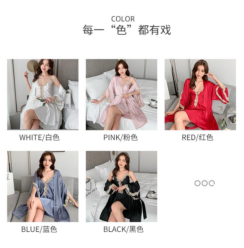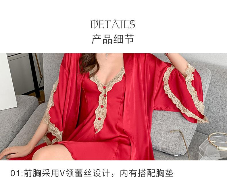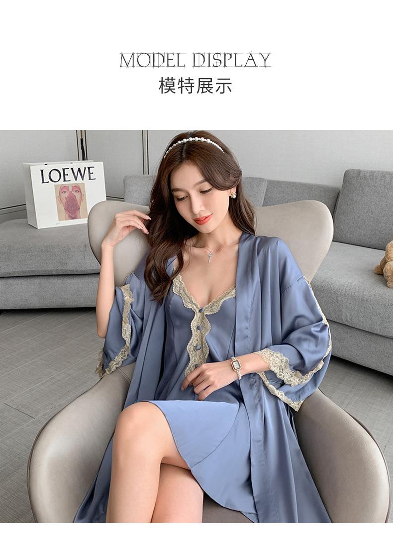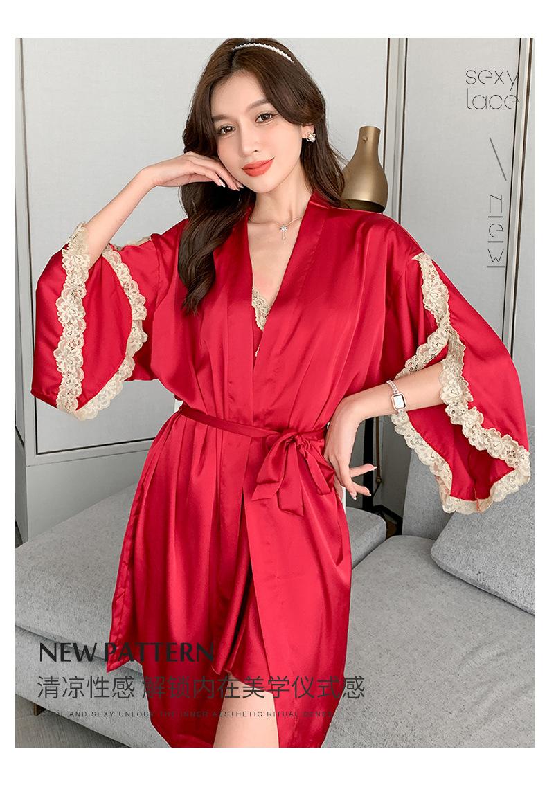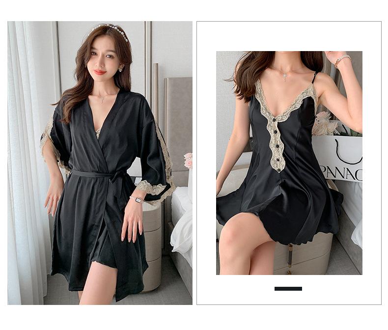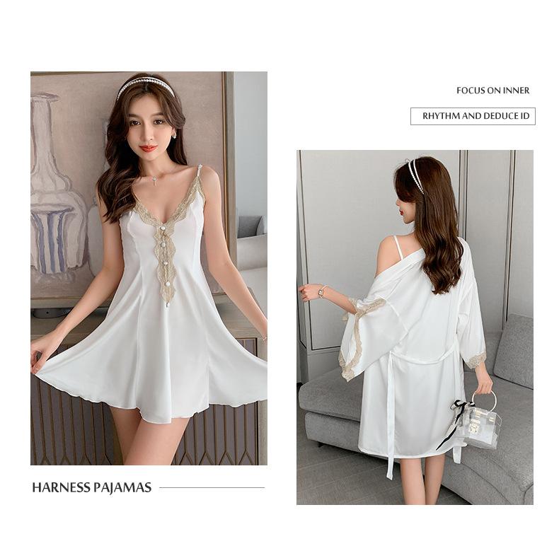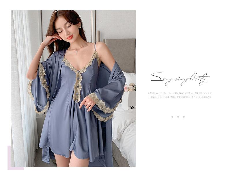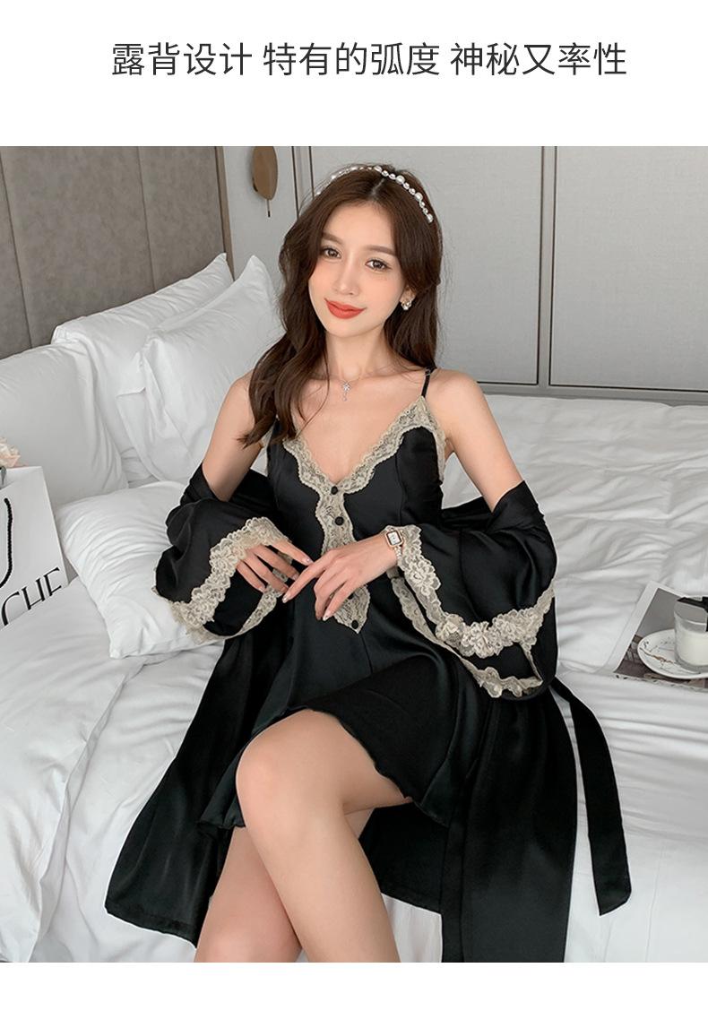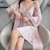 Pijama sexy de otoño con tirantes para mujer, estilo palaciego de moda, cárdigan retro con ribete de encaje, bata exterior, ropa de casa, traje