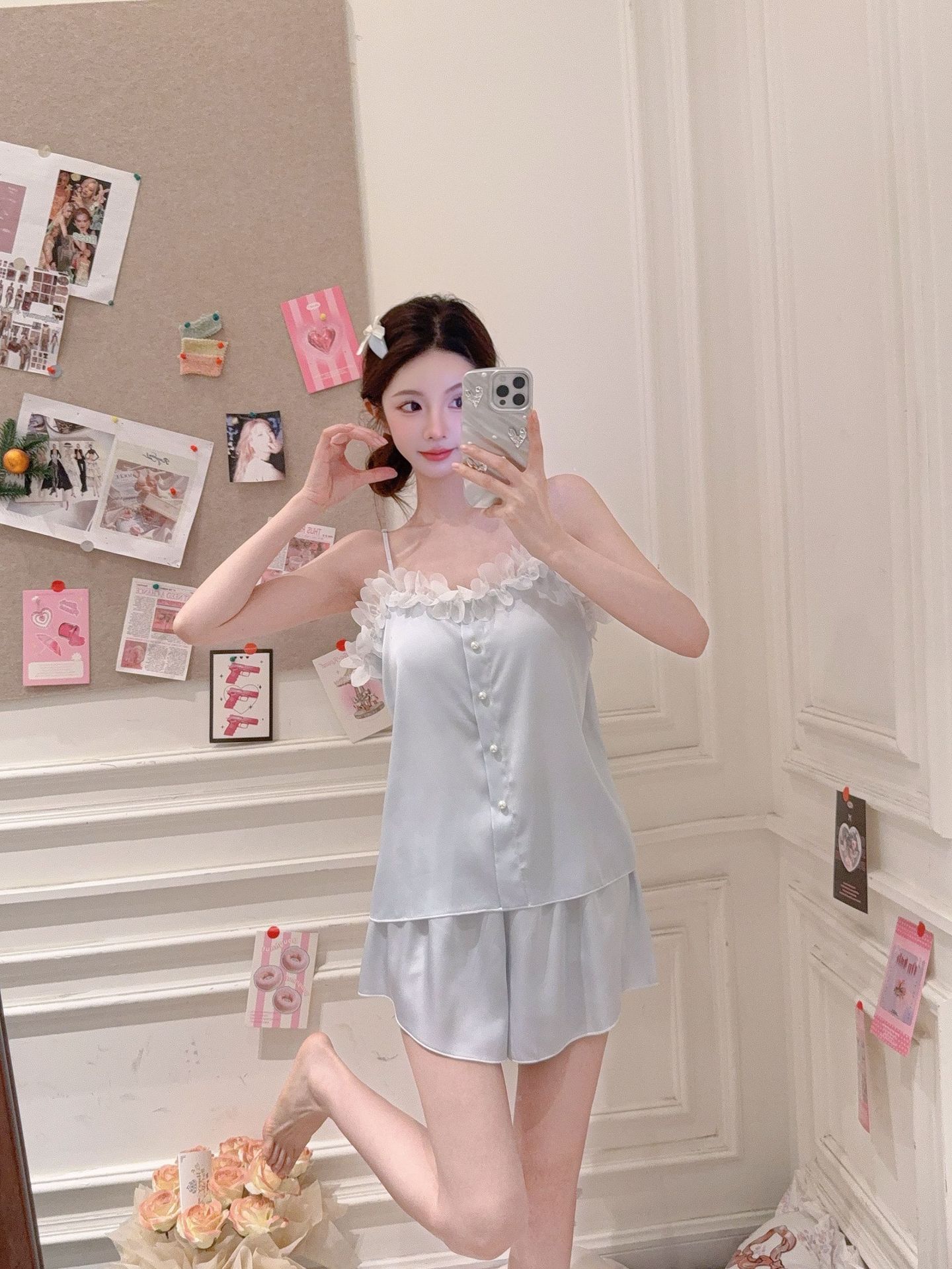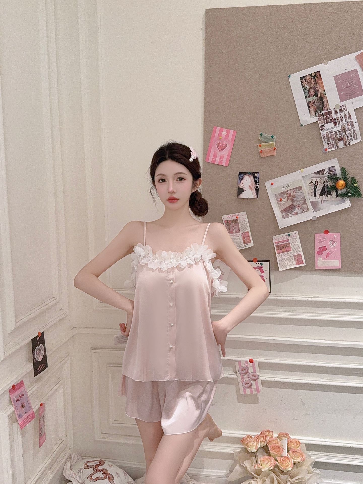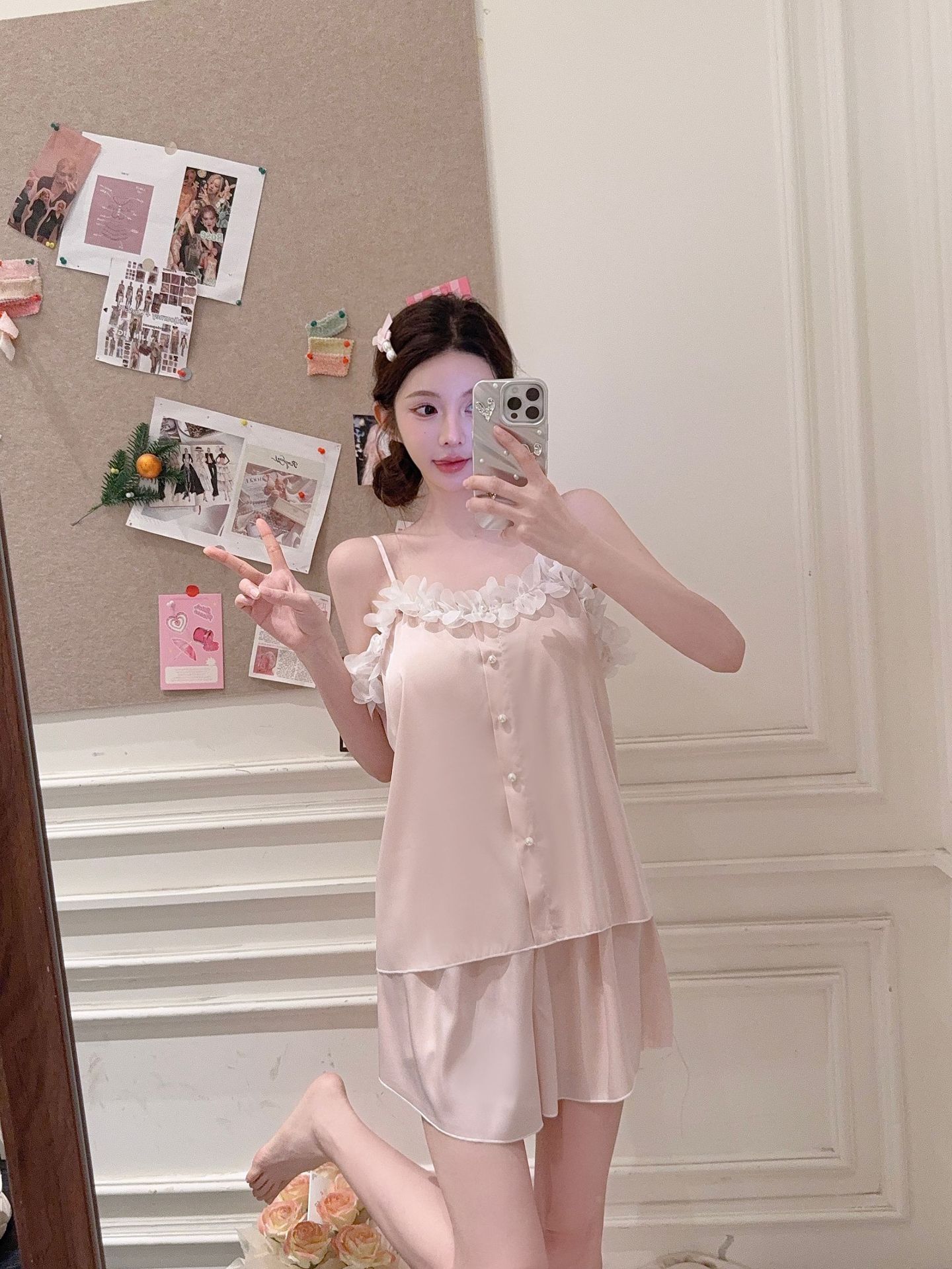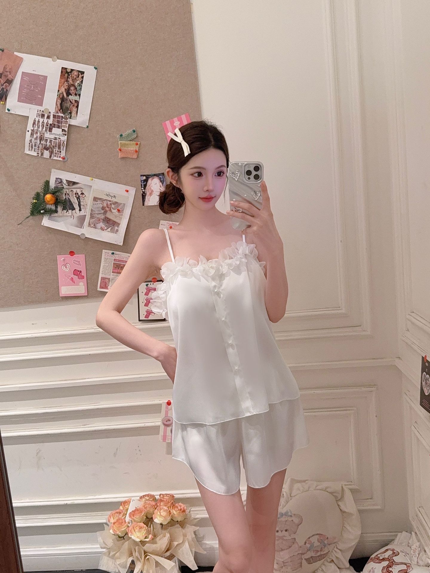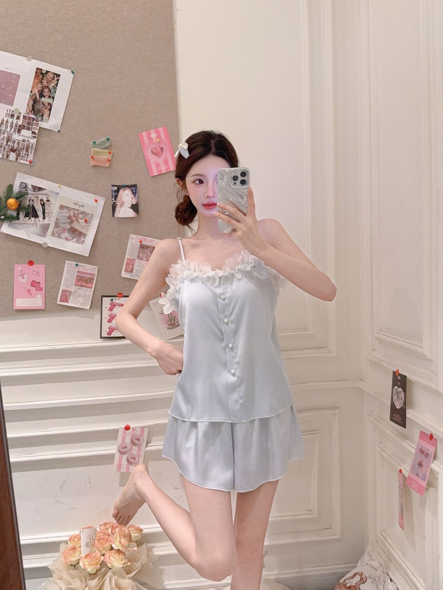 Pijama corto estilo niña con tirantes, sexy, de verano, de seda helada, para el hogar, estilo coreano