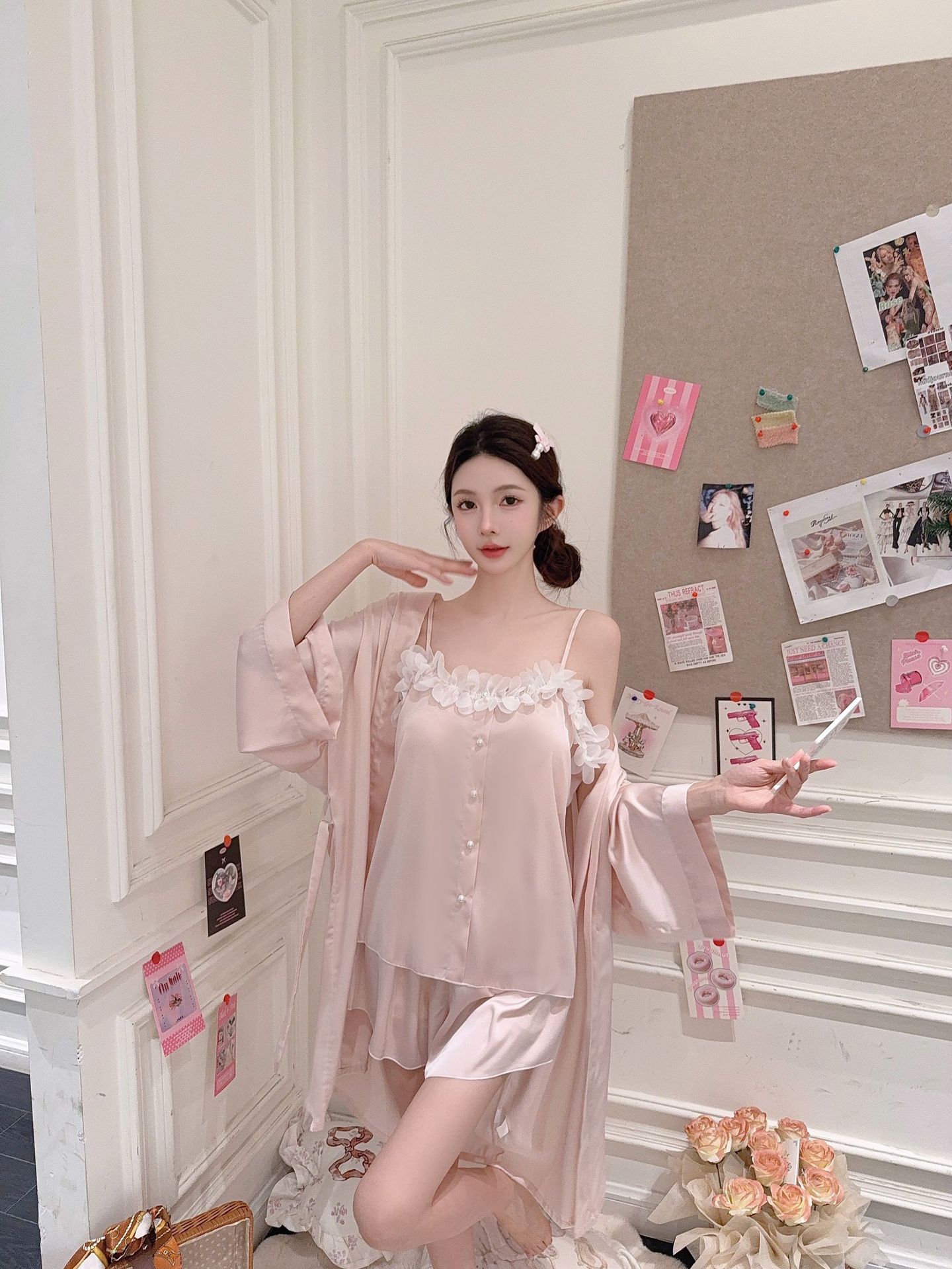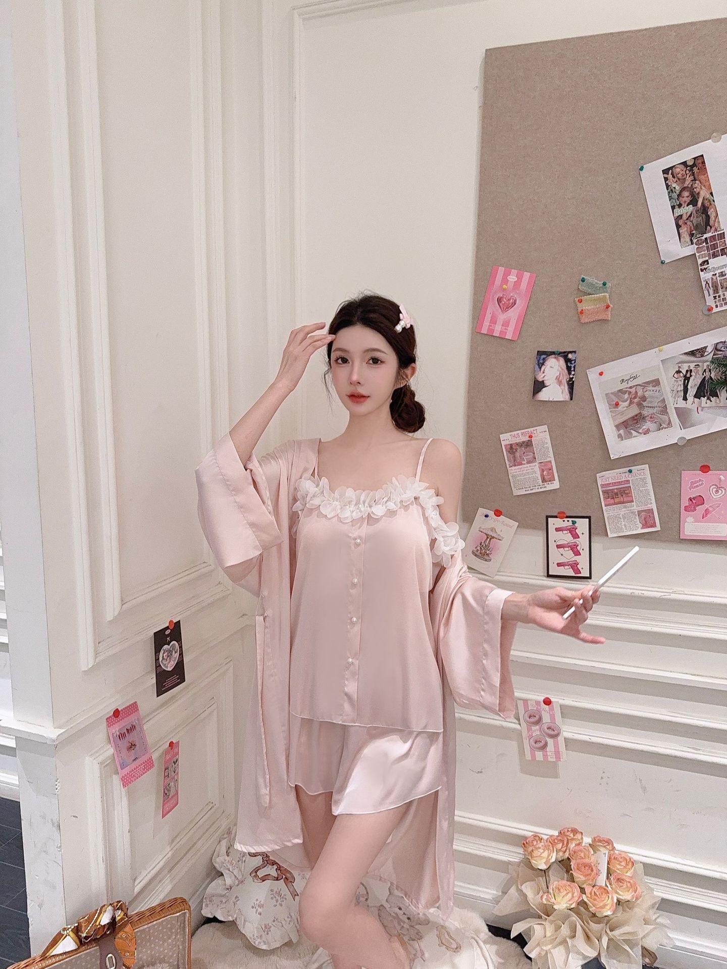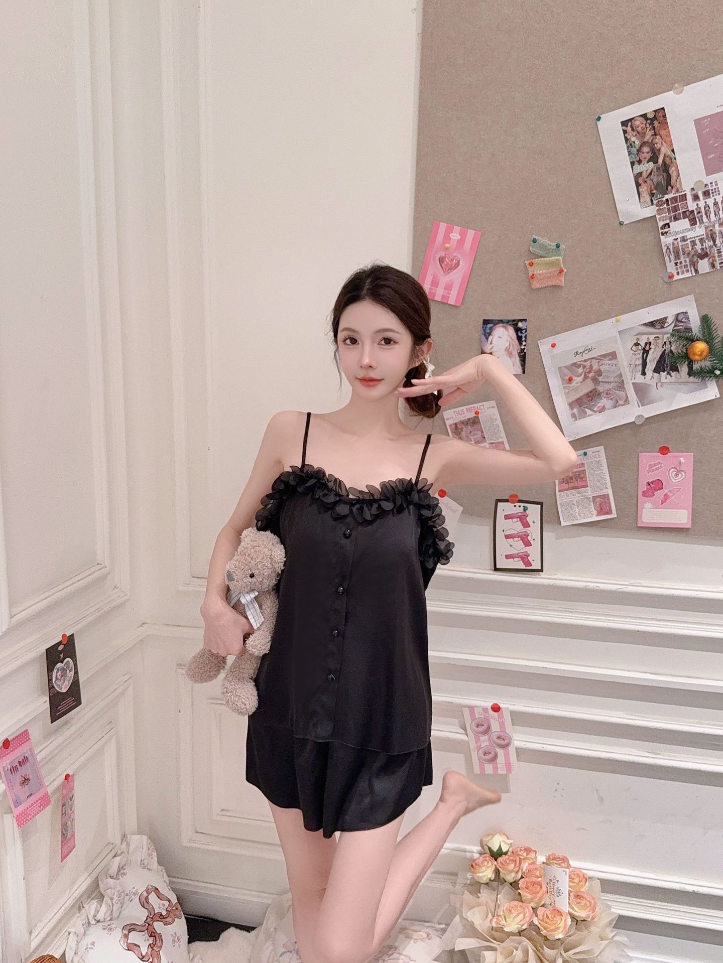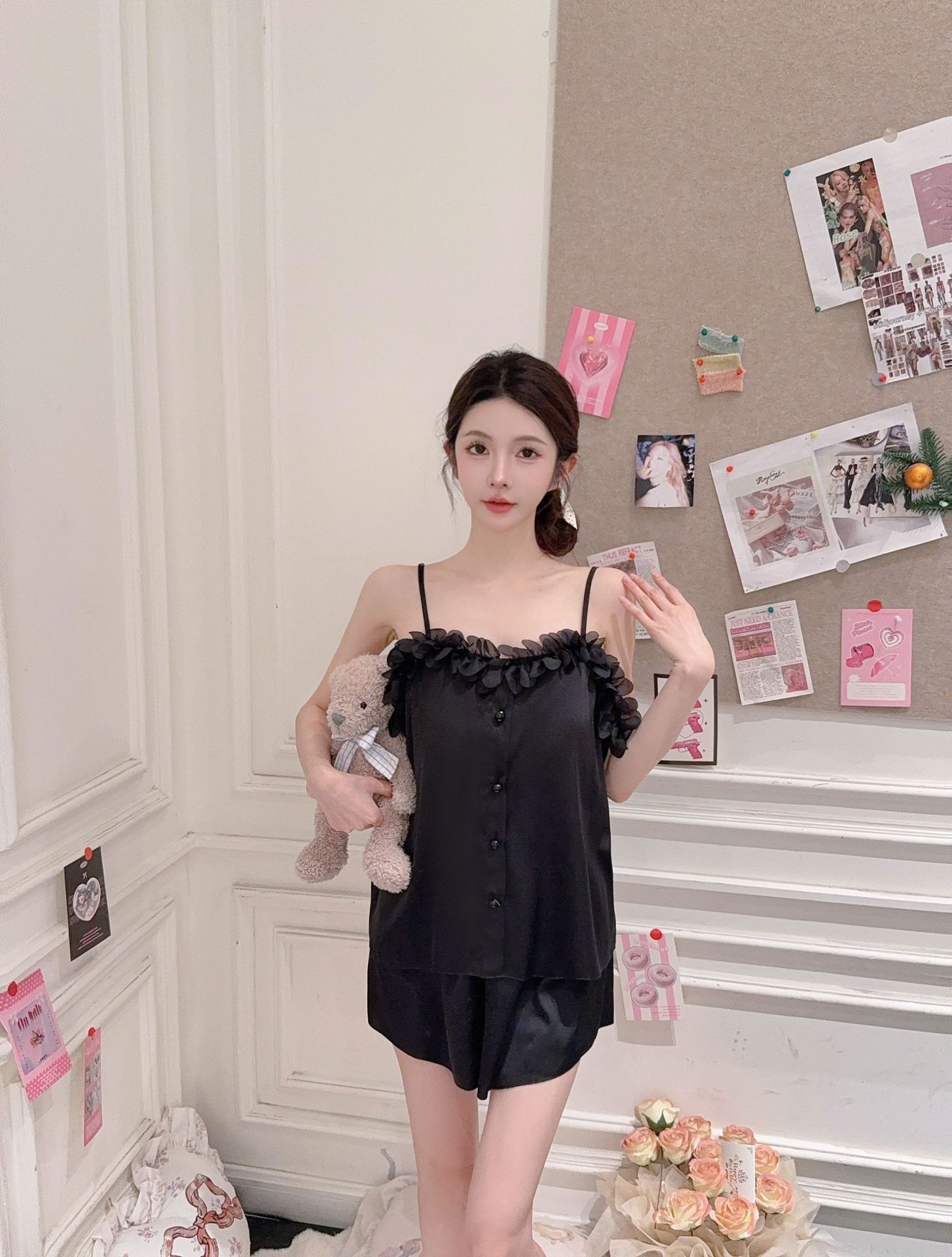 Pijama corto estilo niña con tirantes, sexy, de verano, de seda helada, para el hogar, estilo coreano