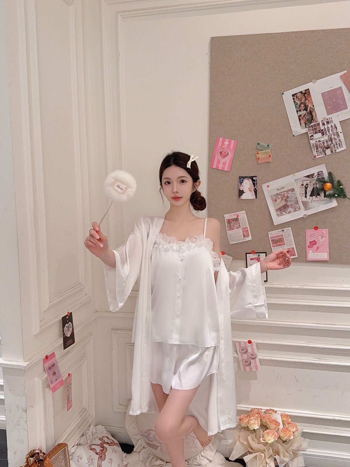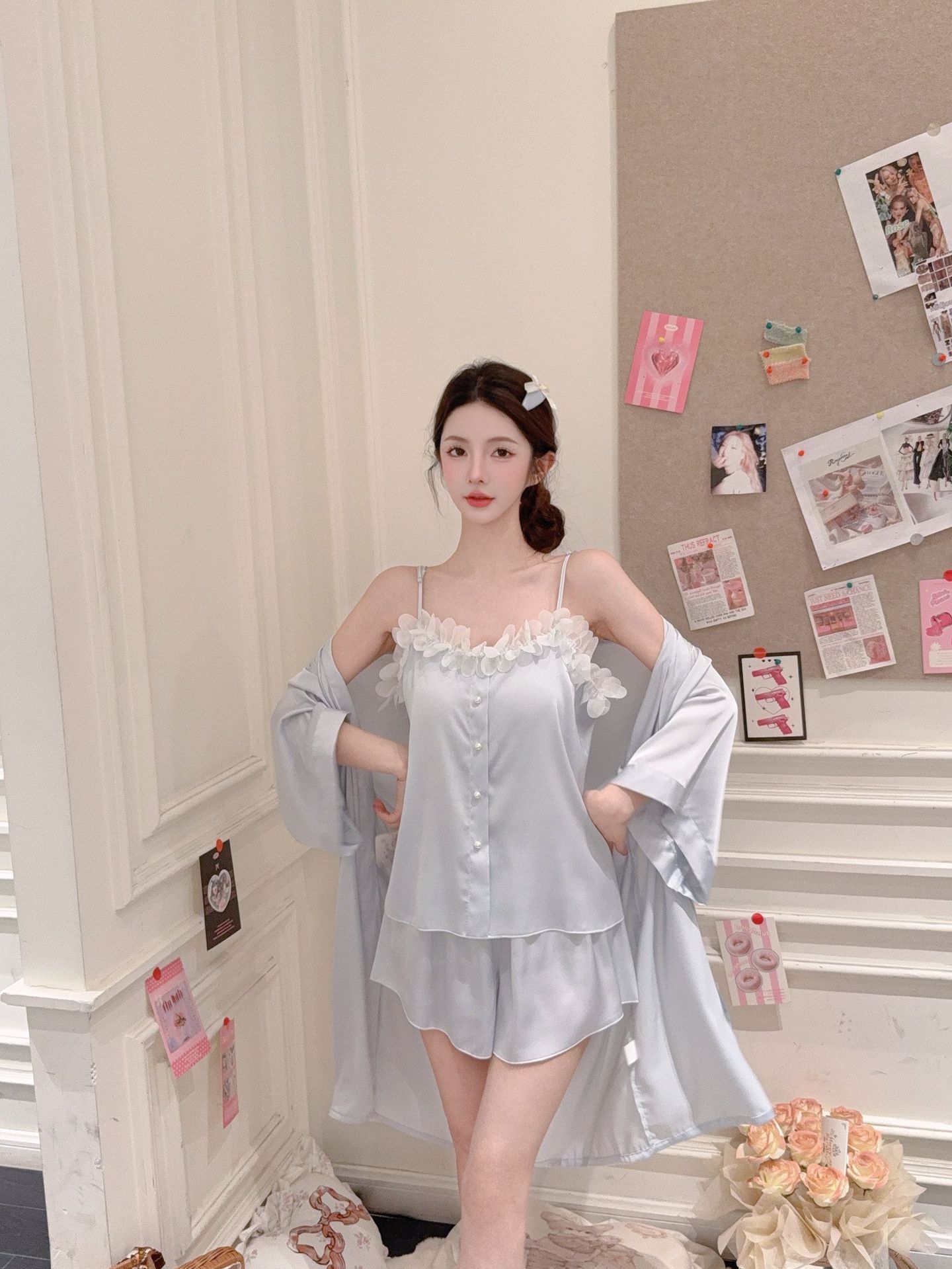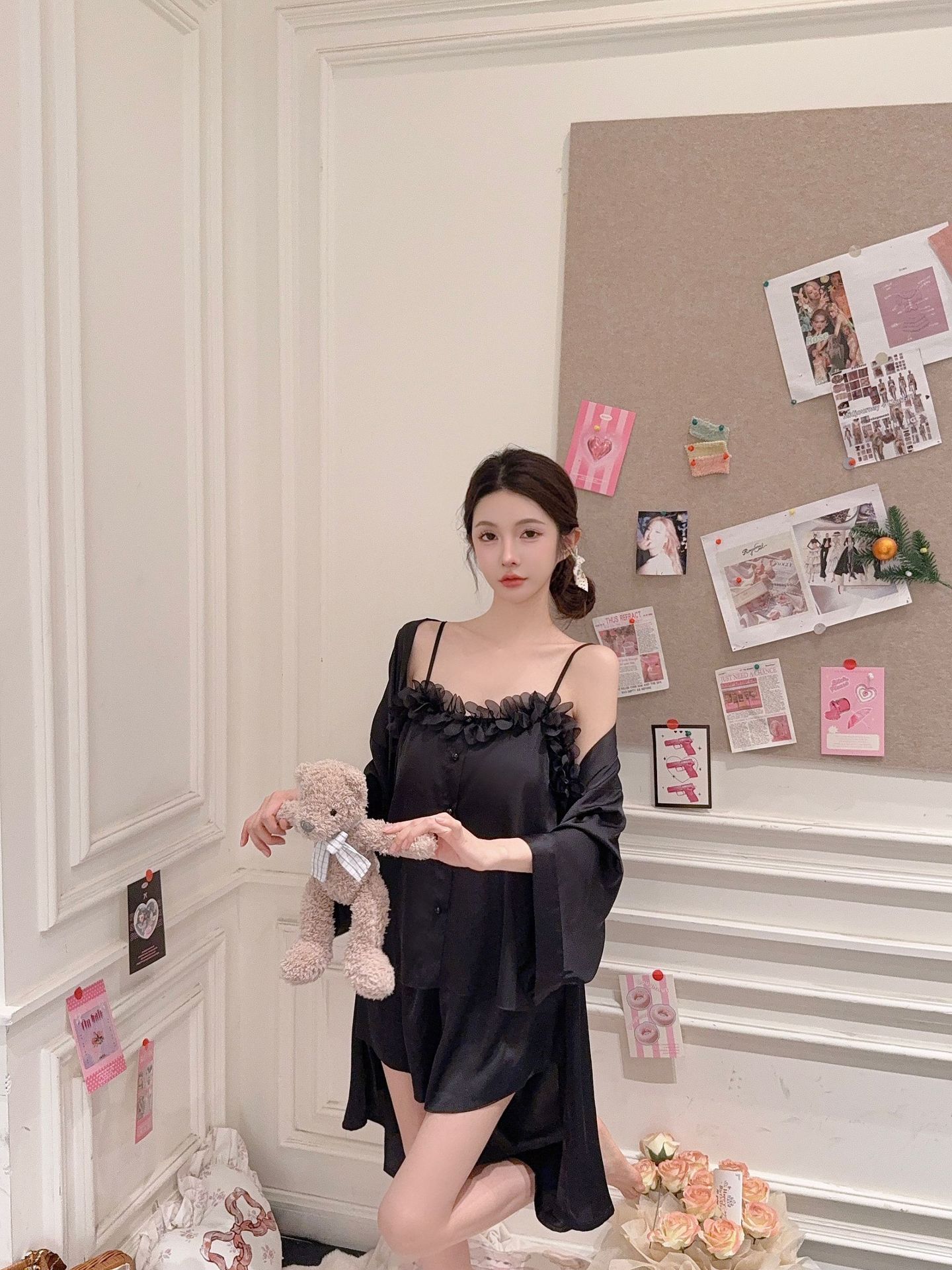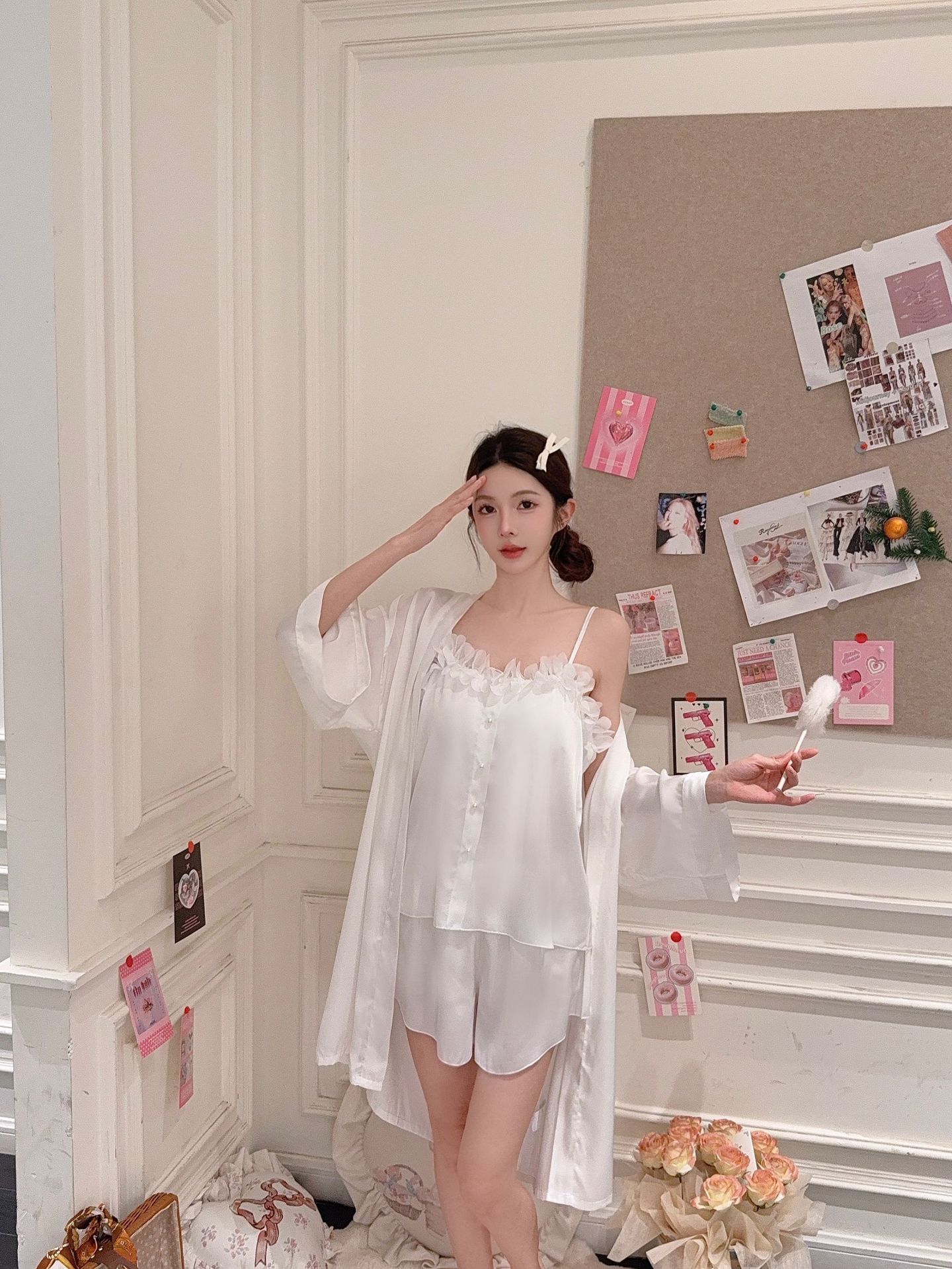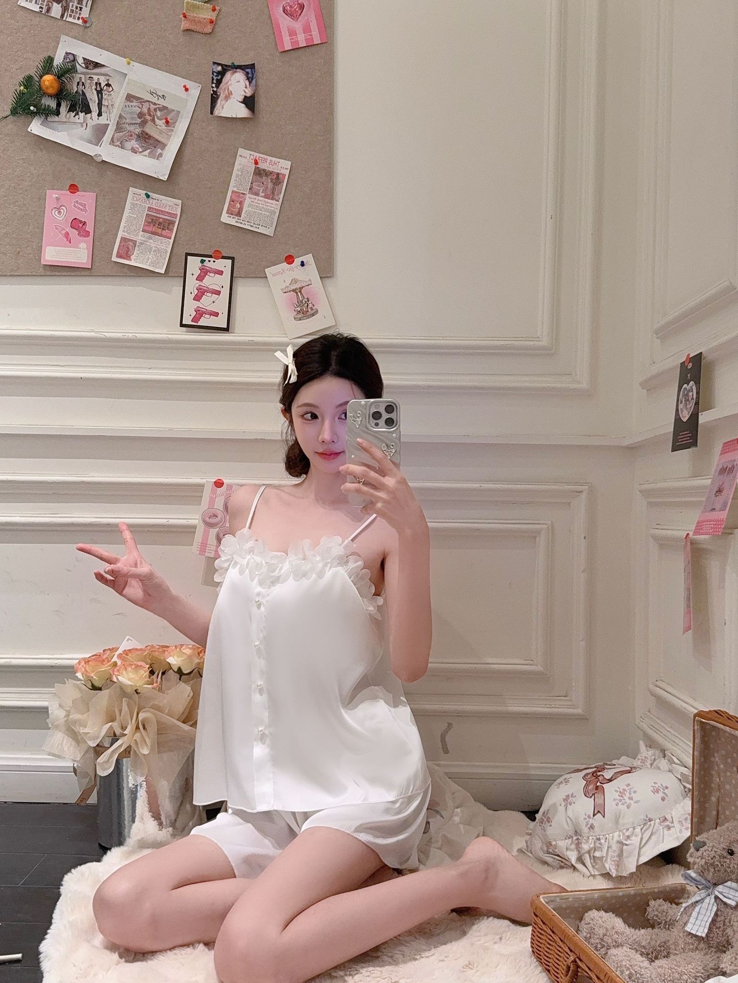 Pijama corto estilo niña con tirantes, sexy, de verano, de seda helada, para el hogar, estilo coreano