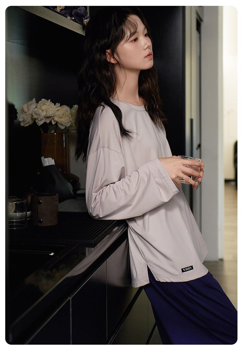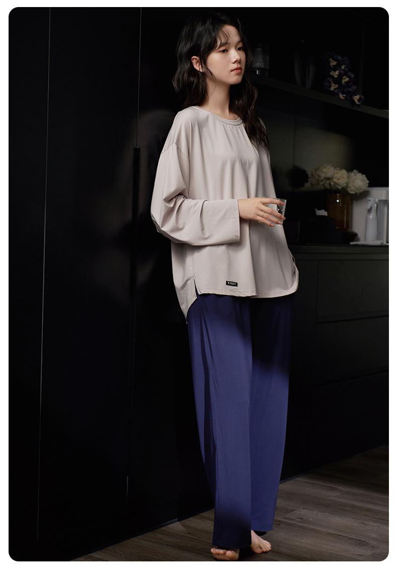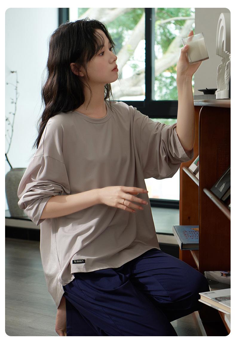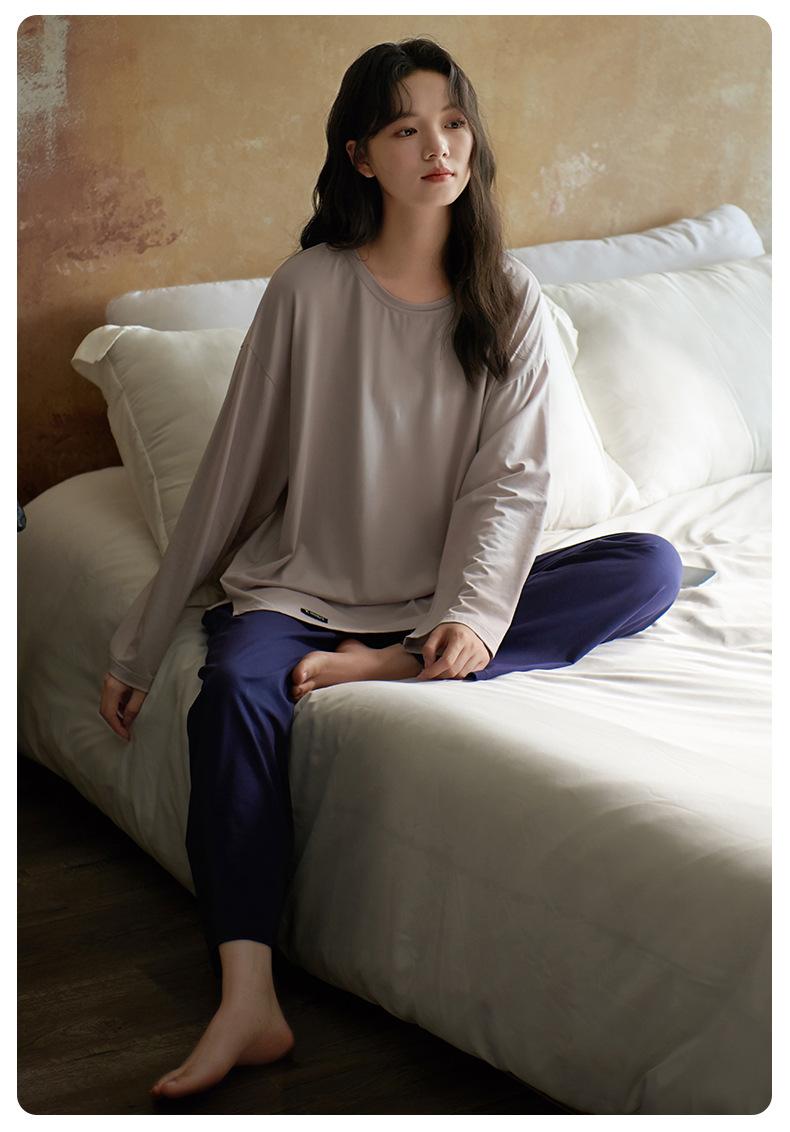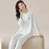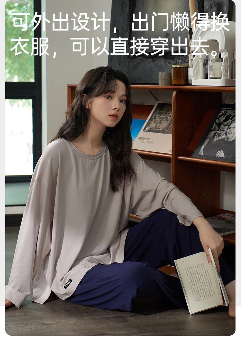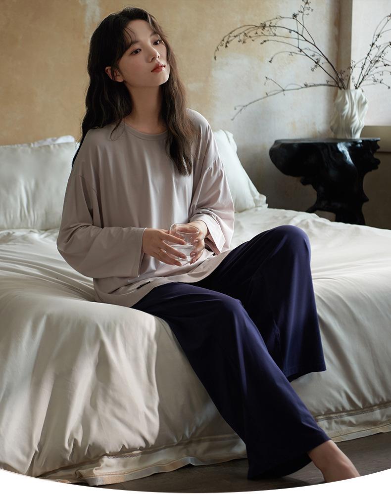 Pijamas de mujer de nuevo estilo 2025, primavera y otoño, modal, de manga larga, para el hogar, gris, sencillo, para uso exterior, traje de verano.