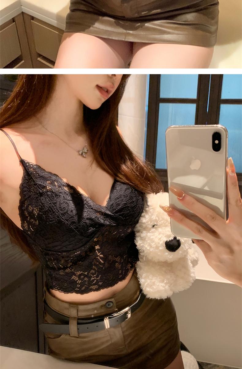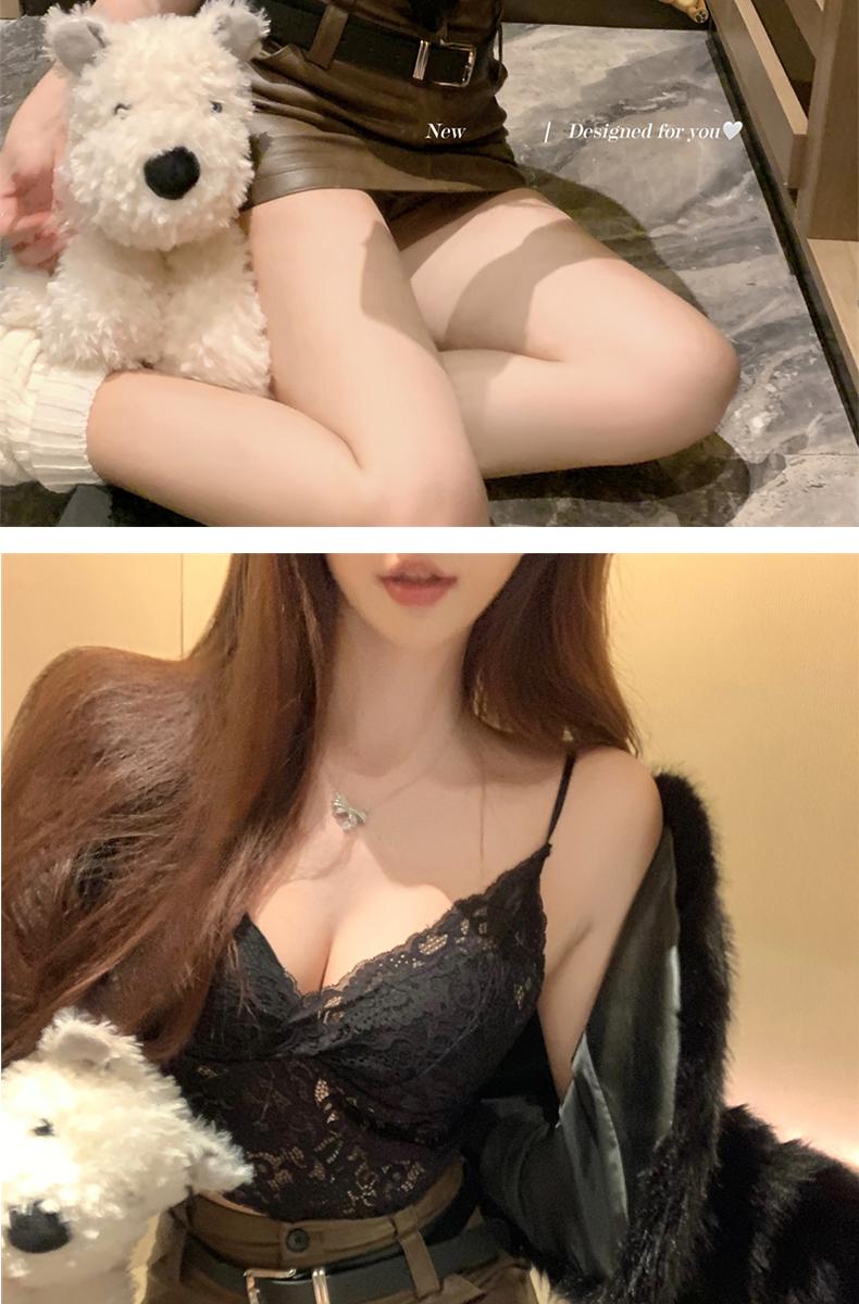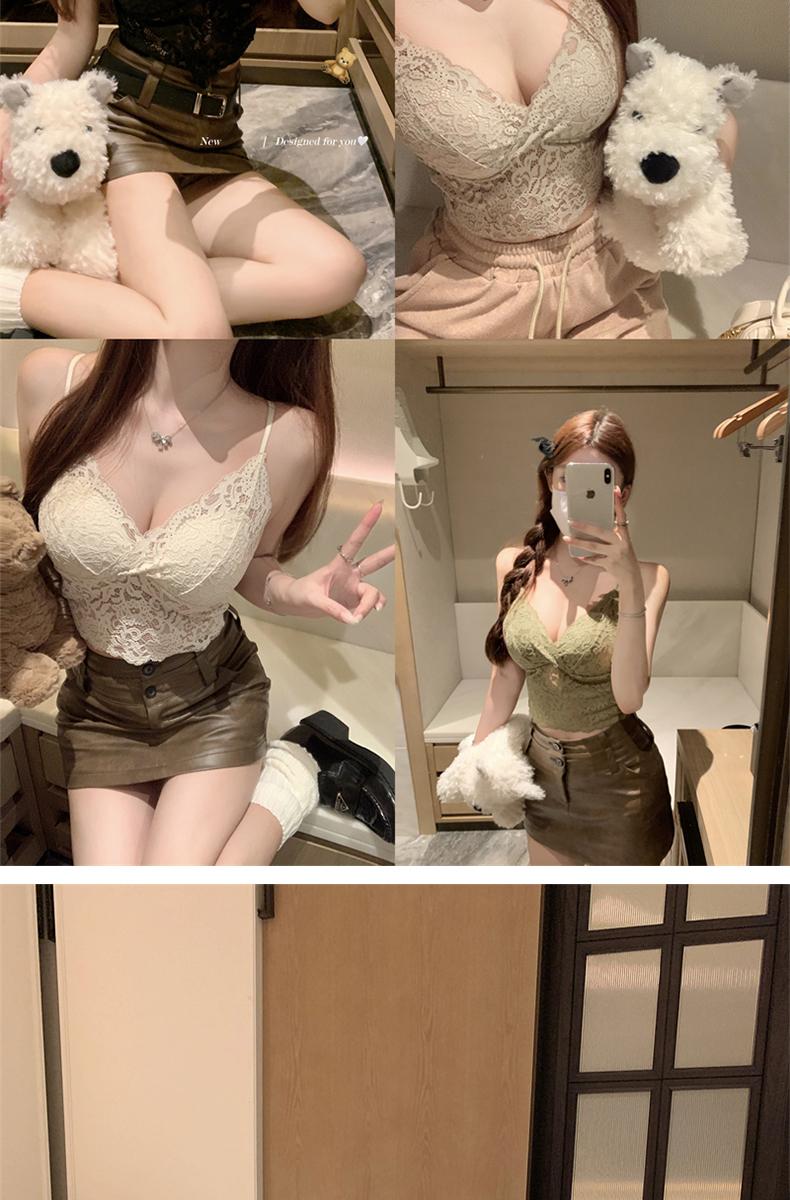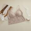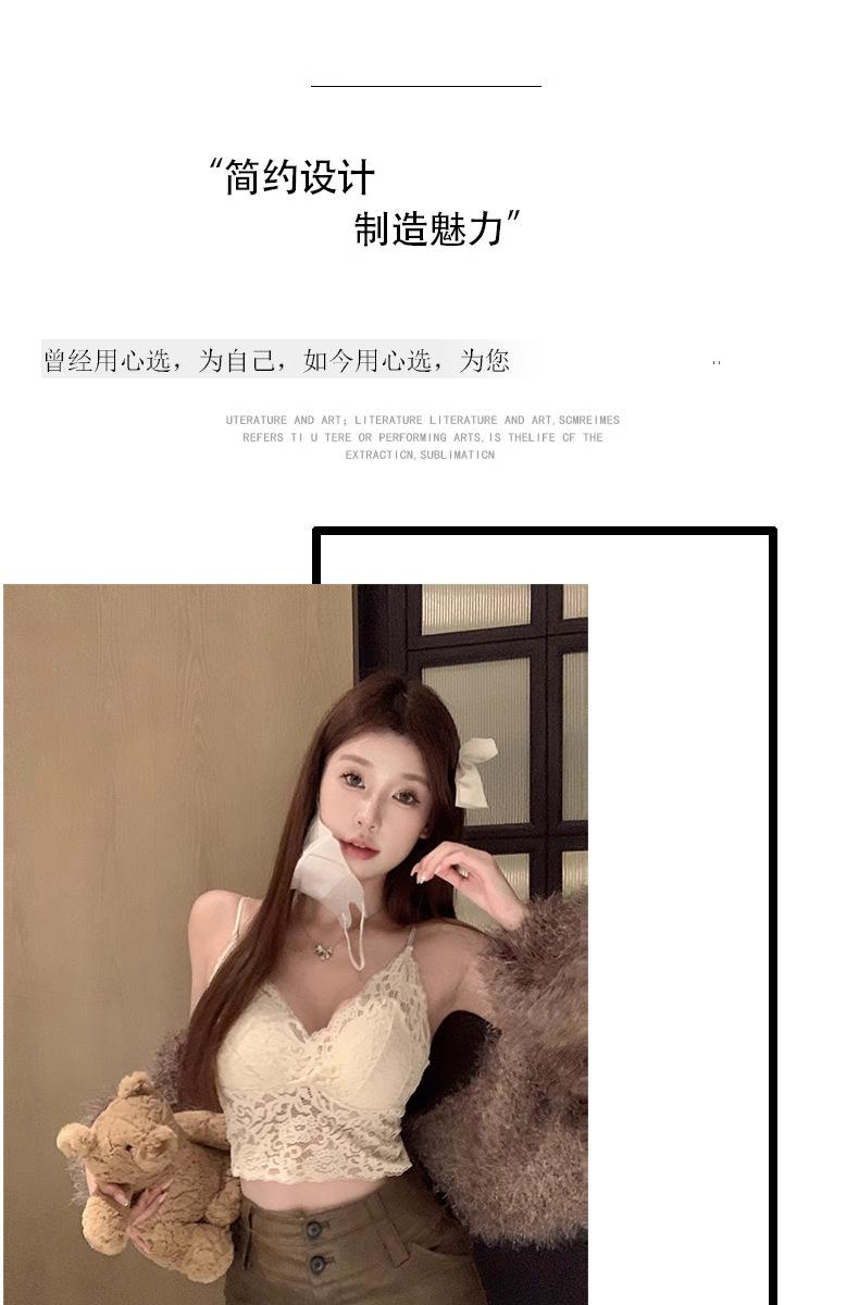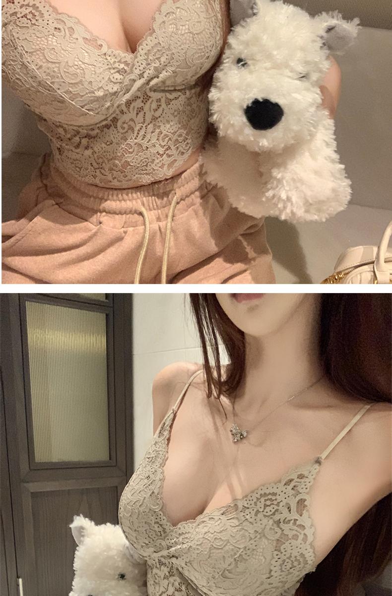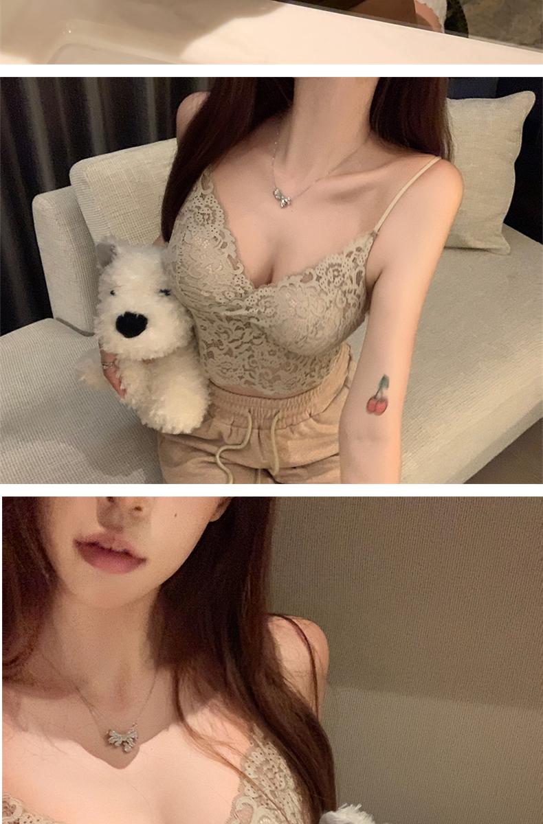 Camisola de encaje con escote en V estilo Pure Desire para mujer, interior con almohadilla para el pecho, diseño hueco, sensación de uso exterior, hermosa espalda sexy.