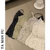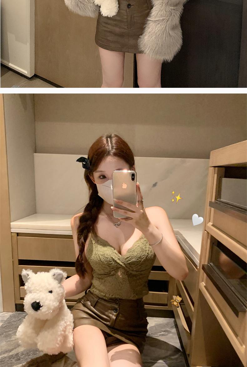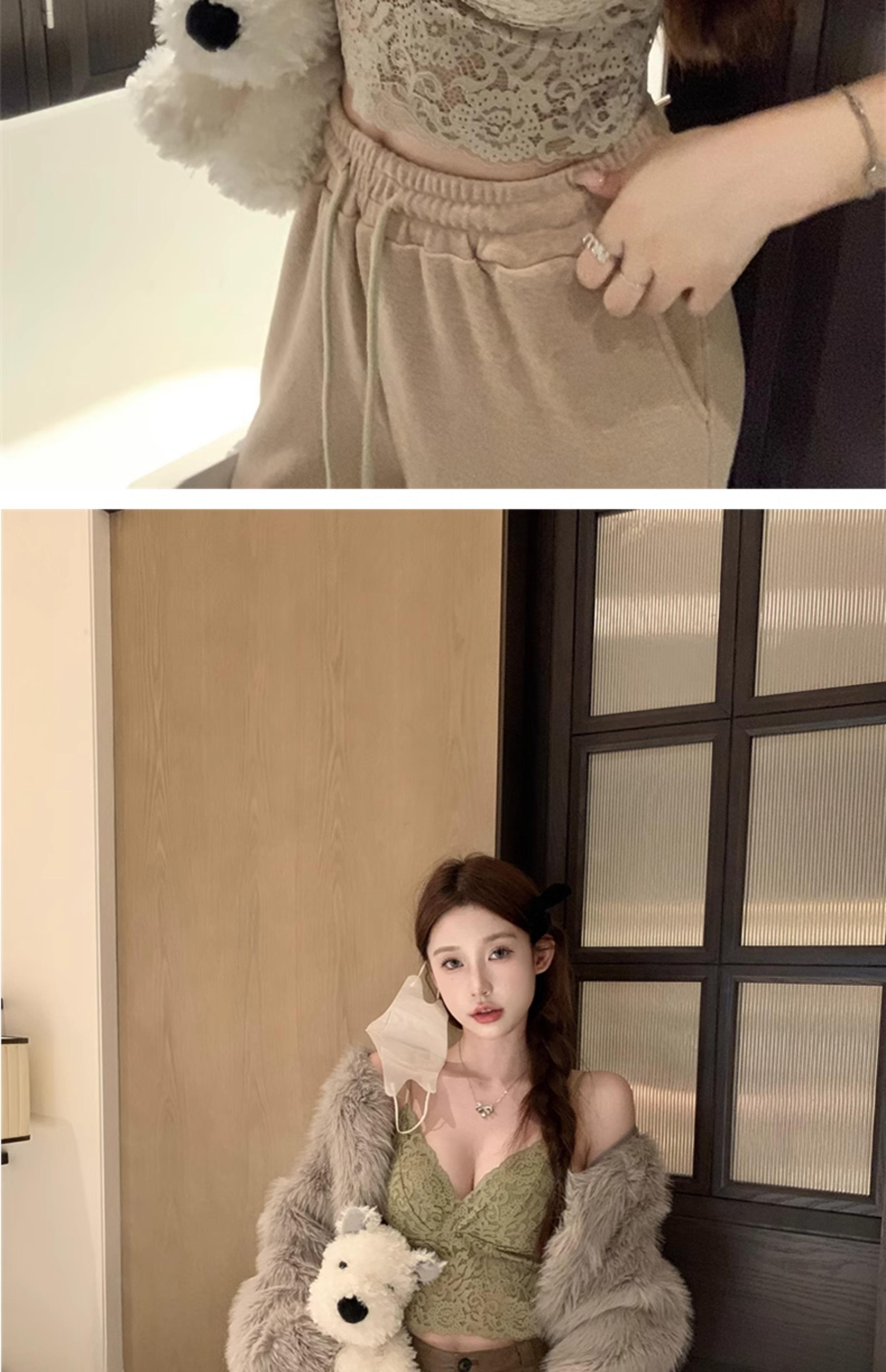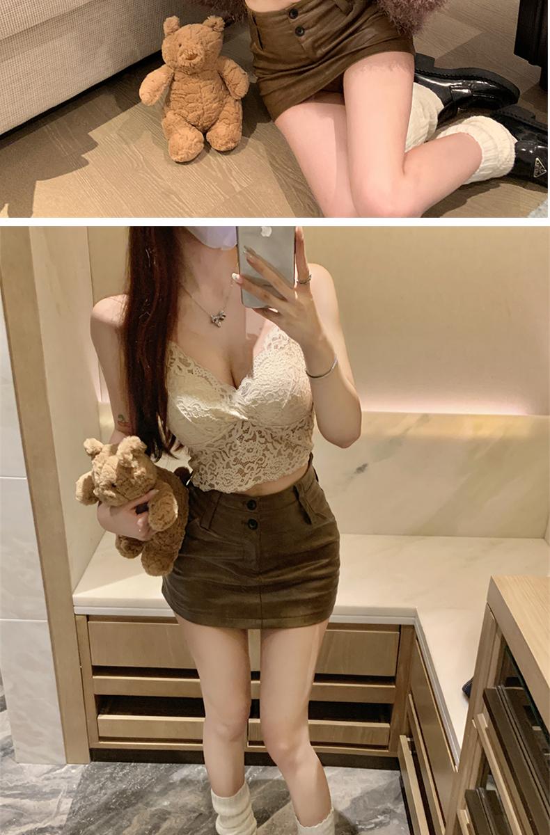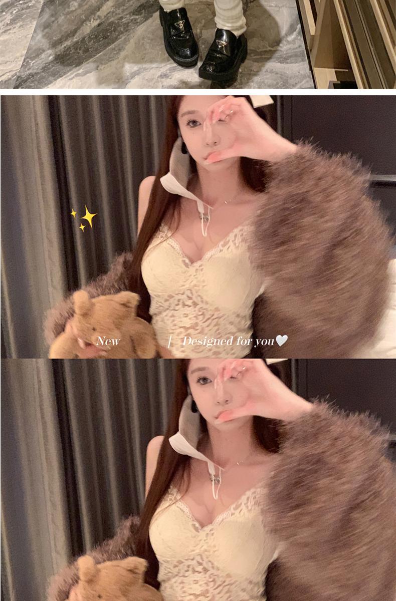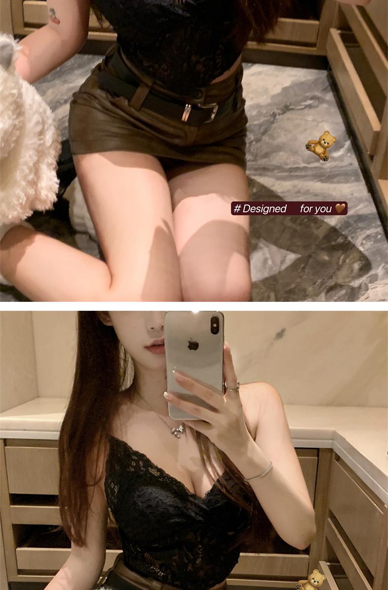 Camisola de encaje con escote en V estilo Pure Desire para mujer, interior con almohadilla para el pecho, diseño hueco, sensación de uso exterior, hermosa espalda sexy.
