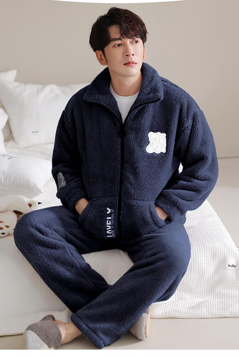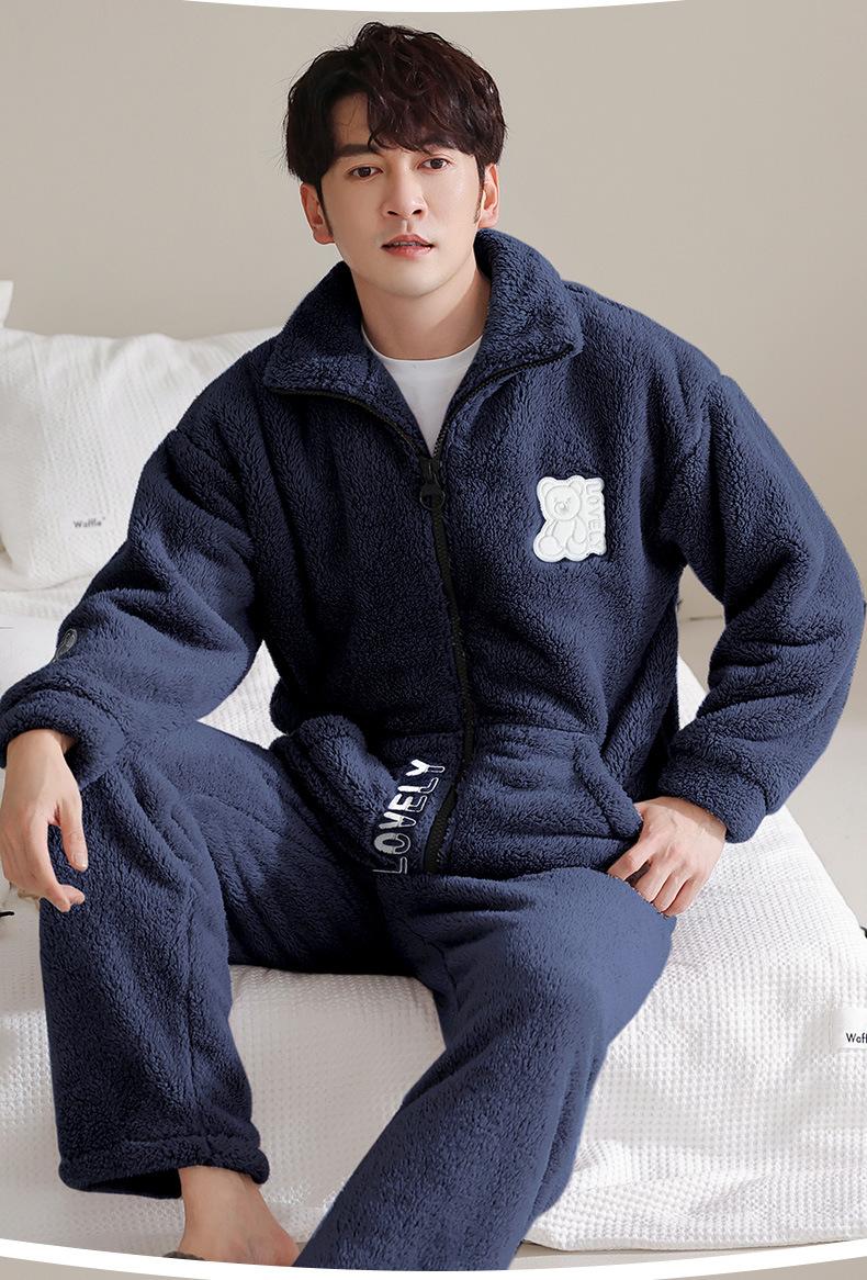 Pijamas de invierno para hombre, recién llegados, otoño e invierno, gruesos, para adolescentes, cálidos, con cremallera, de terciopelo, ropa deportiva para el hogar para hombre.