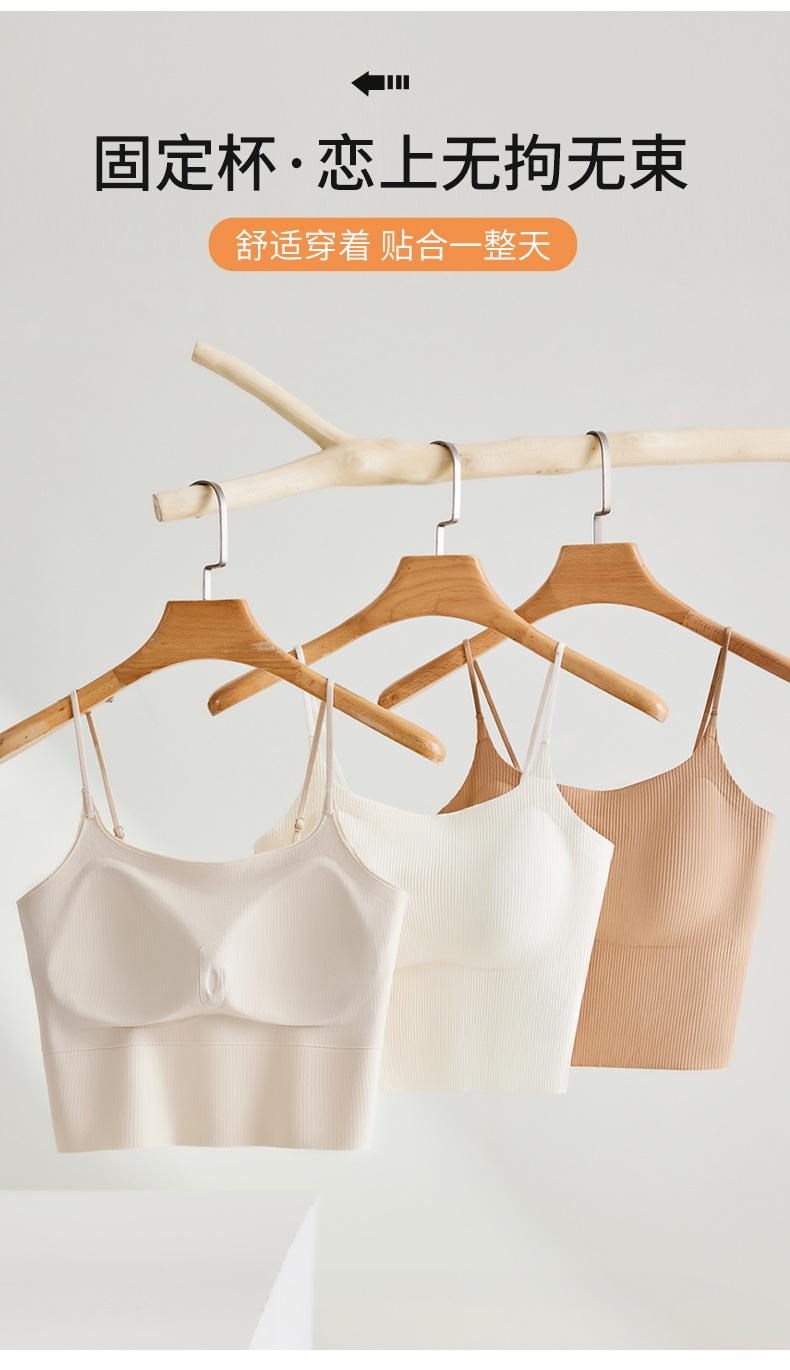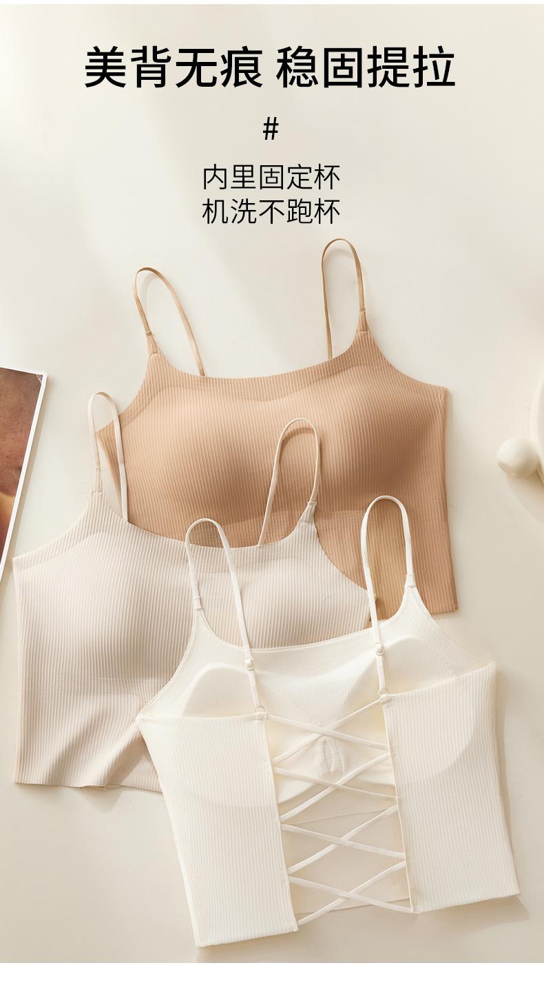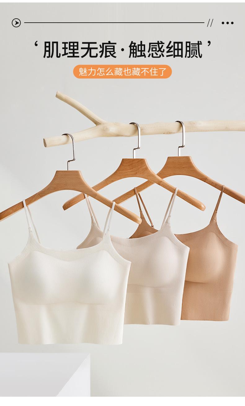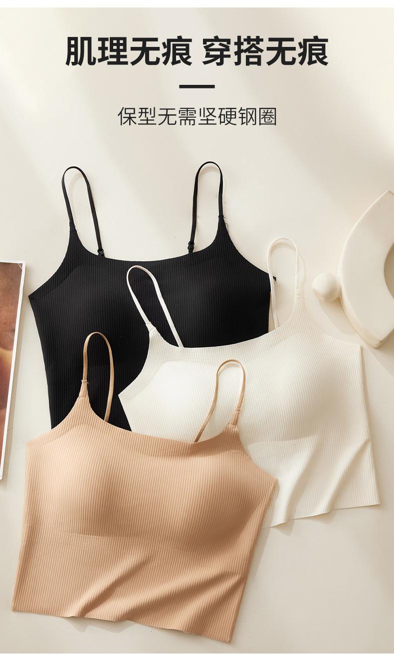 Nueva camisola pequeña sin costuras de seda de hielo de espalda hermosa para mujer con copa fija y almohadilla para el pecho, ropa interior tipo top de tubo base interior