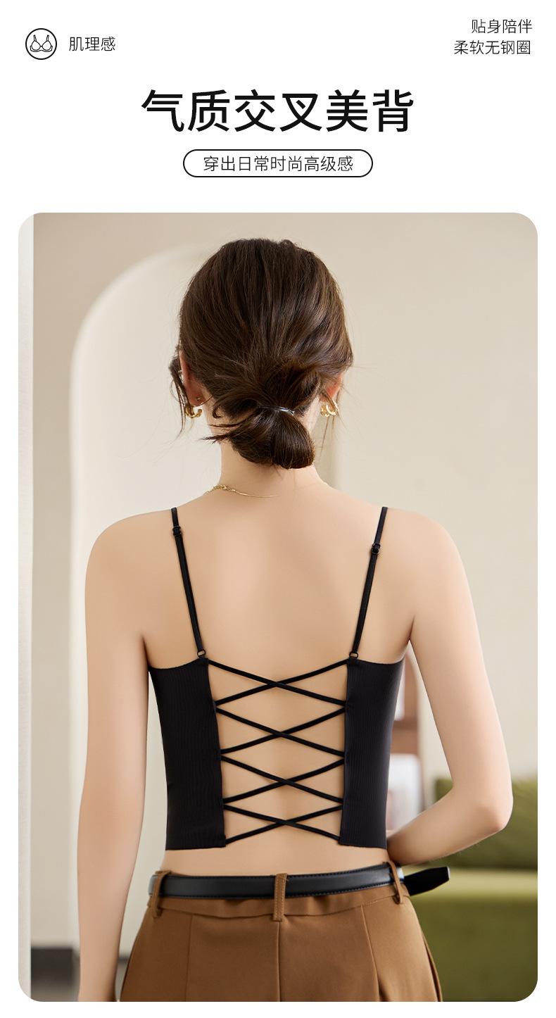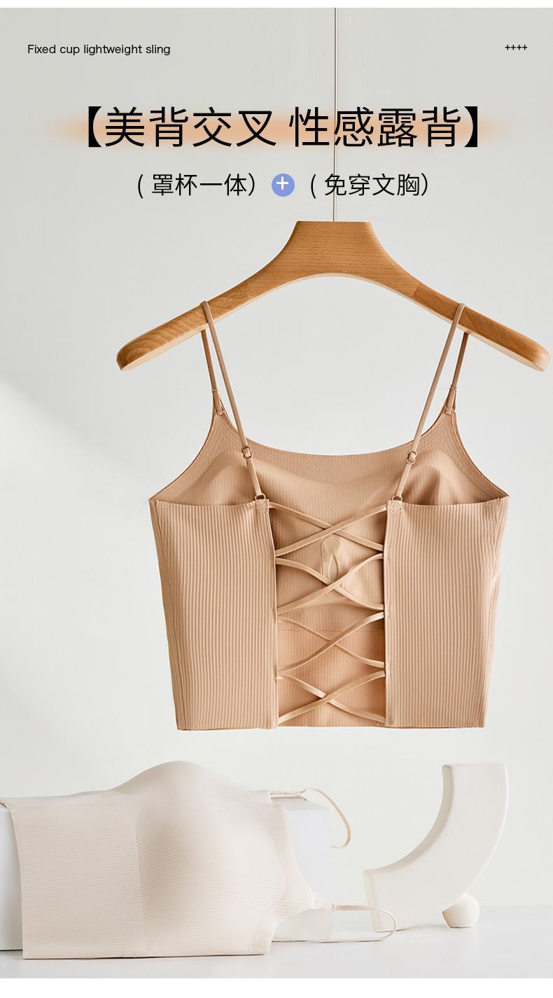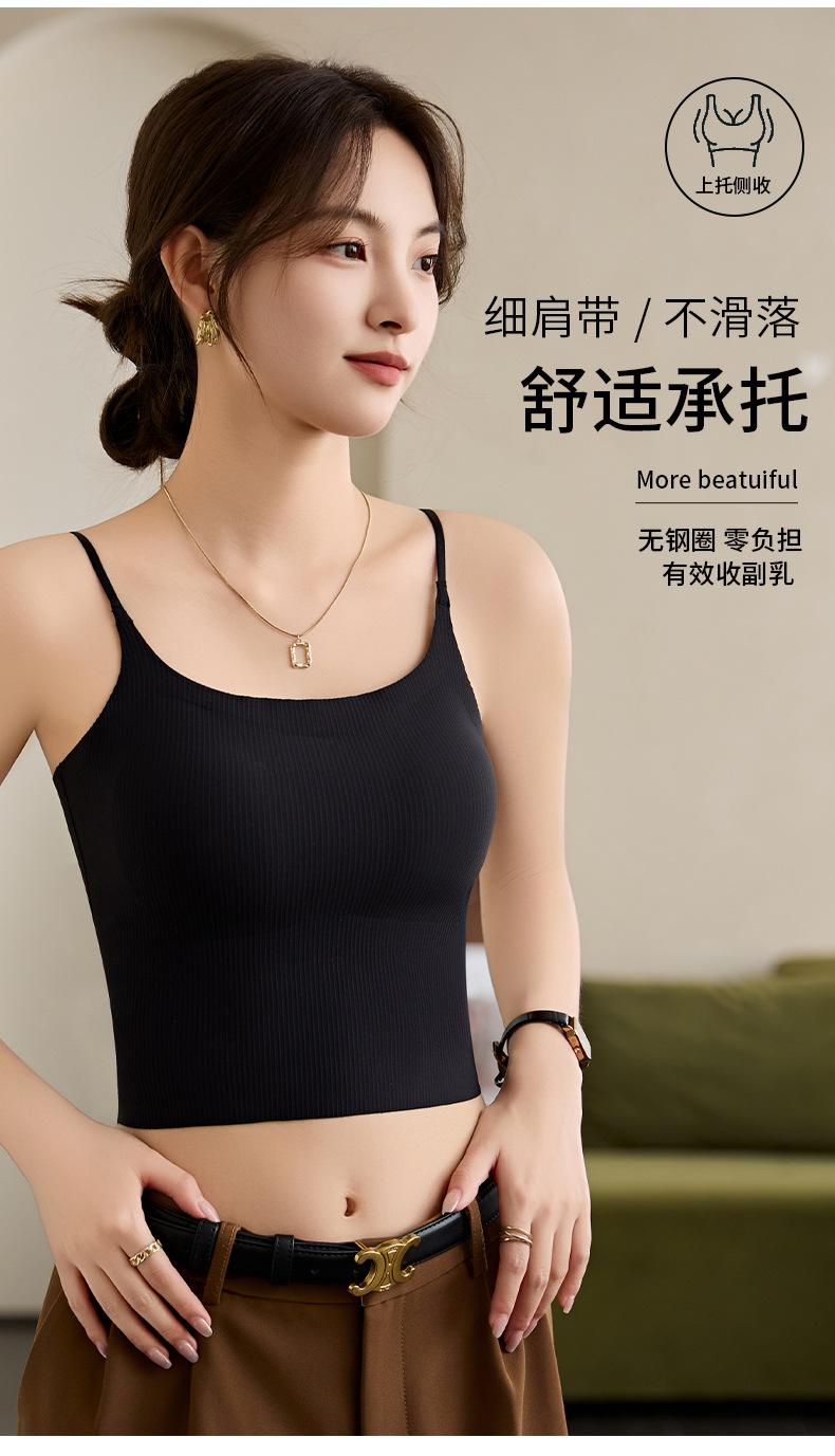 Nueva camisola pequeña sin costuras de seda de hielo de espalda hermosa para mujer con copa fija y almohadilla para el pecho, ropa interior tipo top de tubo base interior