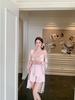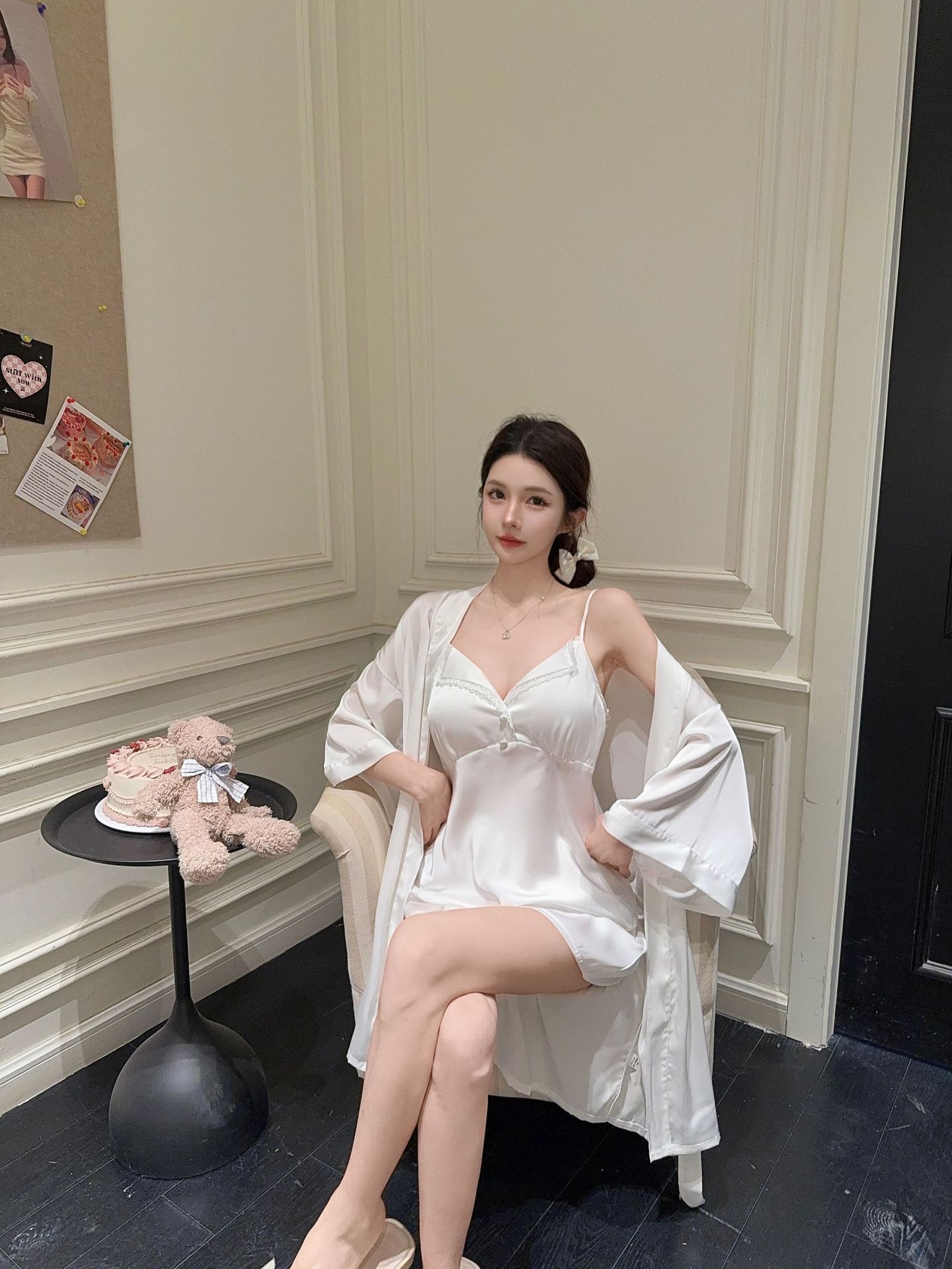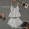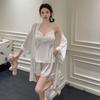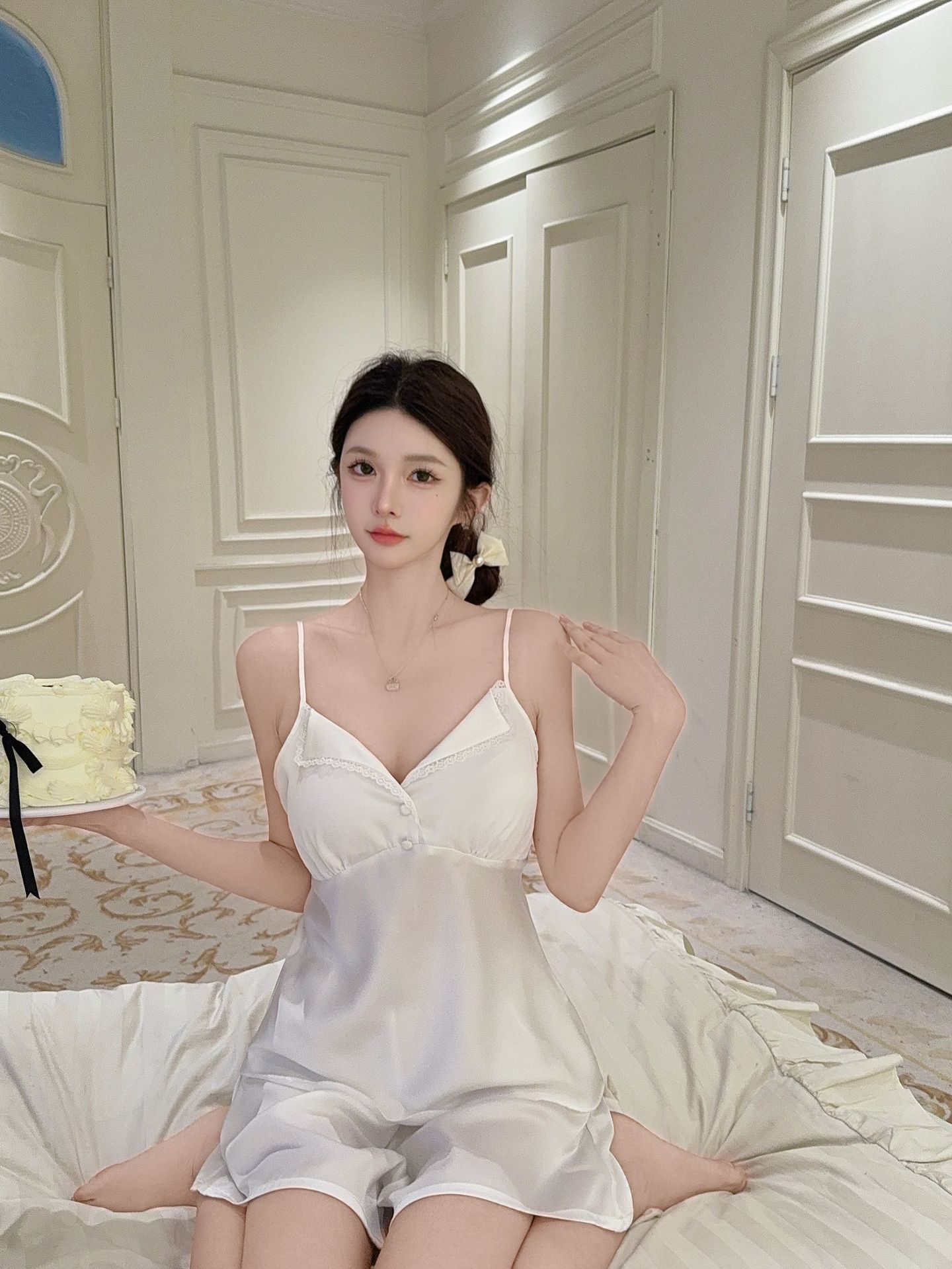 Pijama de verano sexy con escote en V y pantalones cortos con tirantes, conjunto de tres piezas para mujer, ropa de casa fresca de seda helada dulce, estilo Ins