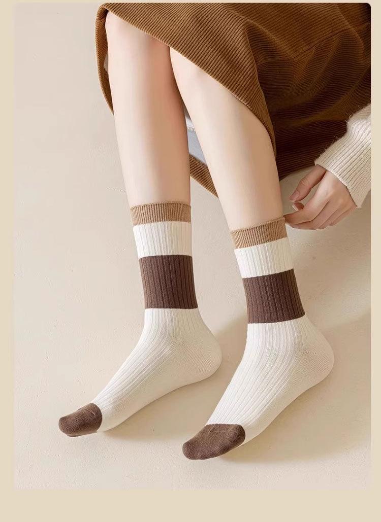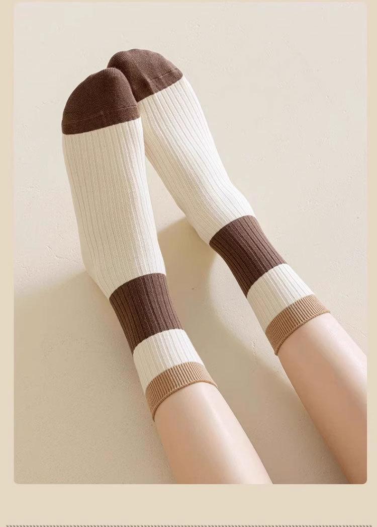 Calcetines de Otoño e Invierno Calcetines de Media Caña Color Maillard para Niños Ins Todo Combinable Simples Calcetines Apilados Estilo Académico Media Marrón