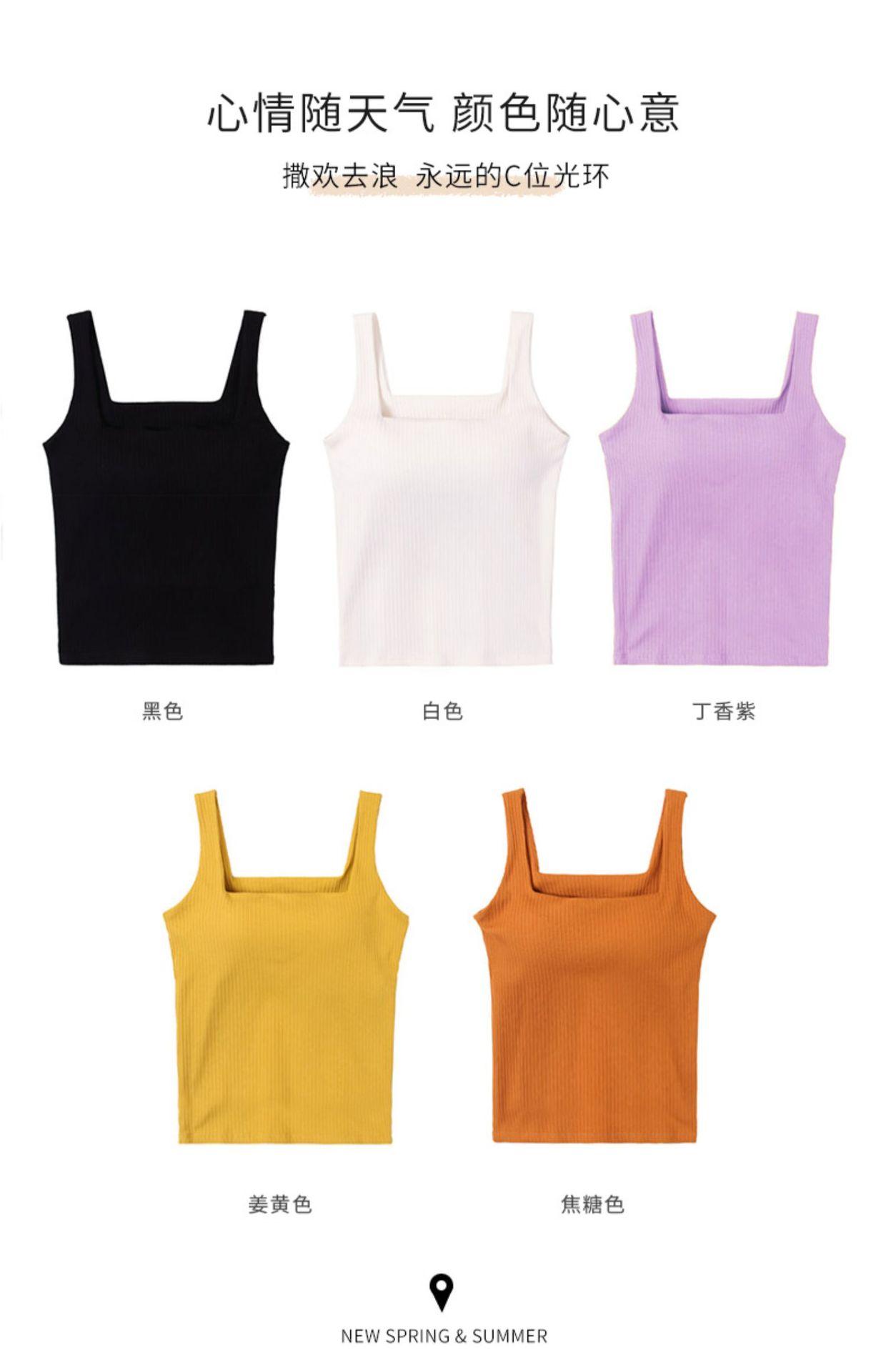 Top de Tirantes con Hilo Integrado de Verano de Algodón Puro para Mujer, Hermoso de Espalda, Ropa Interior Base Camisola para el Hogar y Exterior, Versátil Cuello Redondo