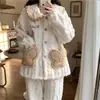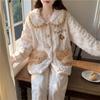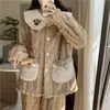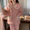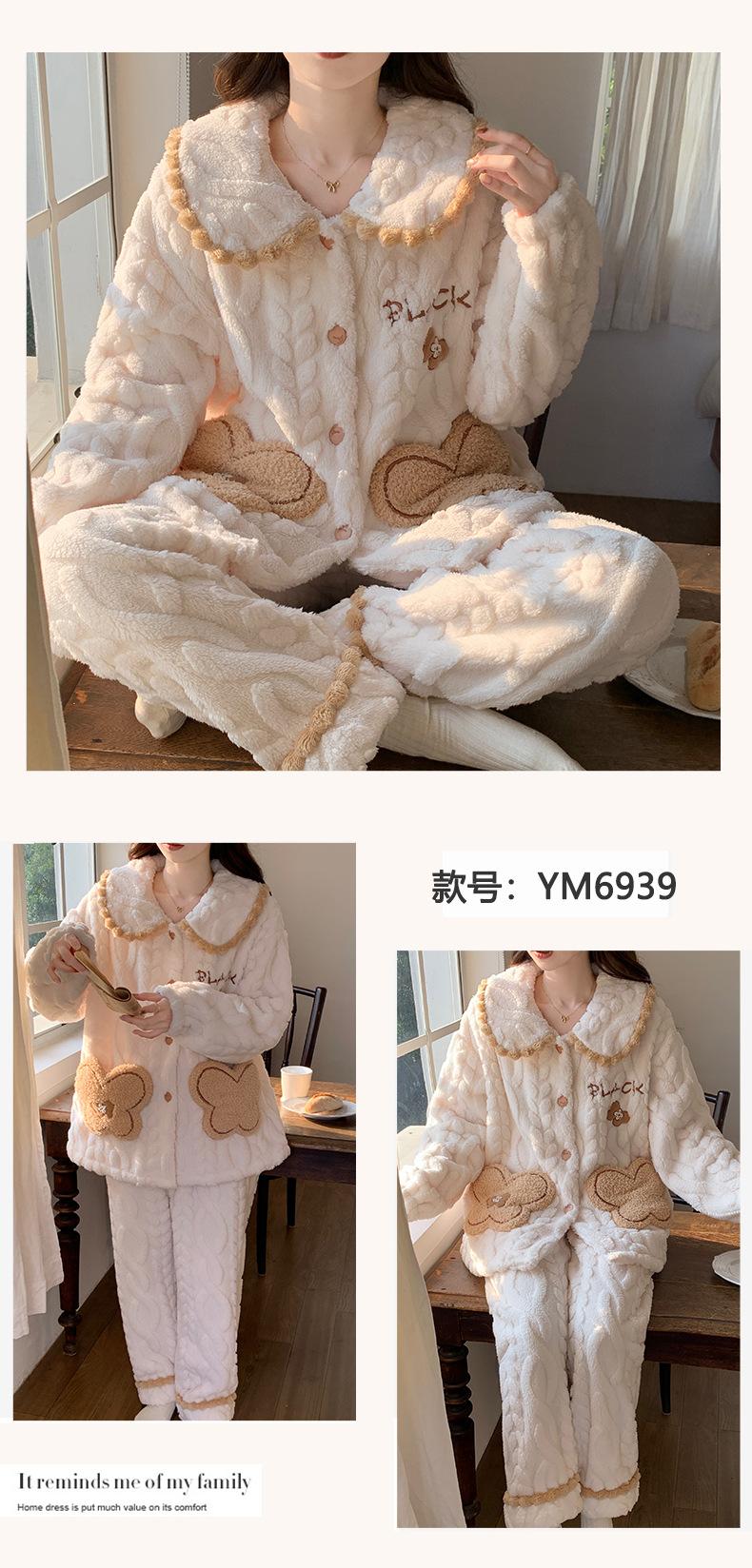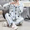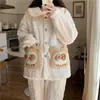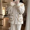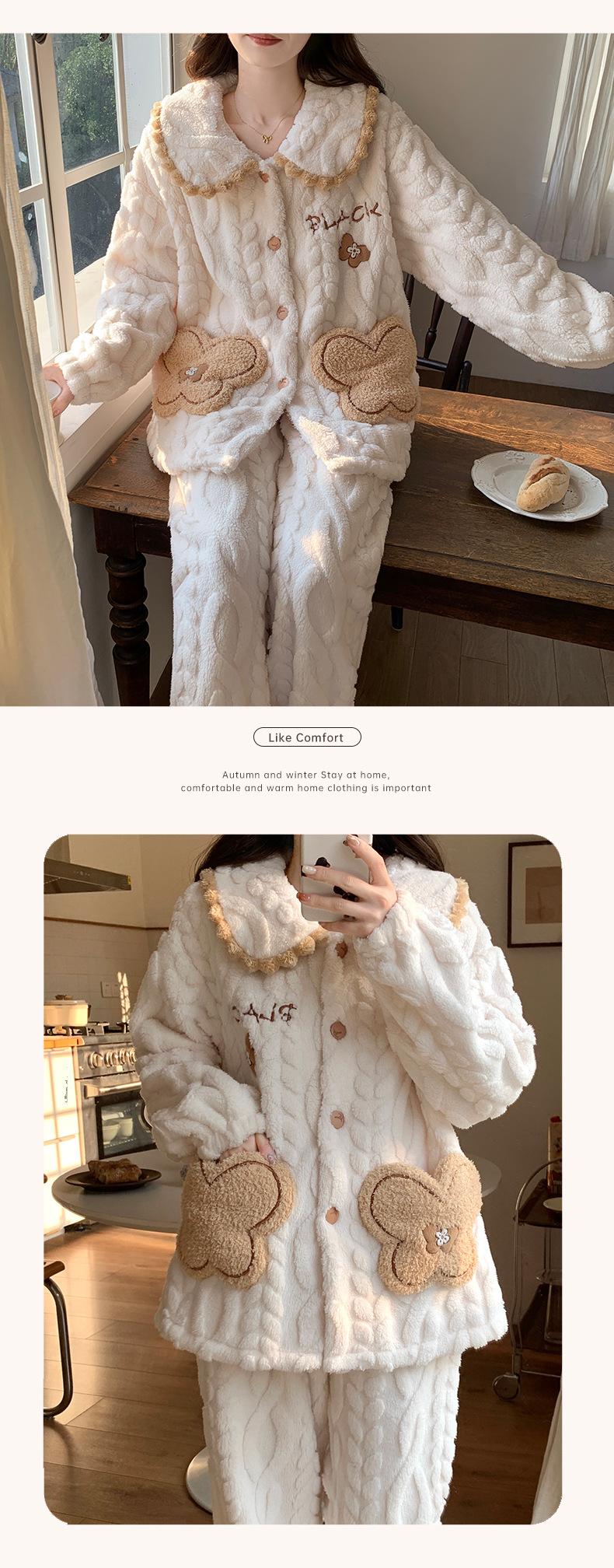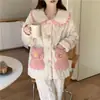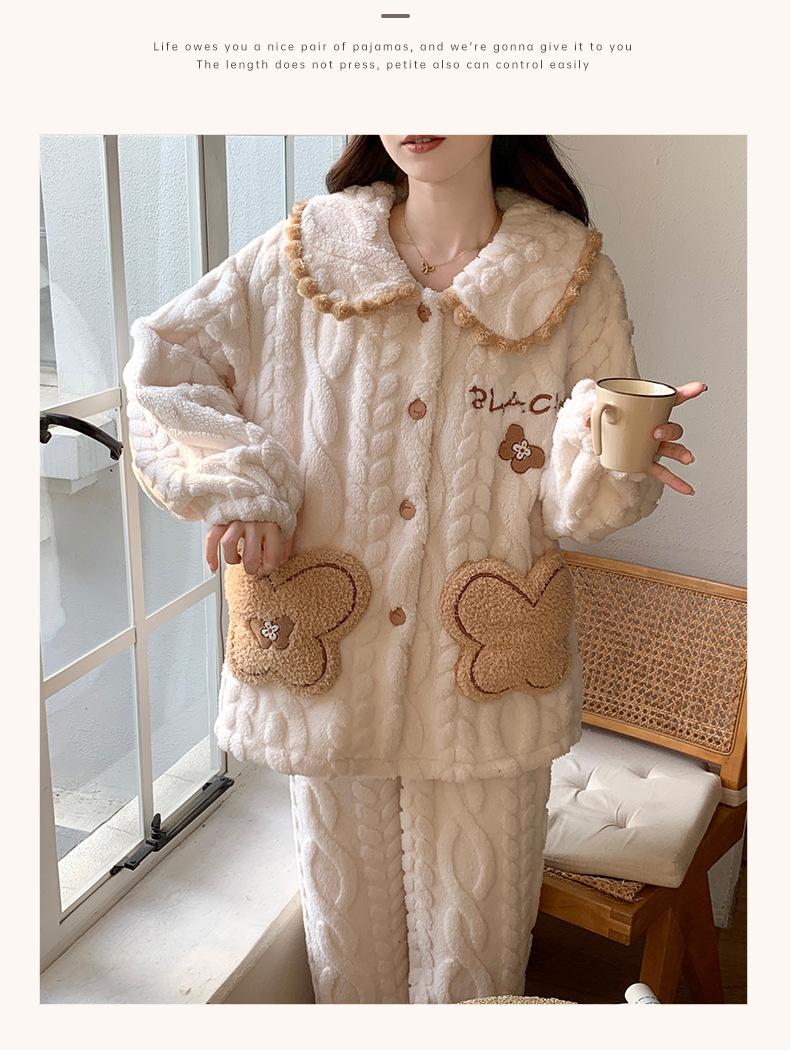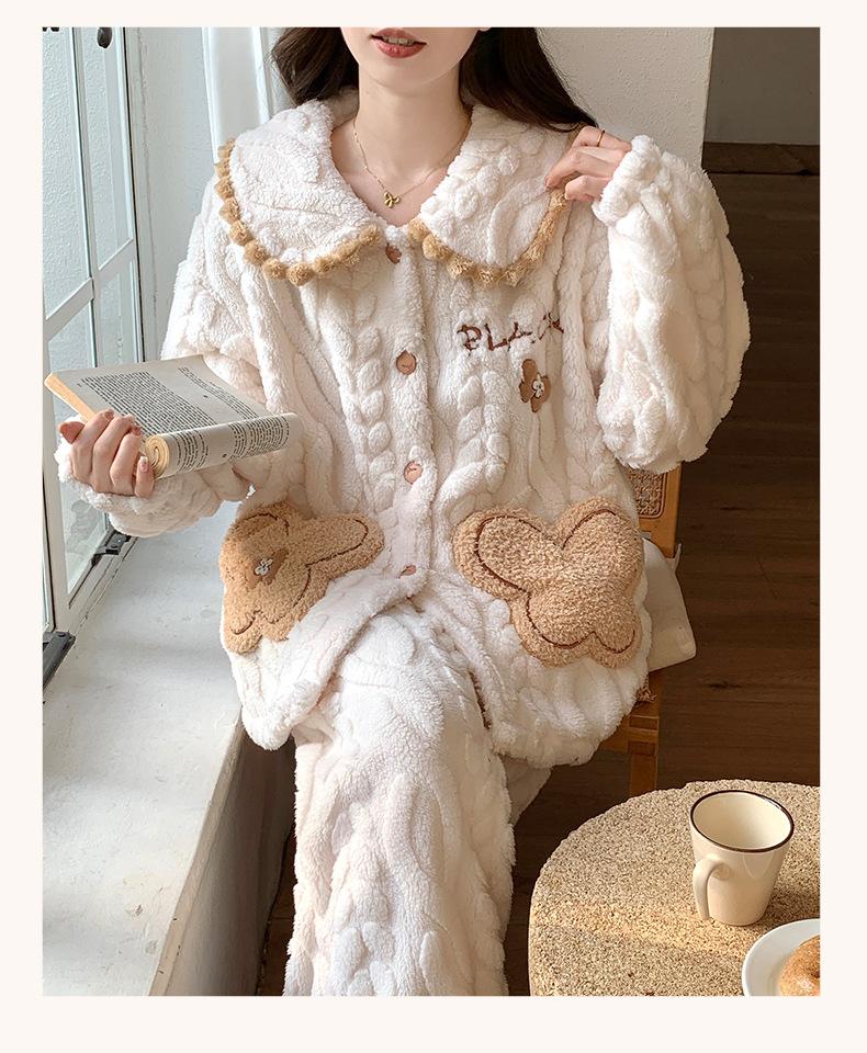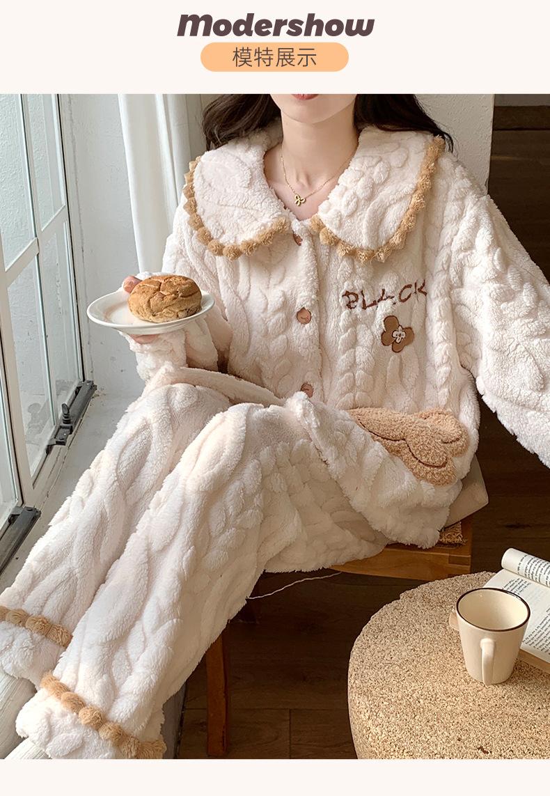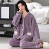 Pijama de Forro Polar Coral para Mujer Invierno con Forro Polar Grueso Ropa de Casa para Mujer 2025 Nuevo Traje Cárdigan de Franela para Invierno