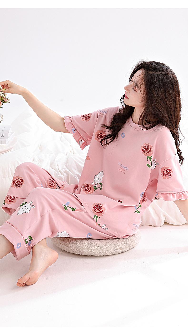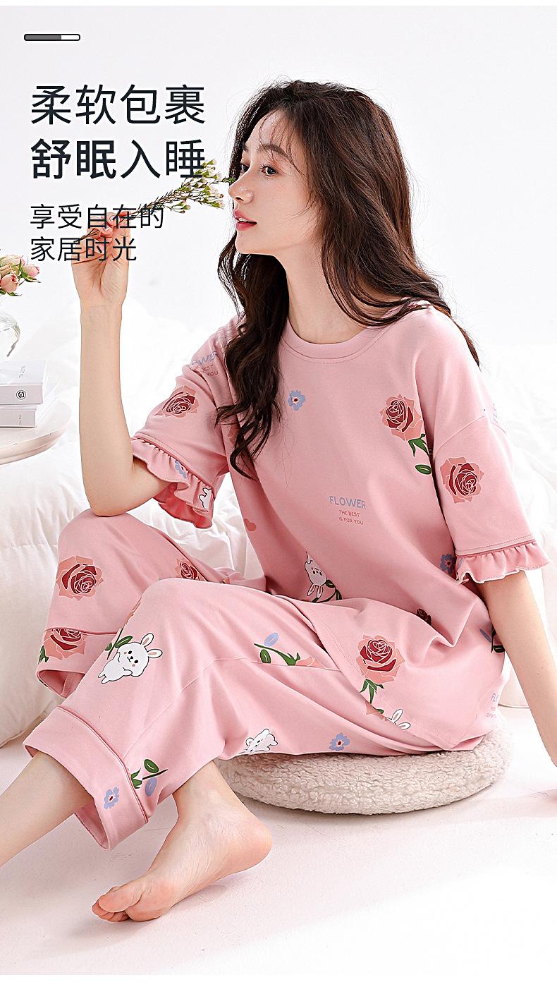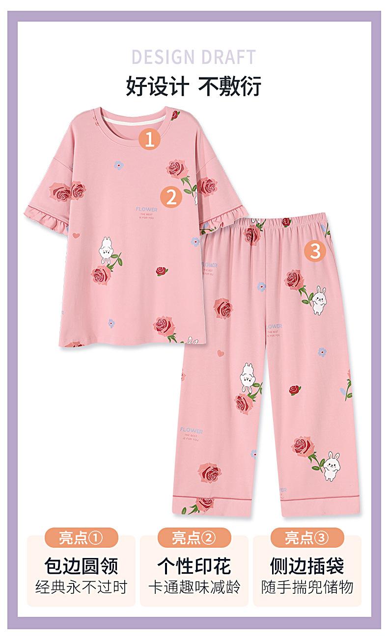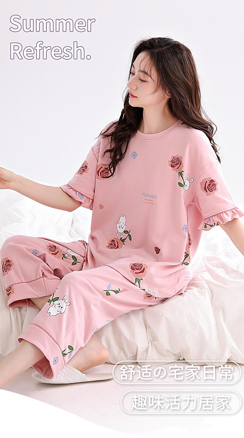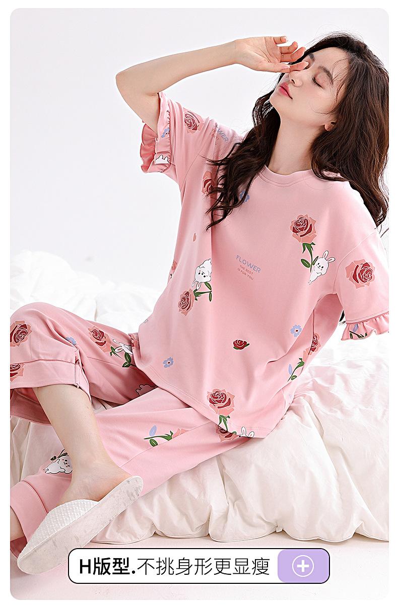 Pijamas de mujer 2025 nuevo verano algodón manga corta pantalones capri verano ropa exterior talla grande ropa de casa traje dulce
