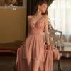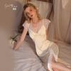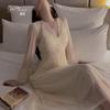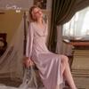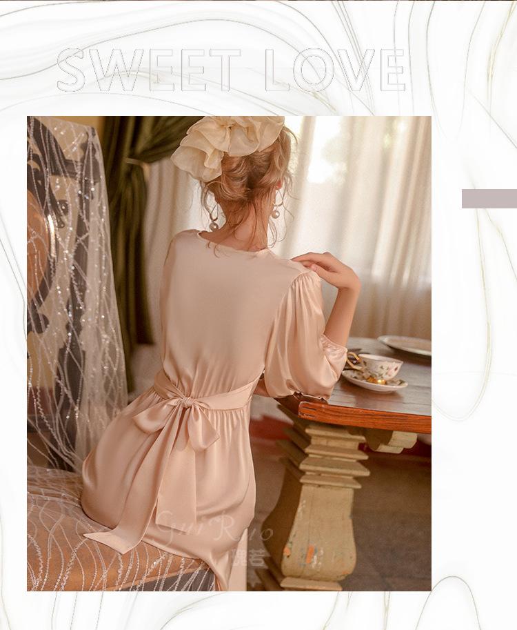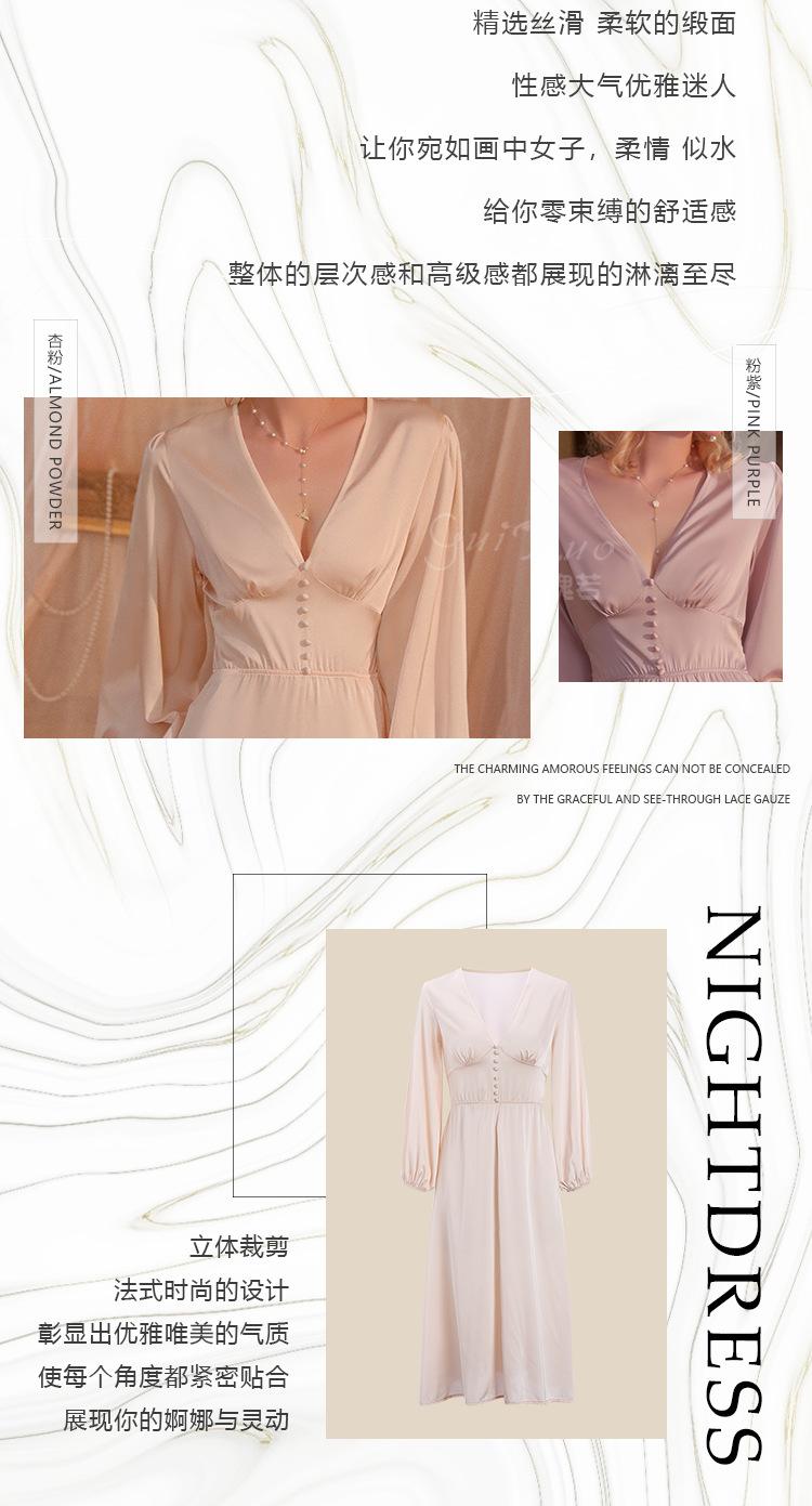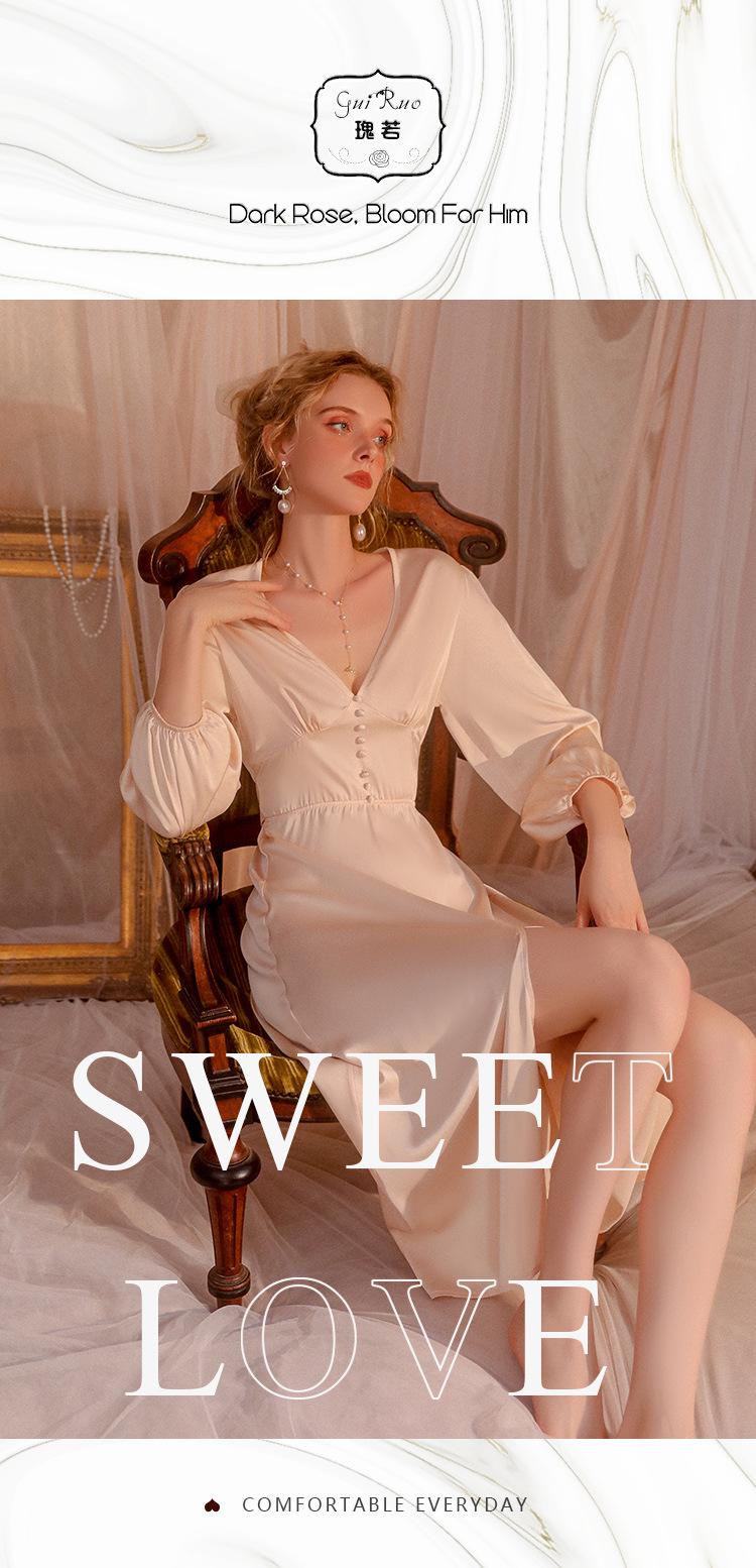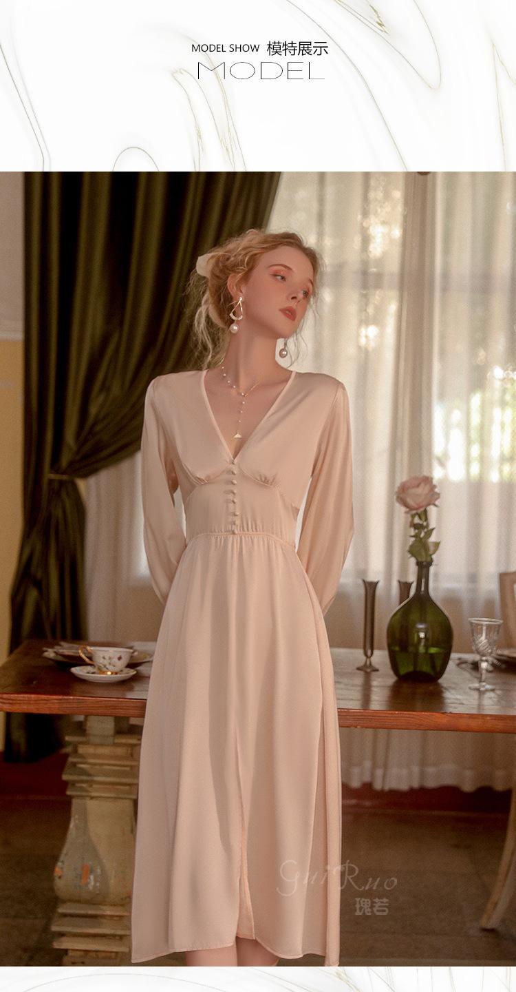 Guiruo bata de noche larga de satén con abertura para mujer, tentación sexy, francesa con escote en V profundo, para llevar encima, traje de ropa para el hogar Q2796