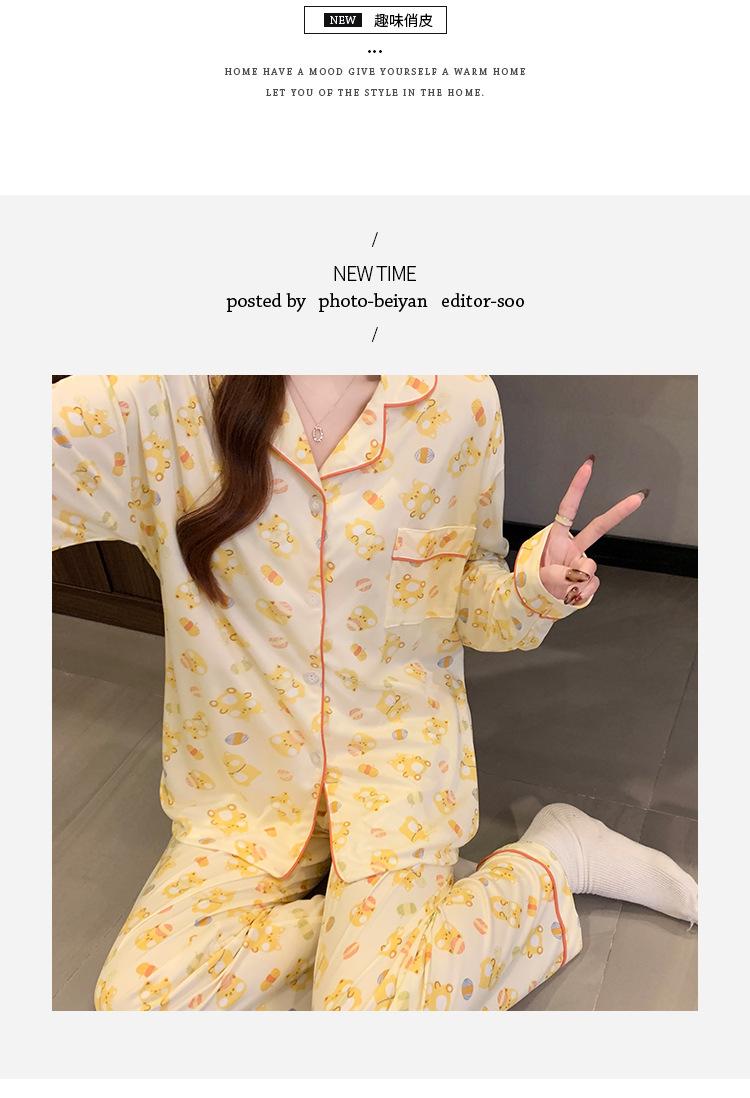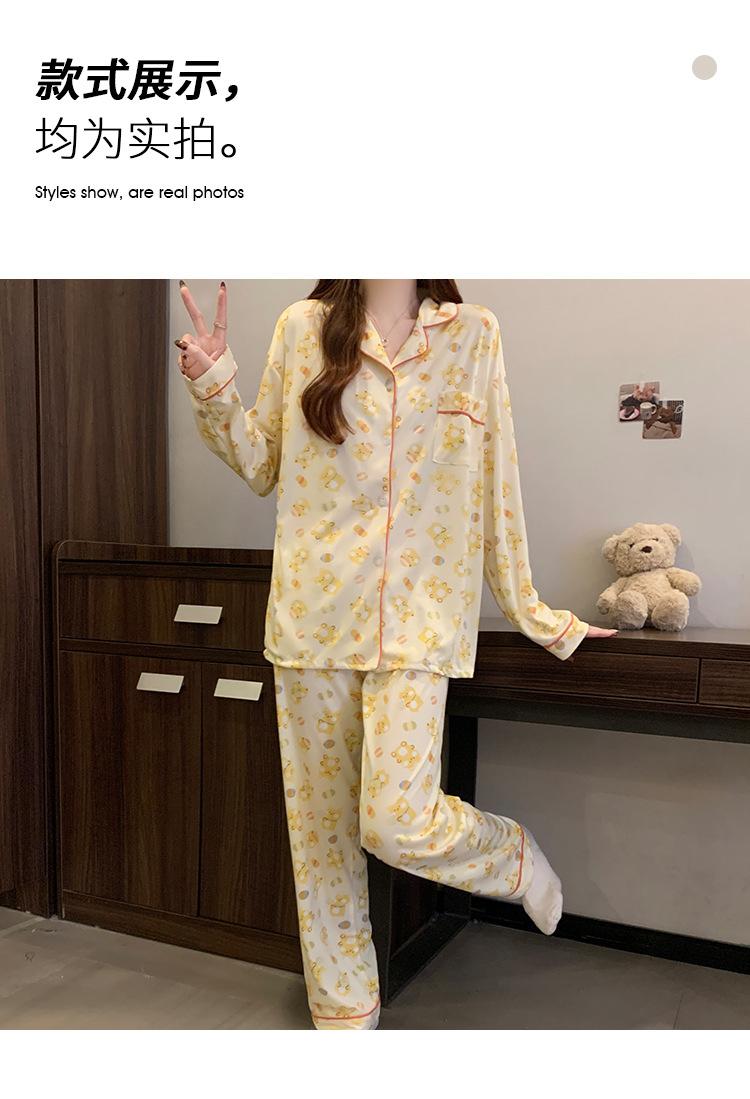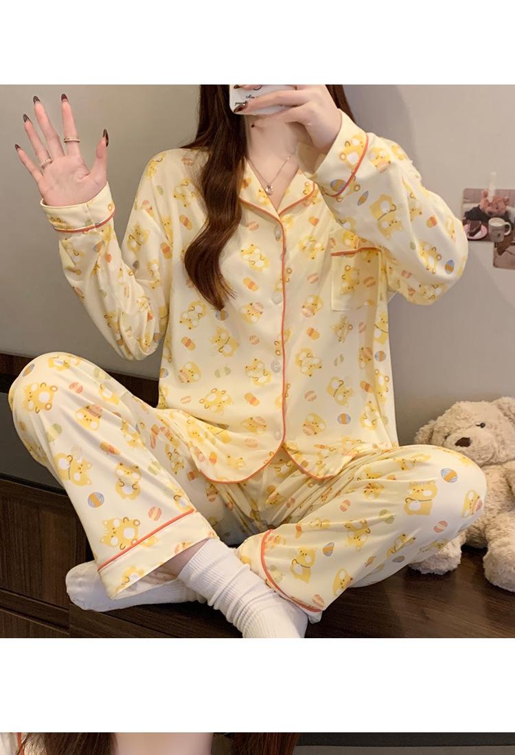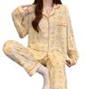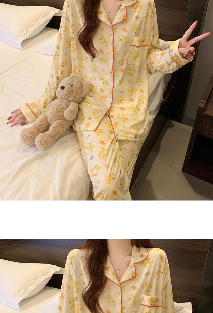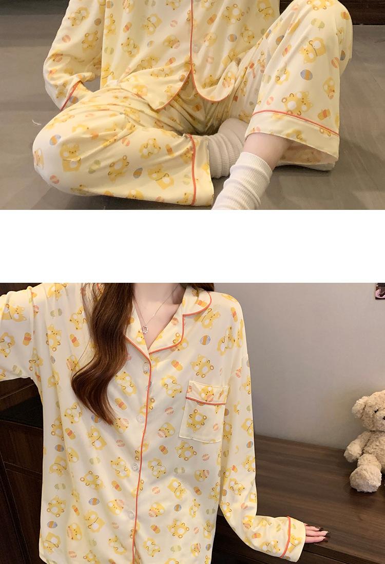 Primavera nuevo pijama de mujer delgado de manga larga pantalones lindo oso amarillo leche traje casual para el hogar venta al por mayor