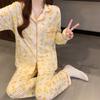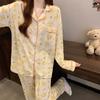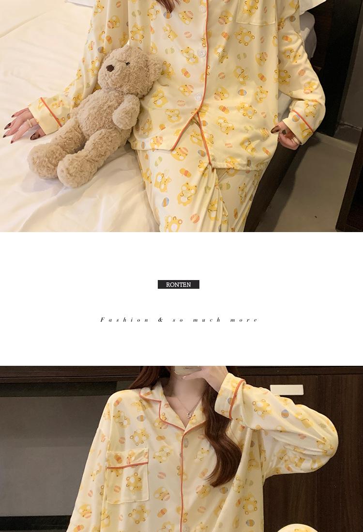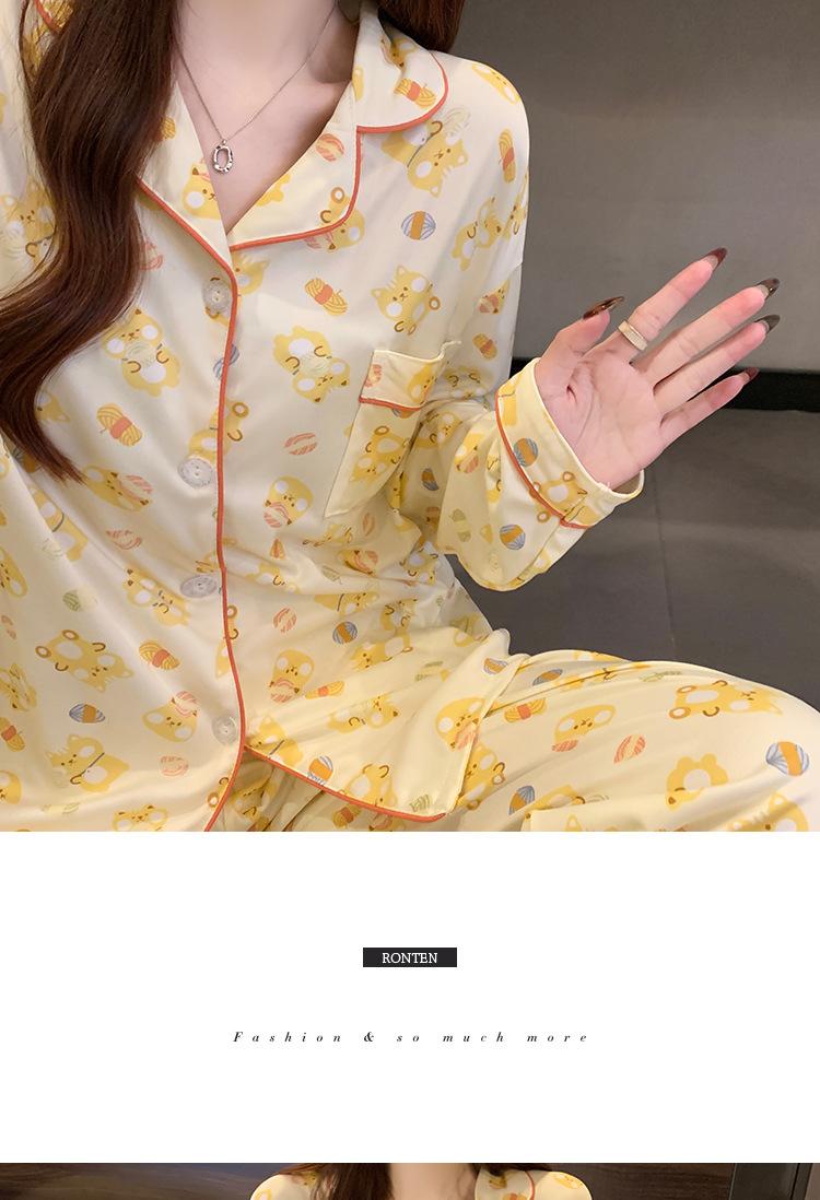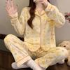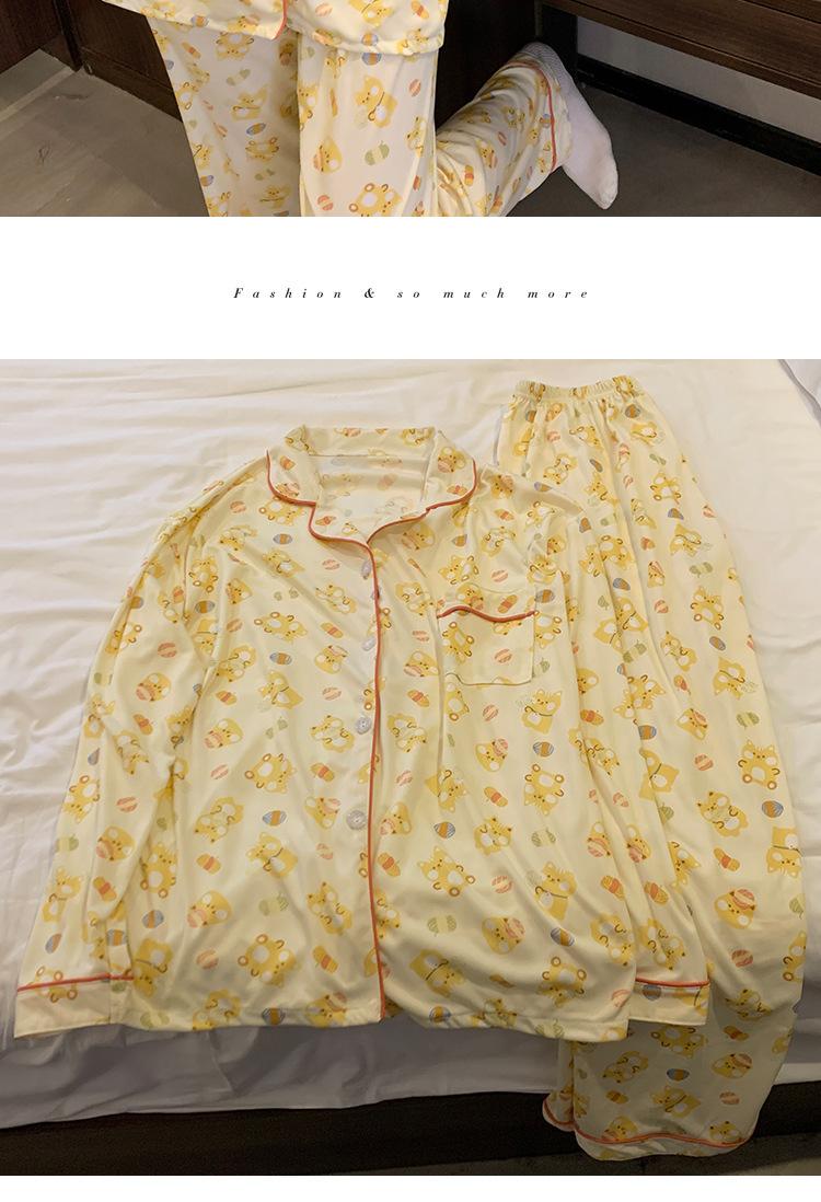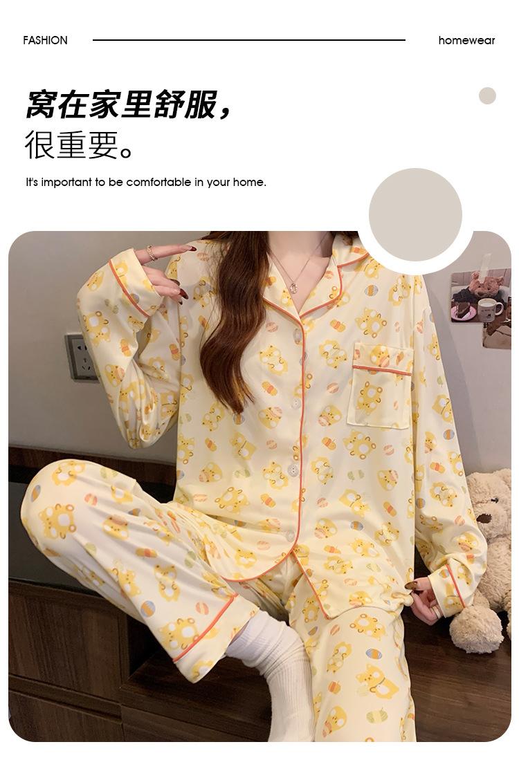 Primavera nuevo pijama de mujer delgado de manga larga pantalones lindo oso amarillo leche traje casual para el hogar venta al por mayor