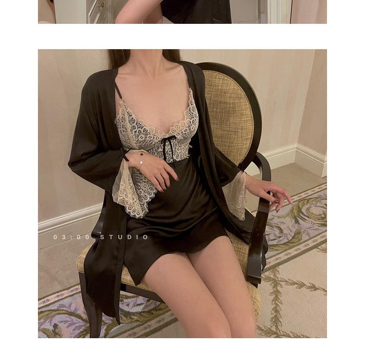 Compra Pijama sexy Camisón delgado de seda de hielo para mujer con tirantes de encaje y almohadilla en el pecho, conjunto de dos piezas, nuevo verano otoño 2021 al por mayor en Joom.pro