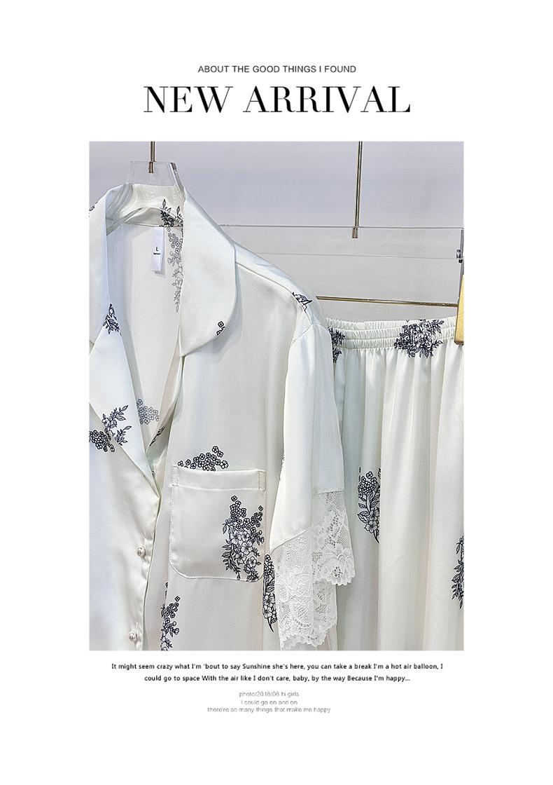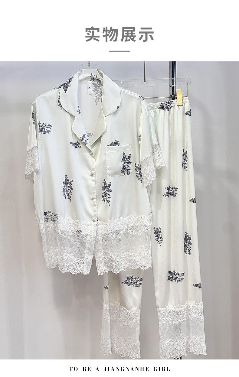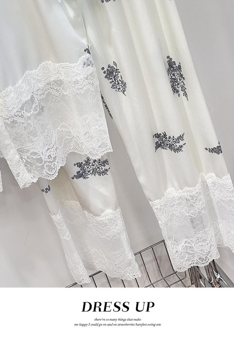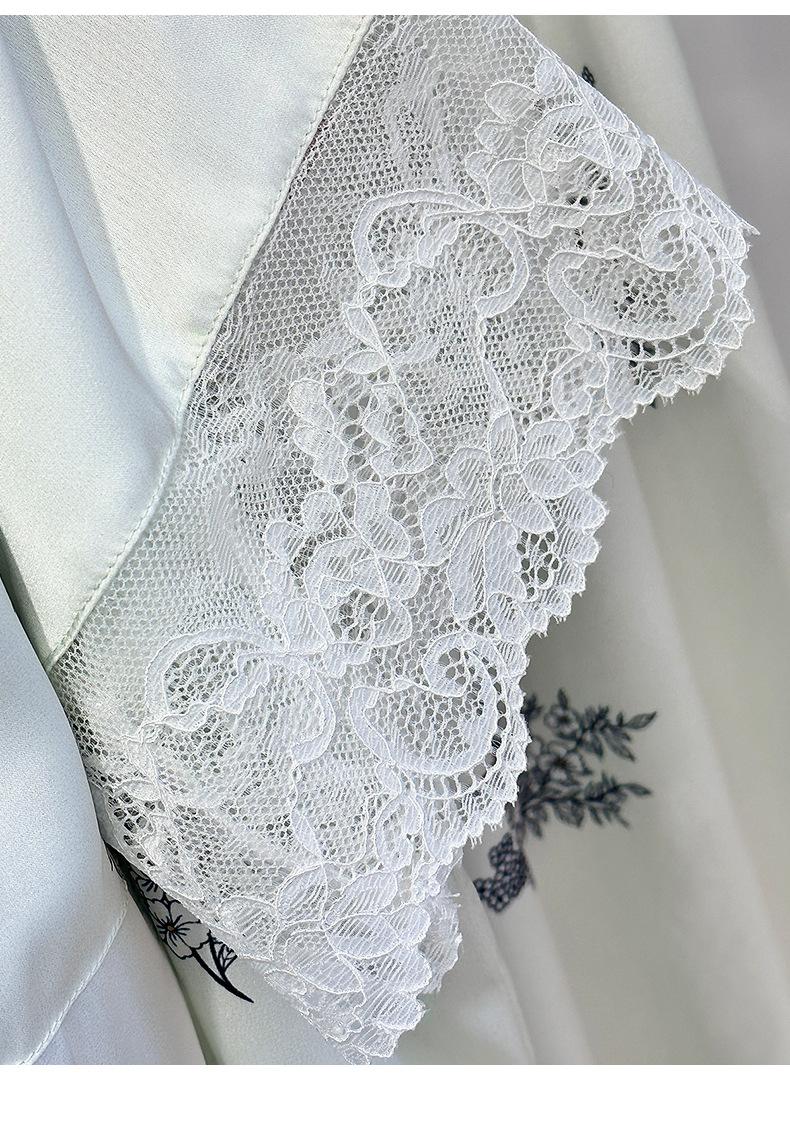 2025 Foto Real Estilo Deseo Puro Pijama de Mujer Primavera y Verano Encaje Ancho verde claro Ropa de Casa Seda Helada Nuevo Pantalón de Manga Larga
