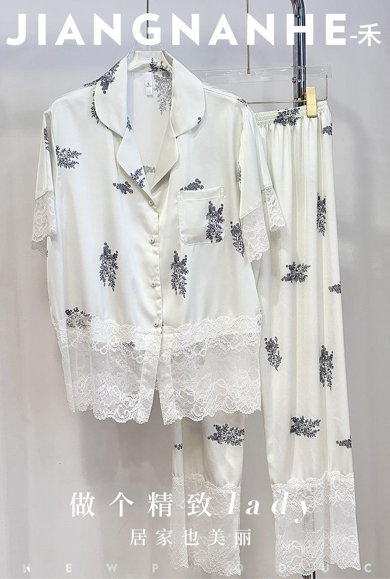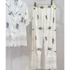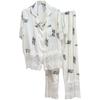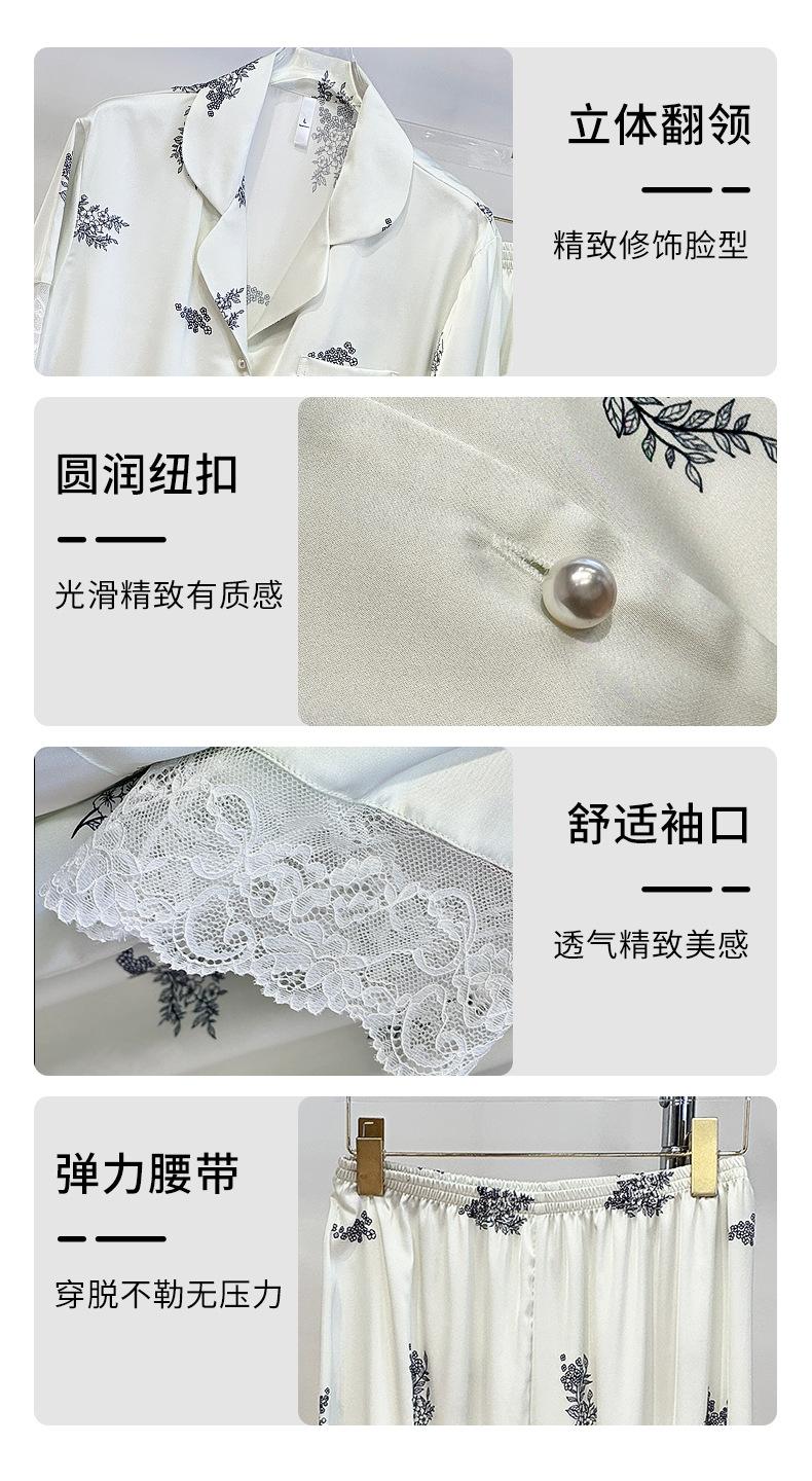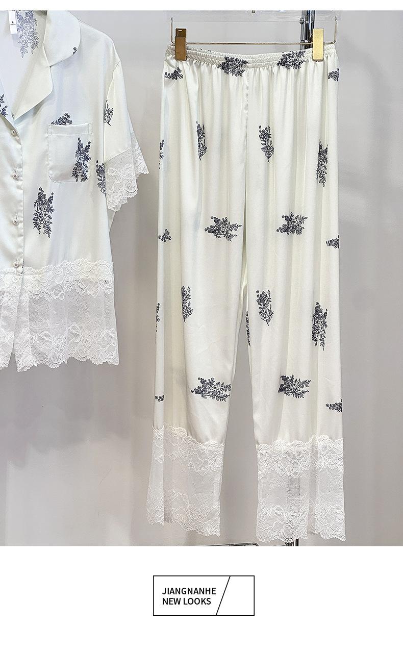 2025 Foto Real Estilo Deseo Puro Pijama de Mujer Primavera y Verano Encaje Ancho verde claro Ropa de Casa Seda Helada Nuevo Pantalón de Manga Larga