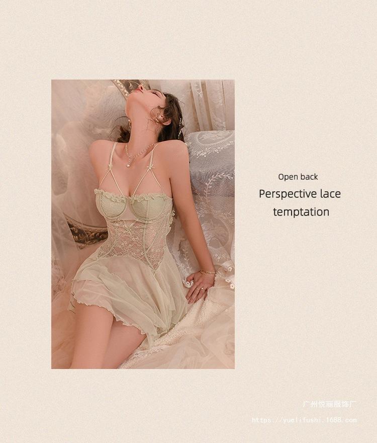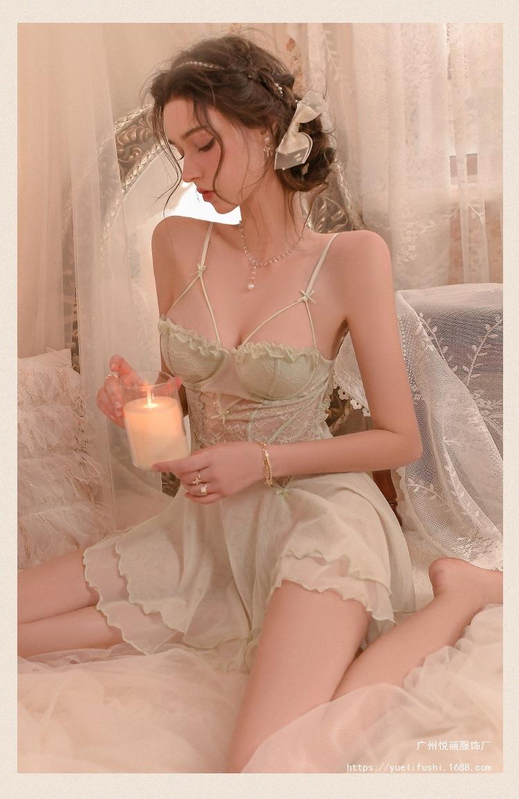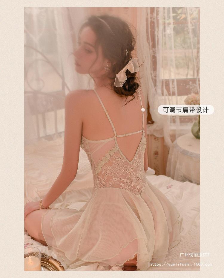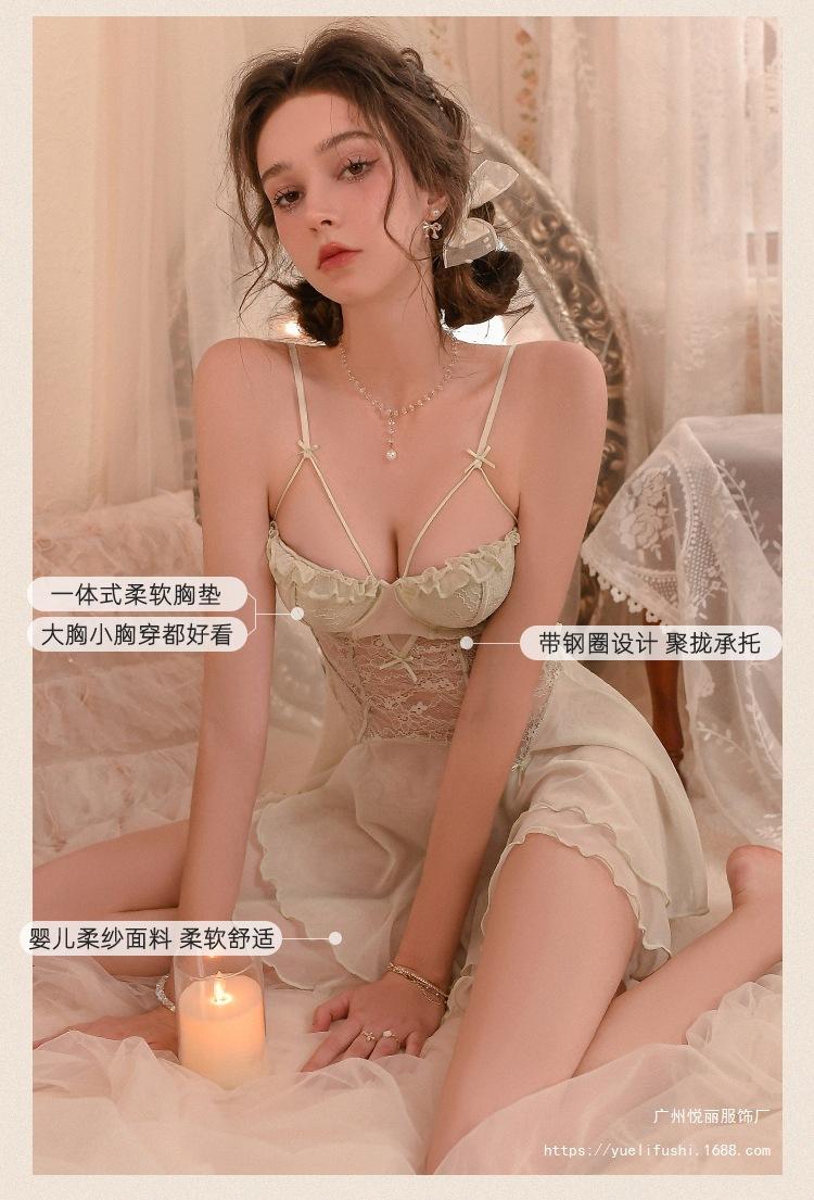 Pijama Sexy Romántico Francés de Alta Gama para Mujer 2025 Nuevo Encaje Lujuria Pura Camisón con Tirantes y Almohadillas para el Busto