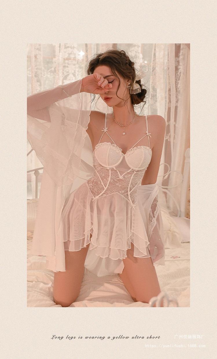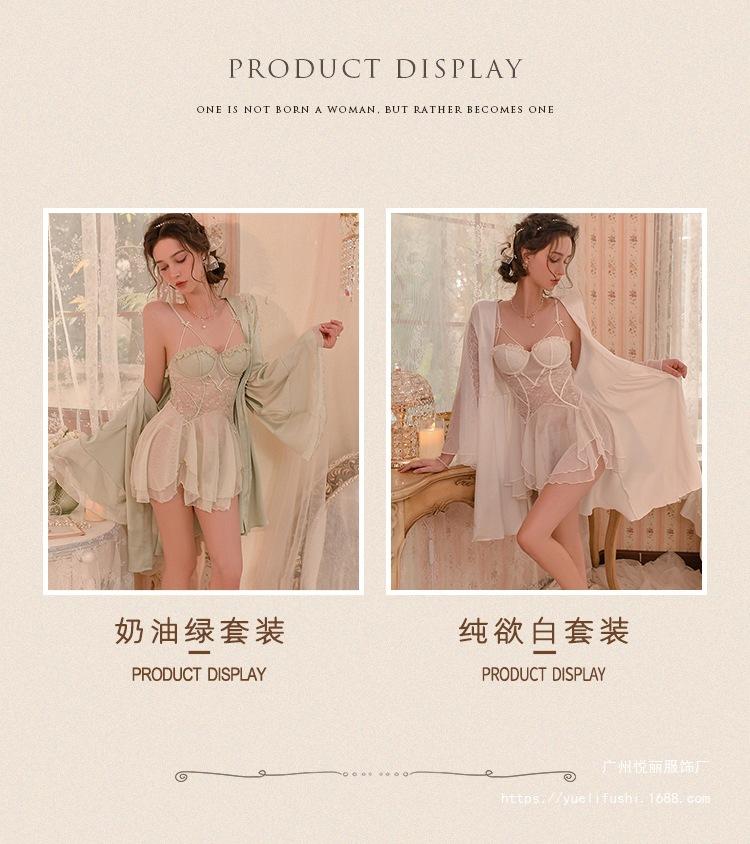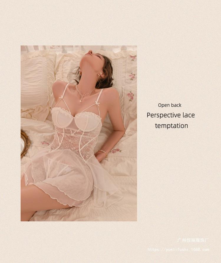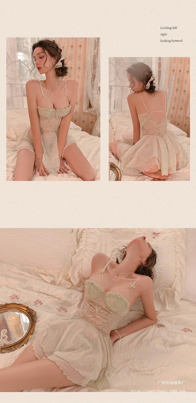Pijama Sexy Romántico Francés de Alta Gama para Mujer 2025 Nuevo Encaje Lujuria Pura Camisón con Tirantes y Almohadillas para el Busto