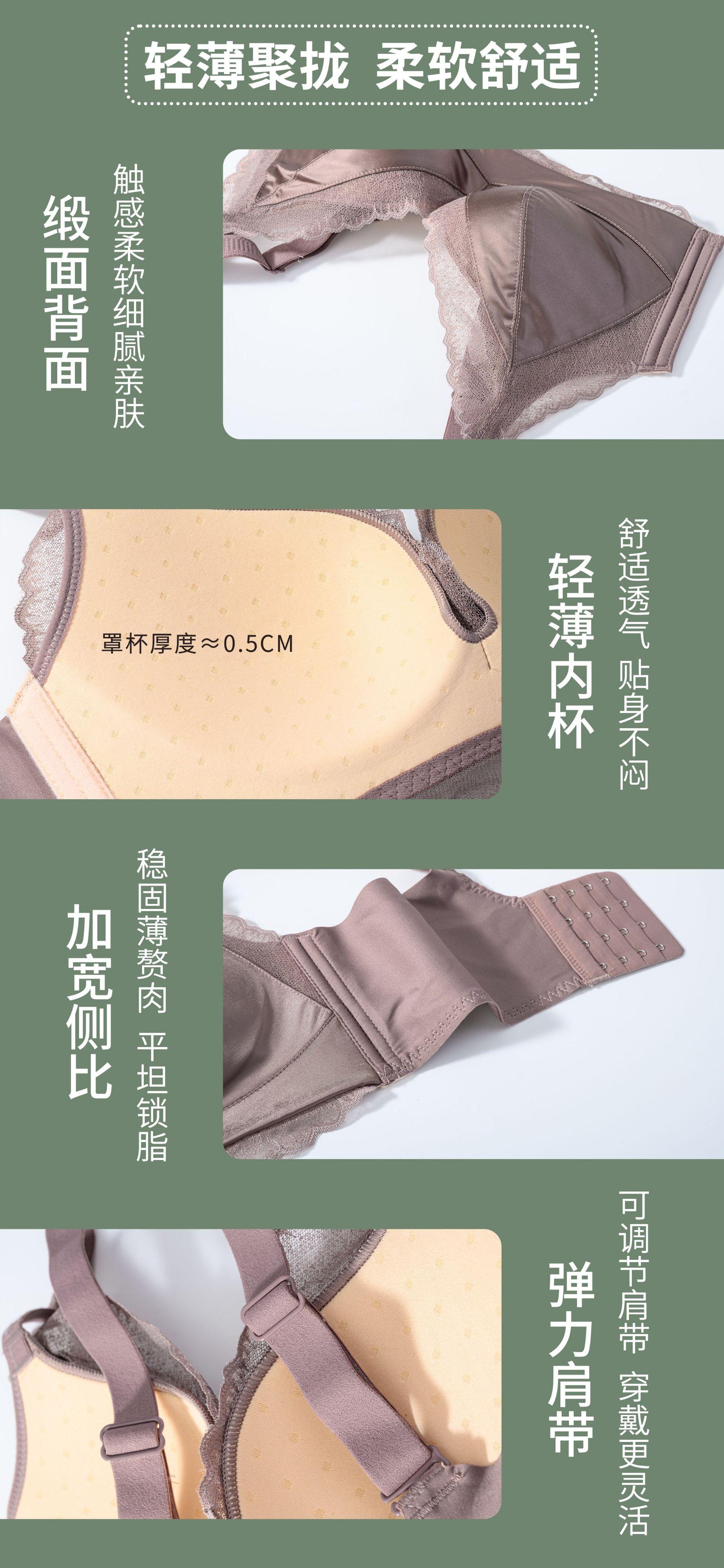 Gather, Traceless, Breathable, Push up, Adjustable, Comfortable, Side collection, Breast reinforcement