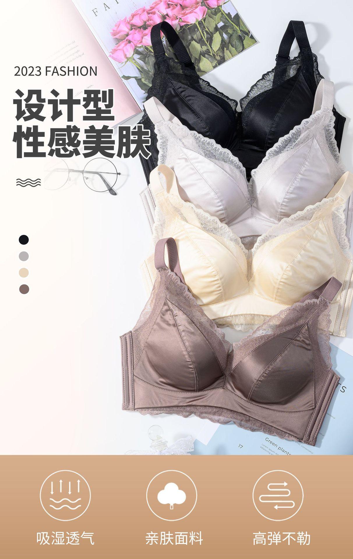 8025 ligero y delgado encaje de satén sin costuras sin aro de acero ropa interior delgada accesorio para mujer pecho ajustable profundo V sujetador push-up