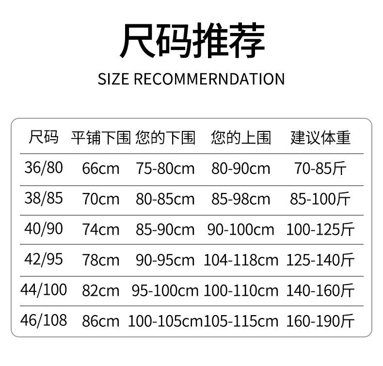 Size 36, 38 yards, 40 yards, Size 42, 44 yards, Size 46