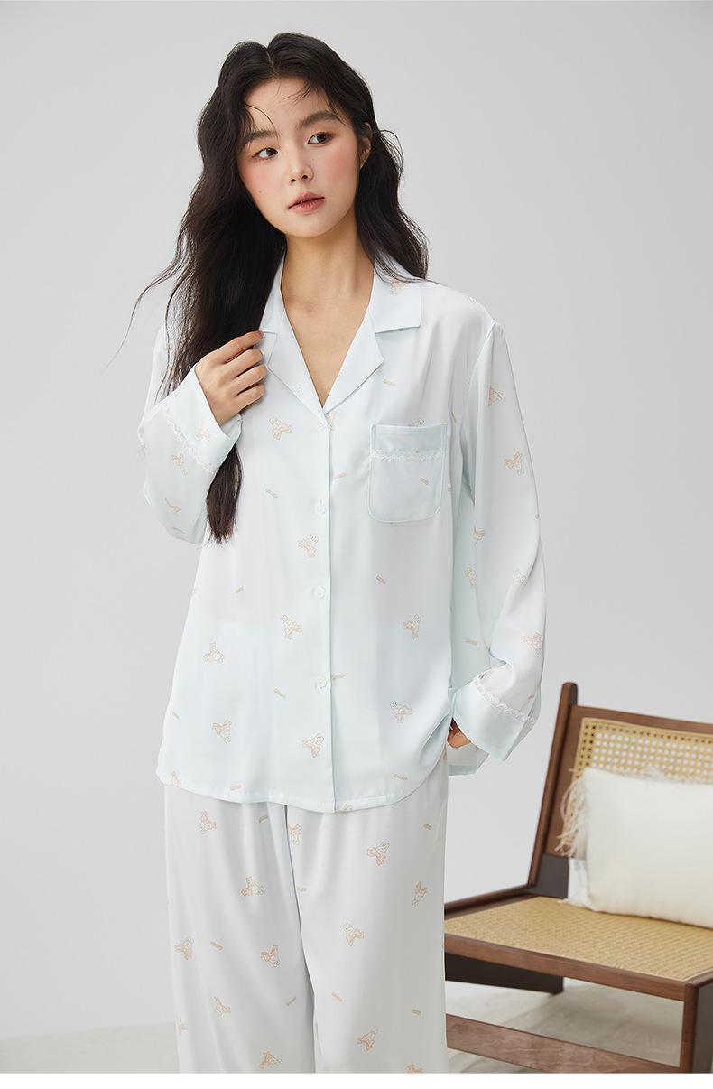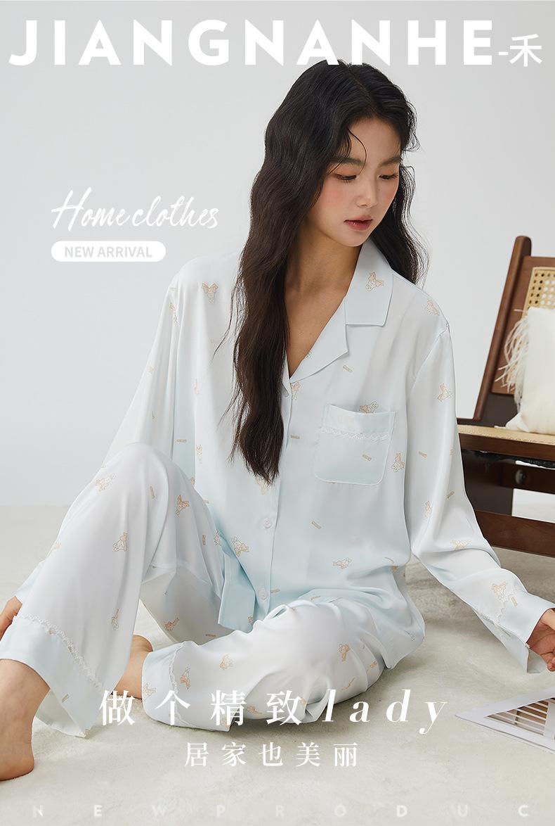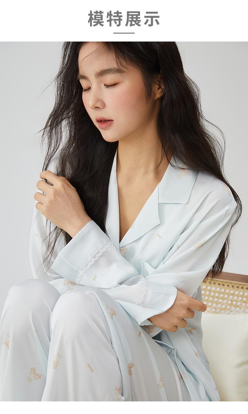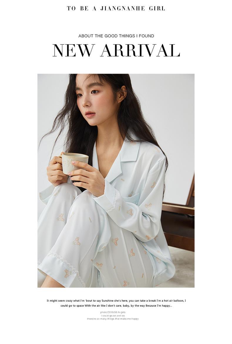 Pijamas franceses para mujer, primavera de 25 años, nuevos, de seda helada, con encaje de conejo azul, ropa de alta gama para el hogar, verano, una generación de cabello
