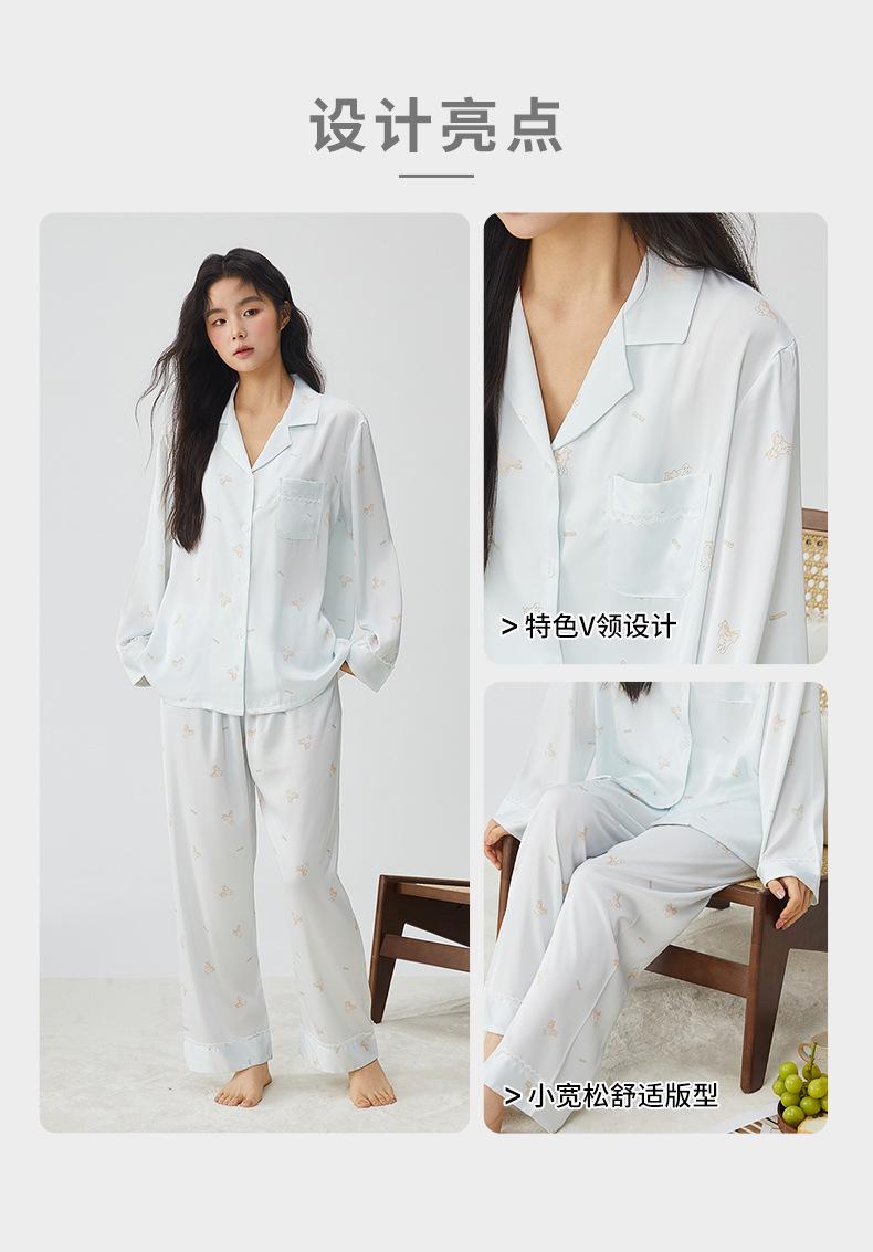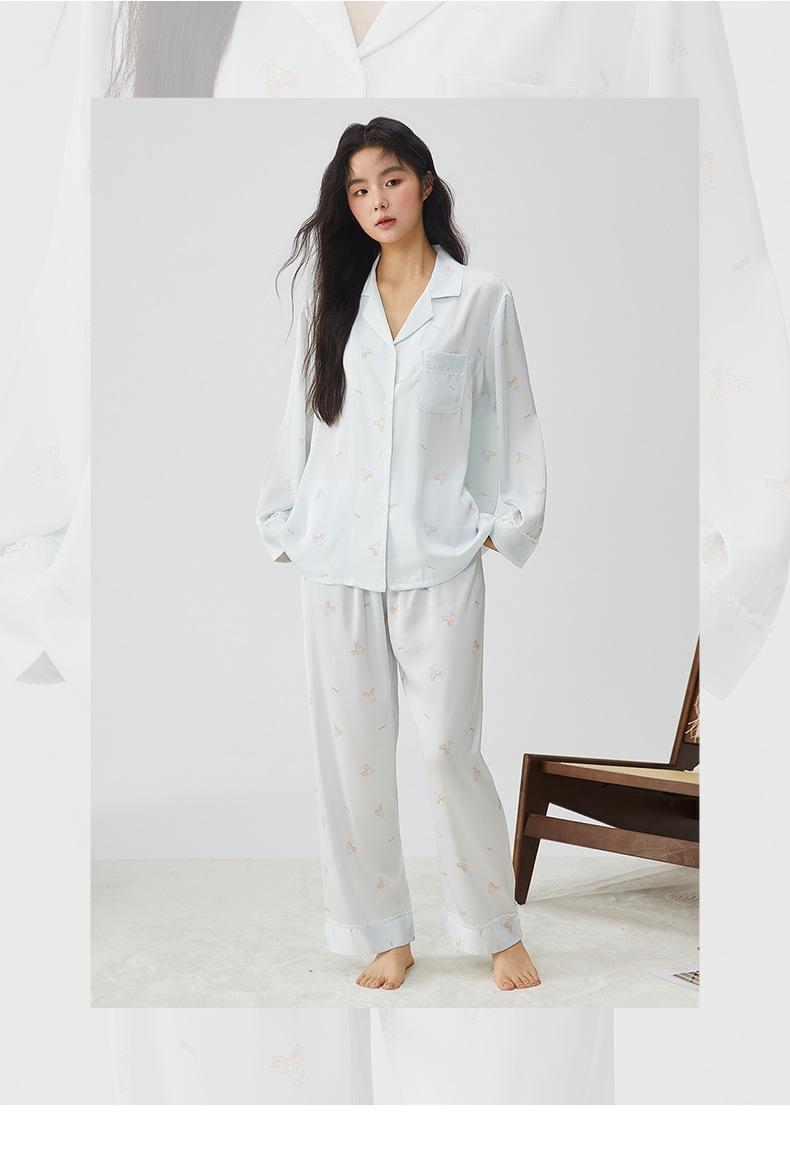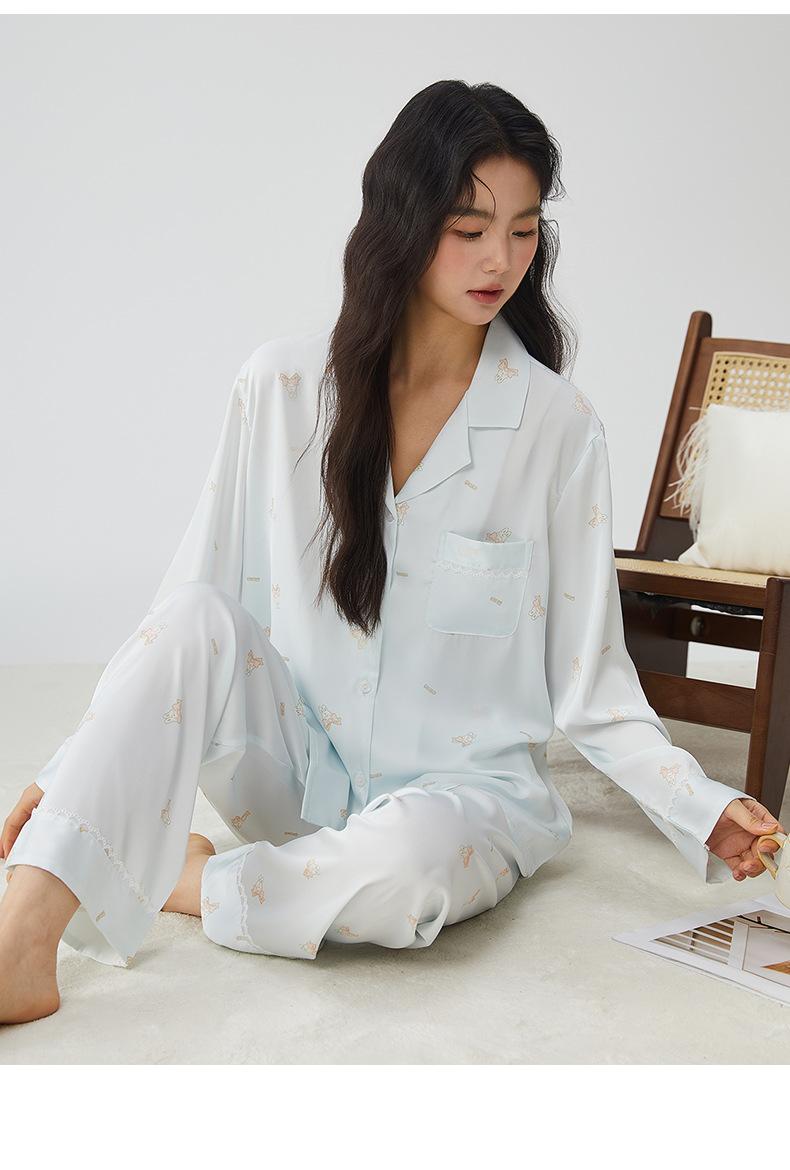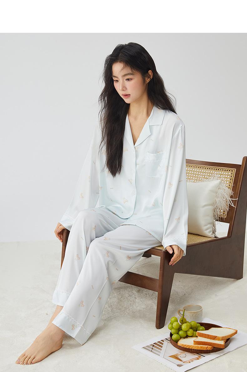 Pijamas franceses para mujer, primavera de 25 años, nuevos, de seda helada, con encaje de conejo azul, ropa de alta gama para el hogar, verano, una generación de cabello