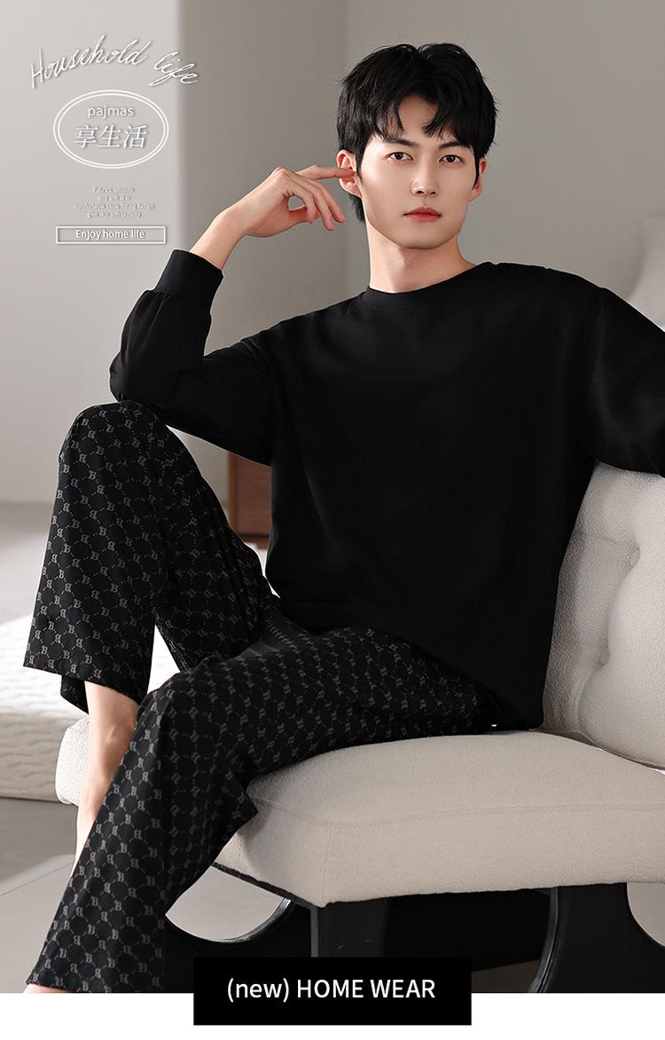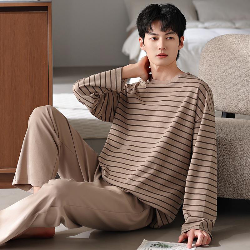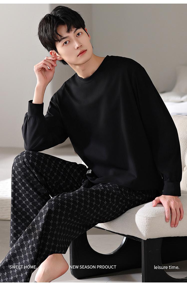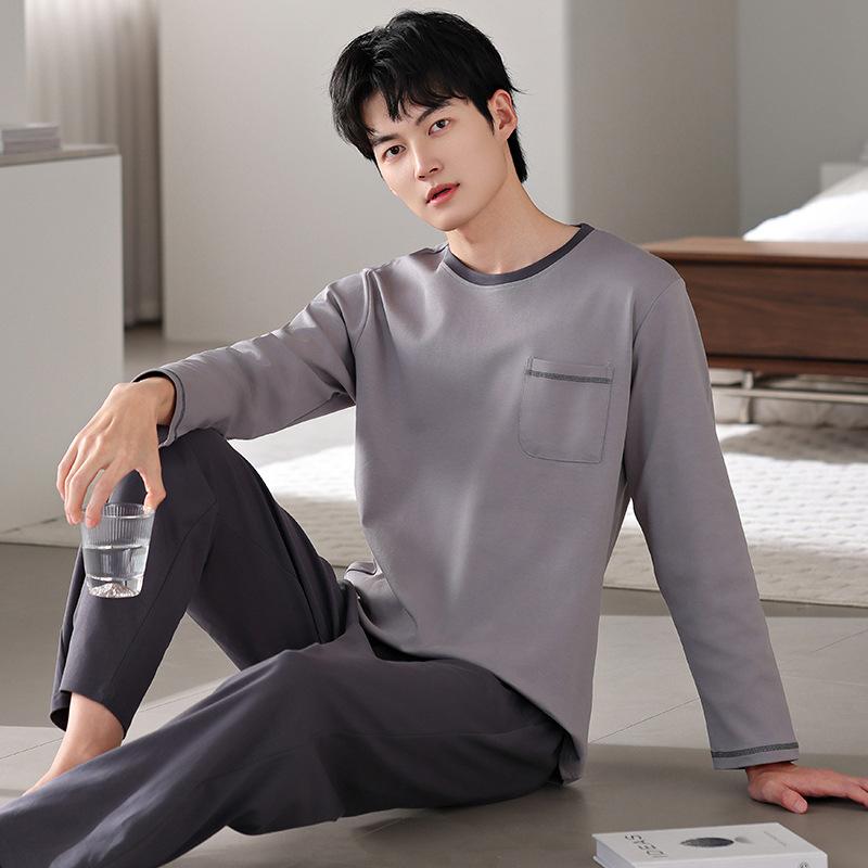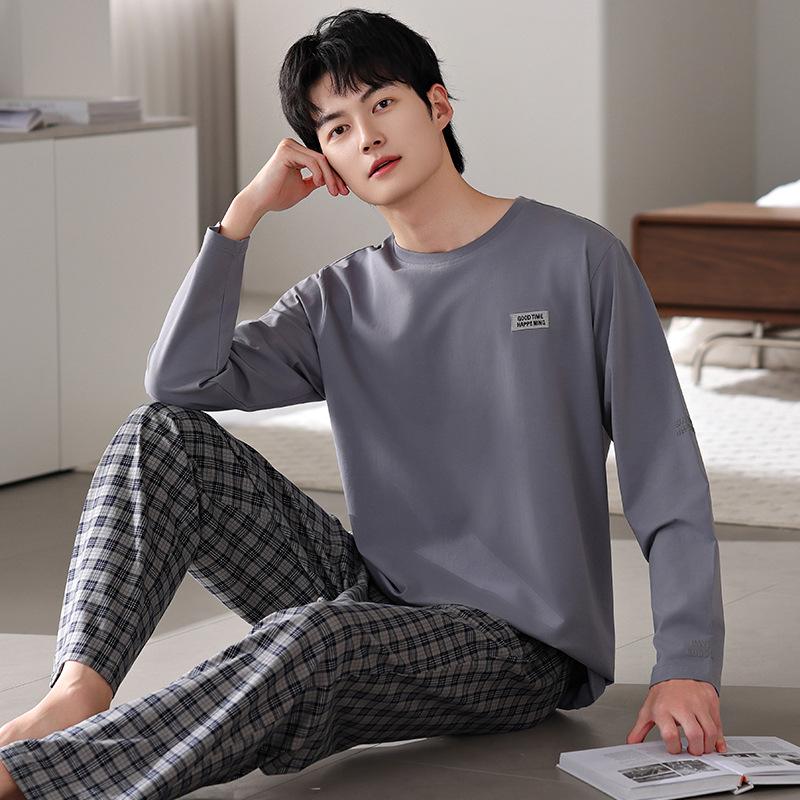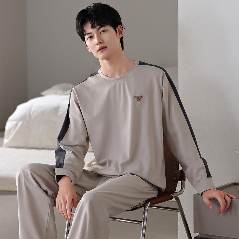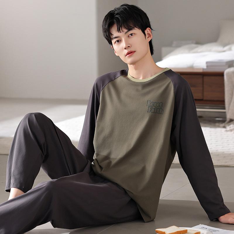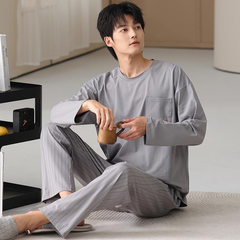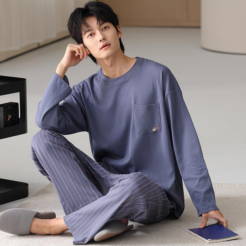 Pijamas nuevos para hombre, de algodón, de manga larga, con pantalones tipo jersey, para primavera y otoño, ropa informal sencilla para el hogar, ropa exterior.