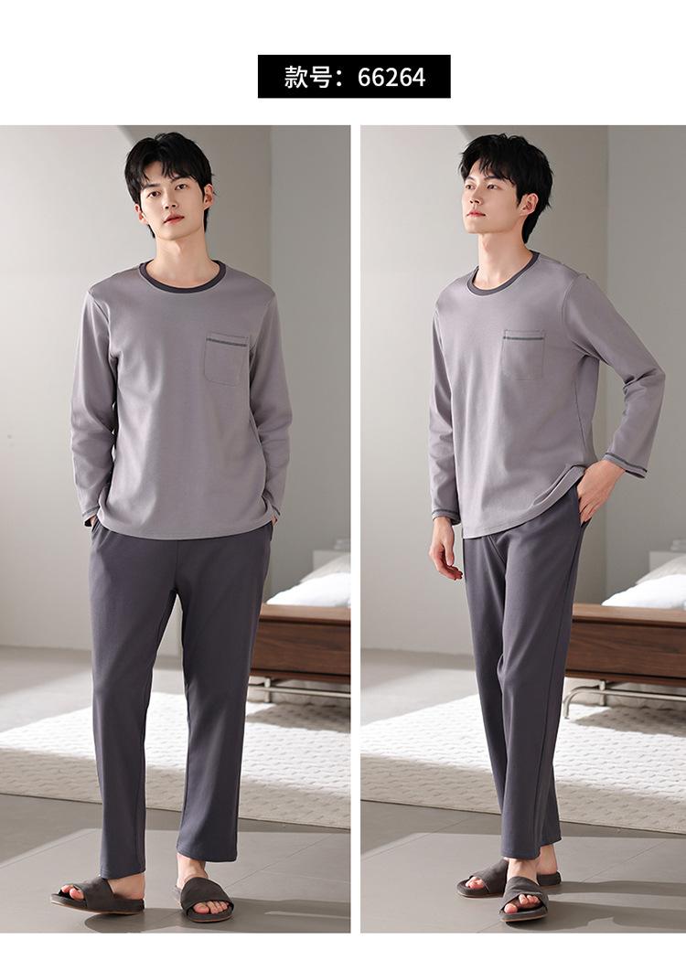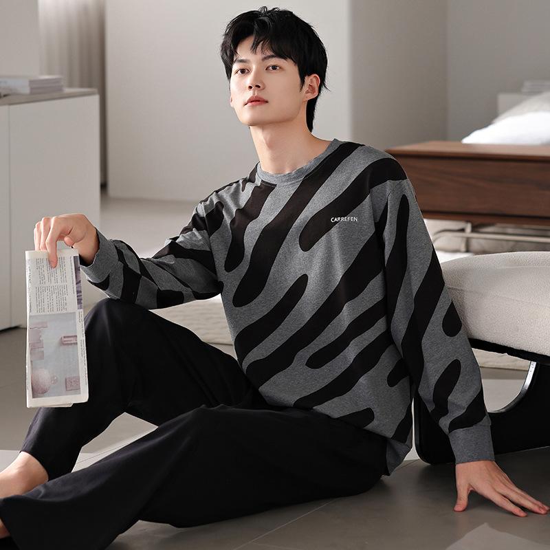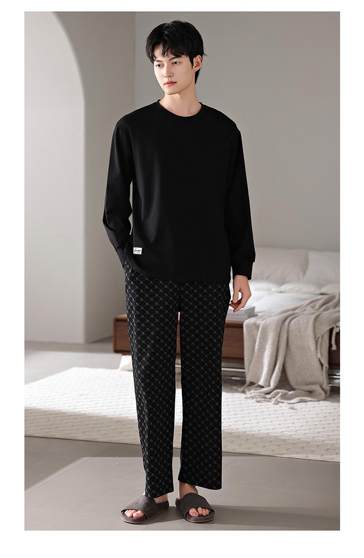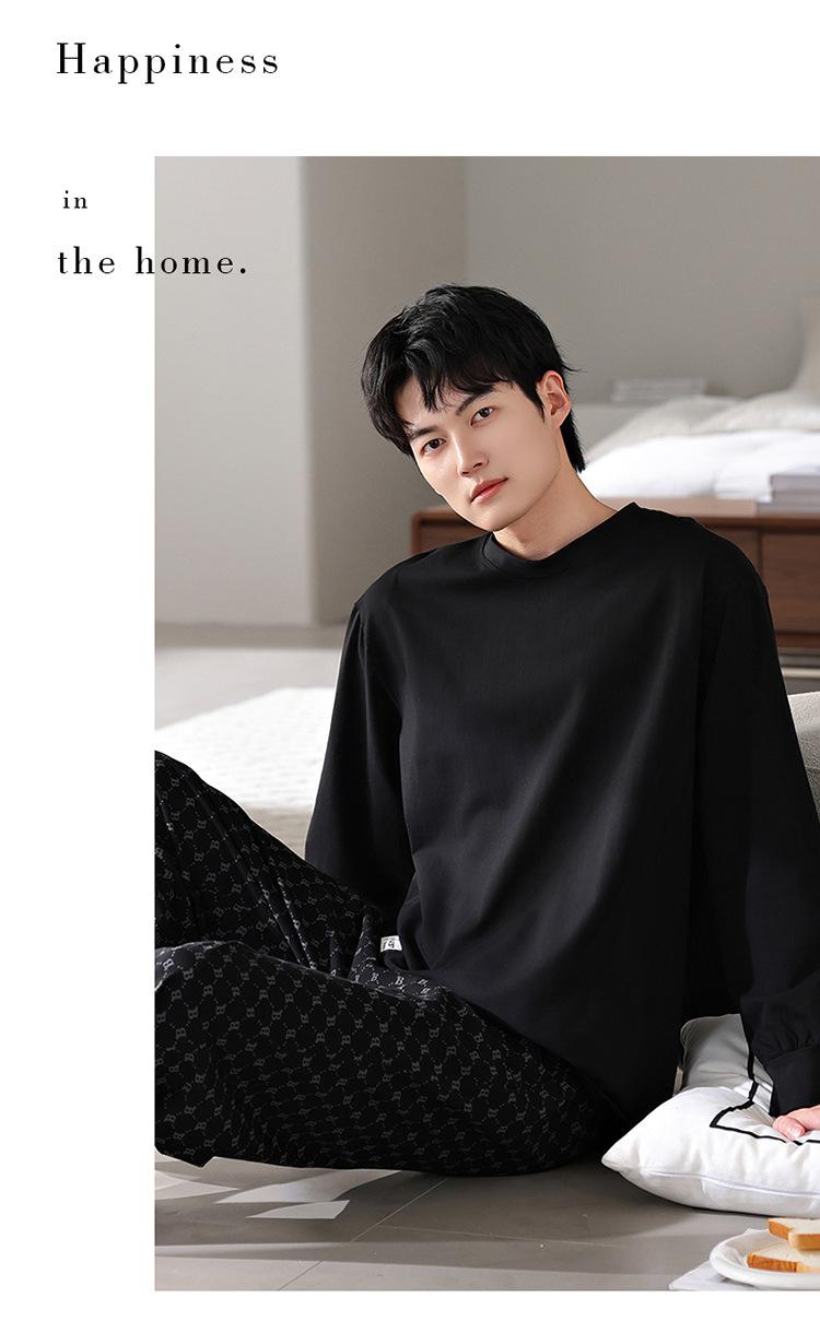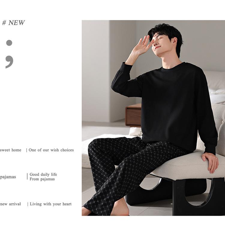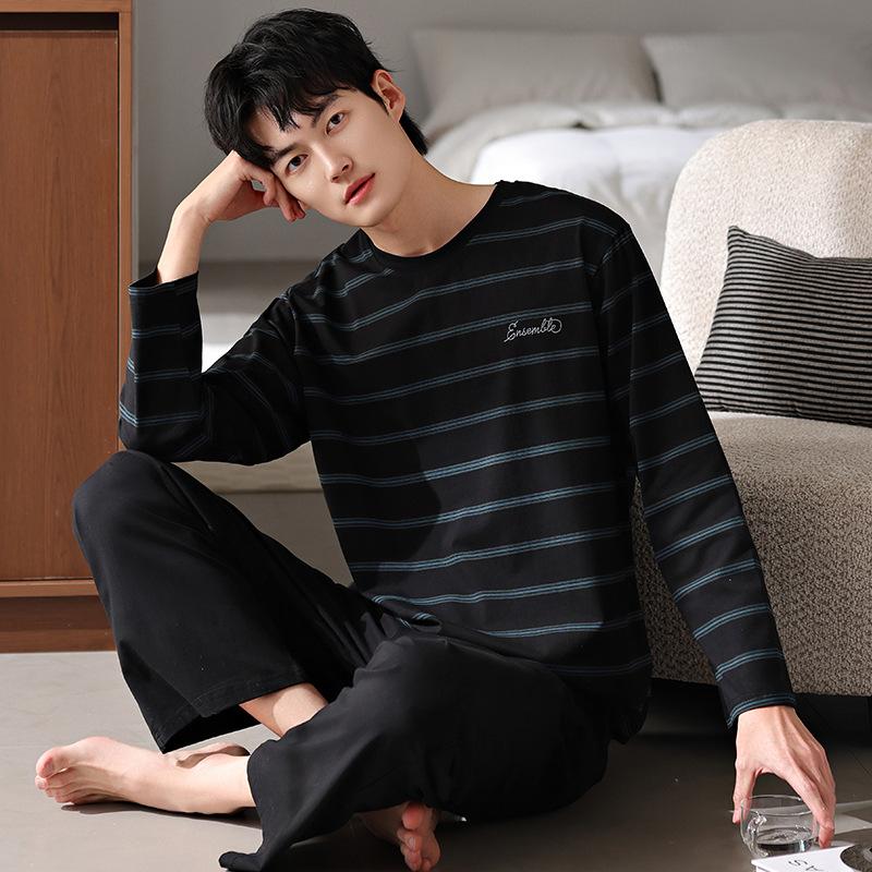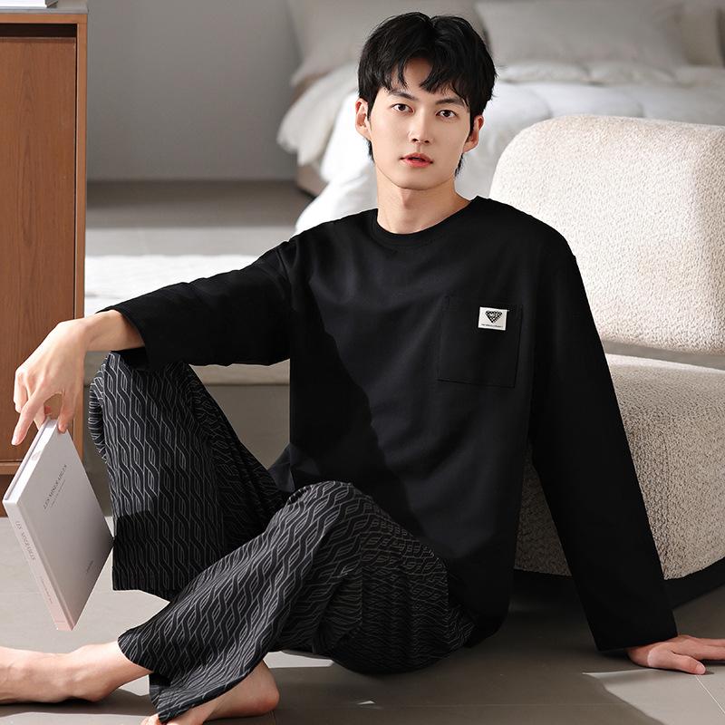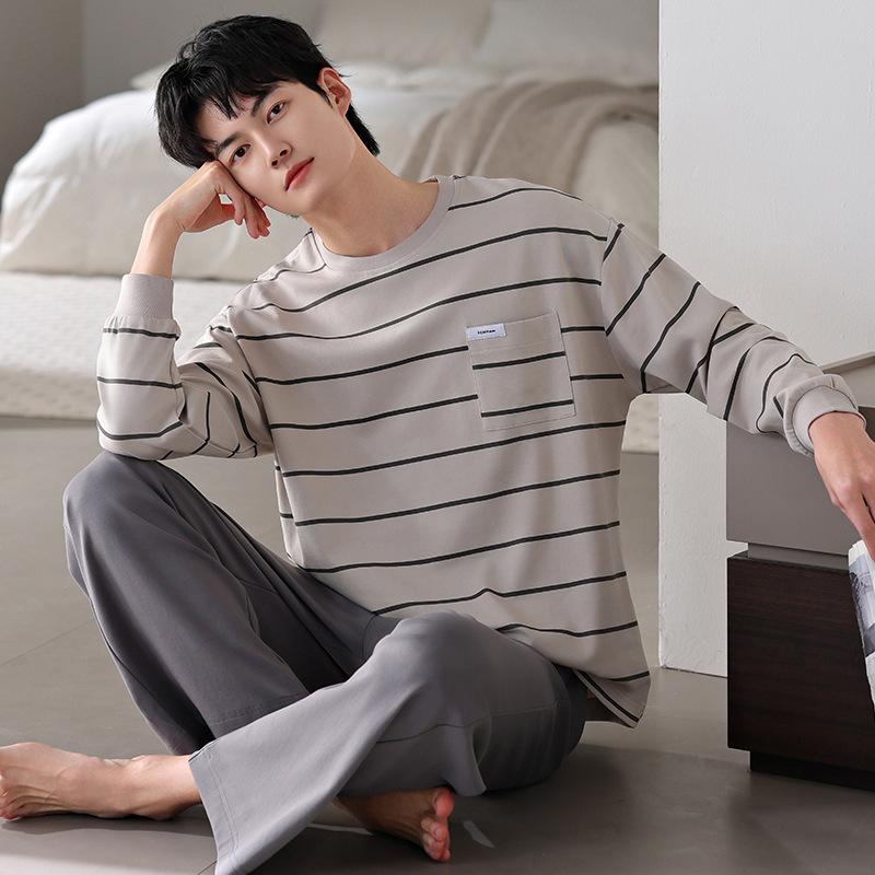 Pijamas nuevos para hombre, de algodón, de manga larga, con pantalones tipo jersey, para primavera y otoño, ropa informal sencilla para el hogar, ropa exterior.