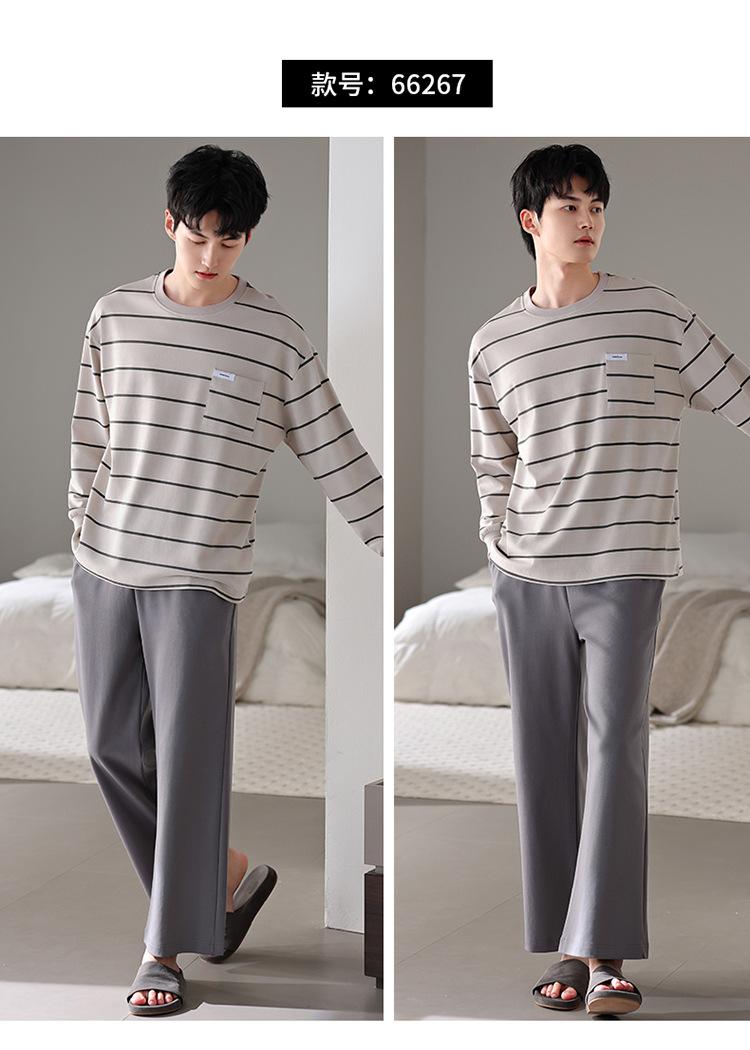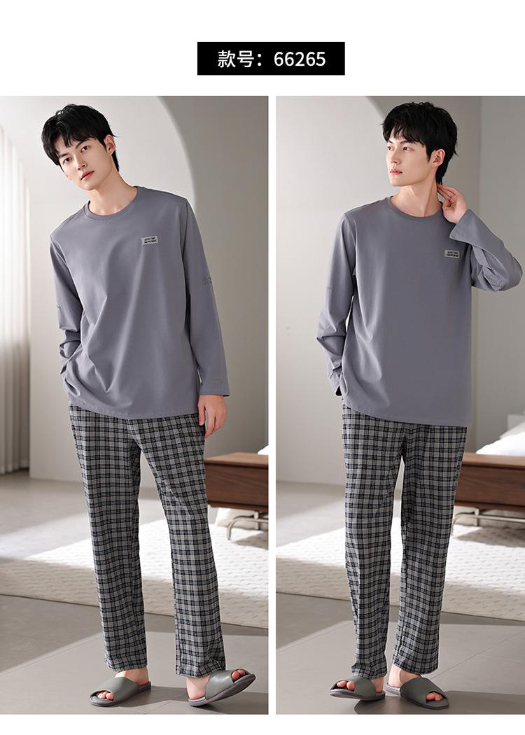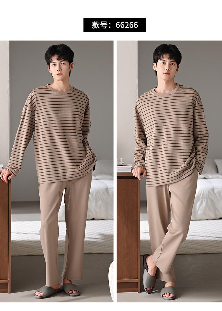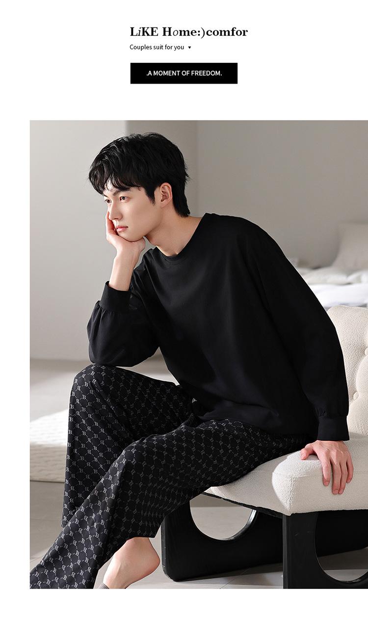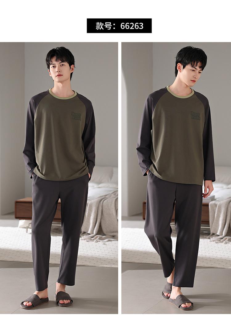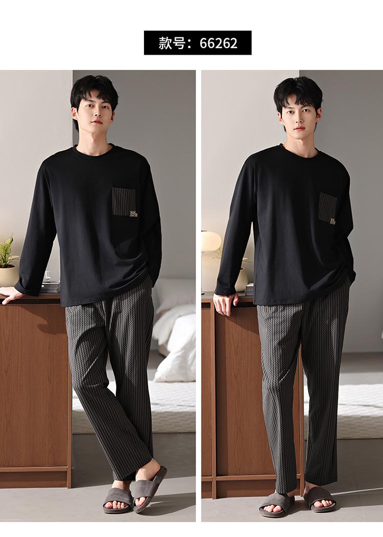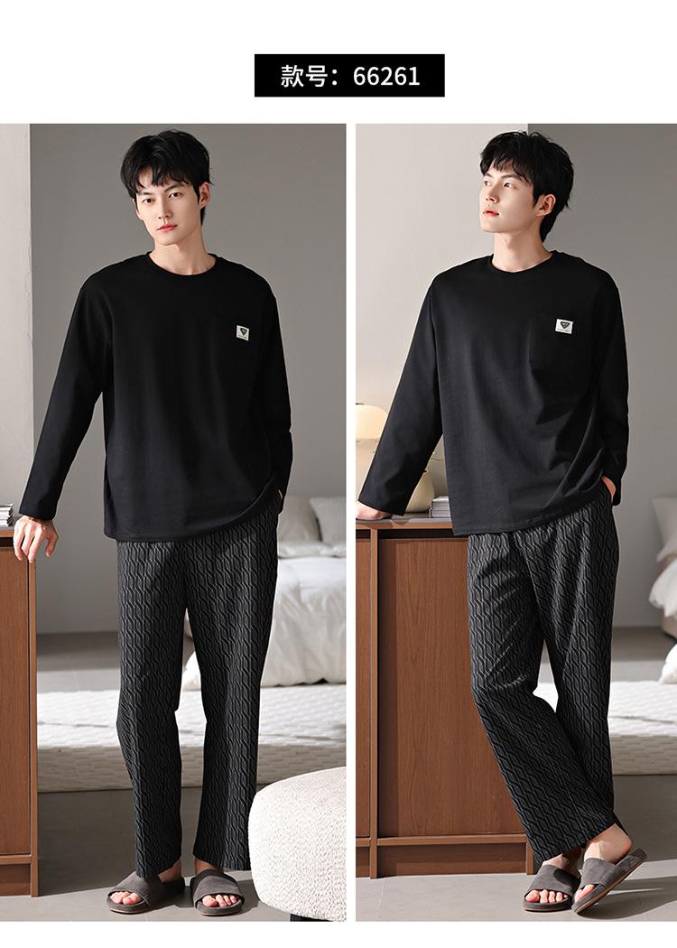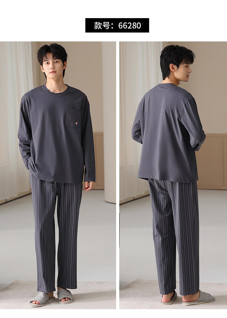 Pijamas nuevos para hombre, de algodón, de manga larga, con pantalones tipo jersey, para primavera y otoño, ropa informal sencilla para el hogar, ropa exterior.