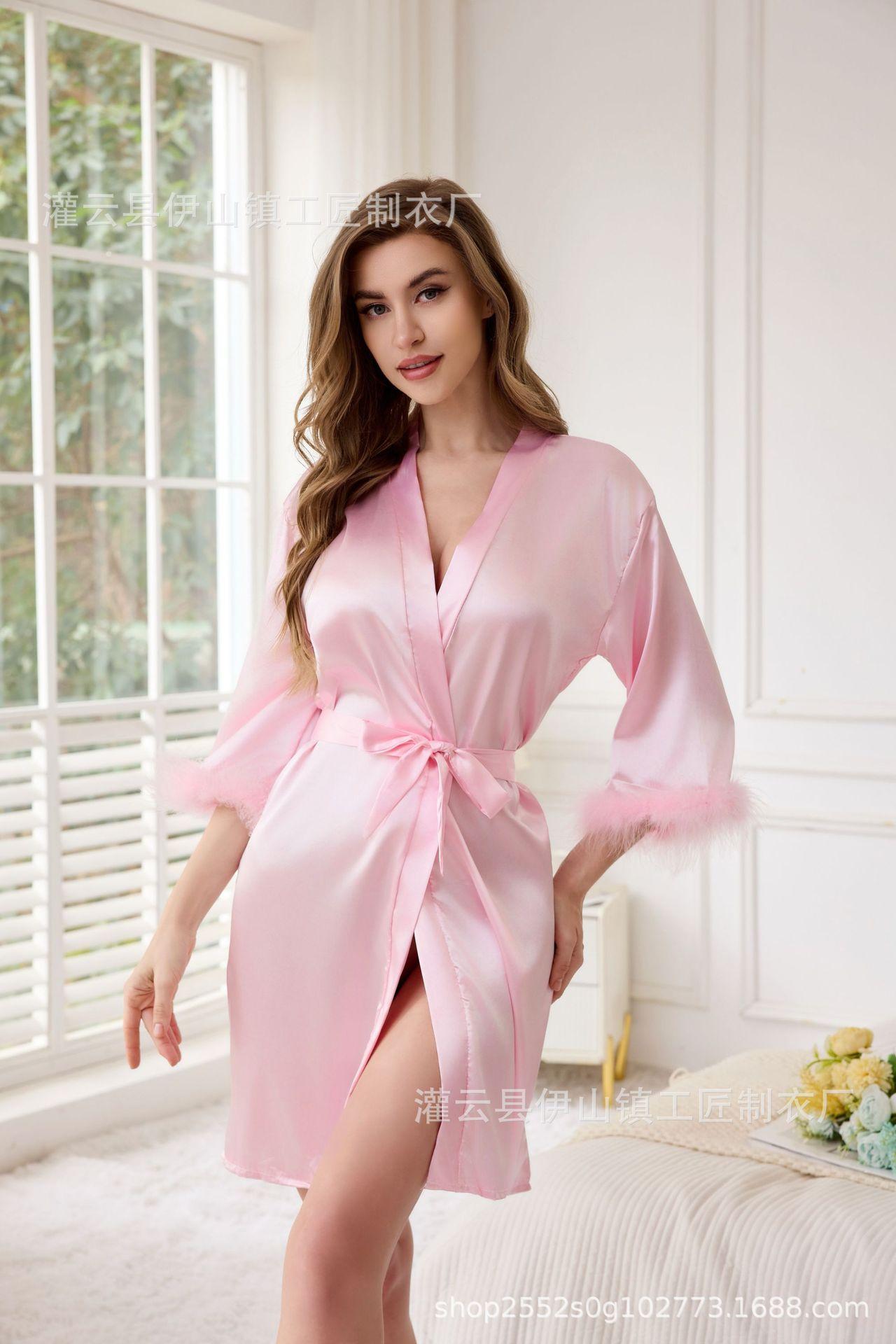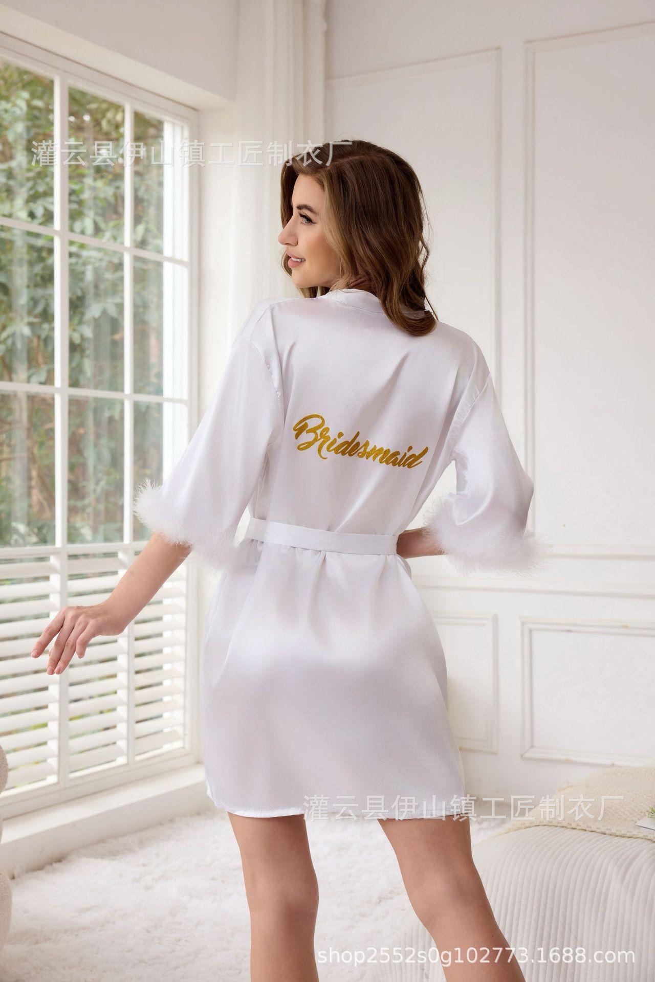 Nuevo Camisón de Satén Transfronterizo Novia Dama de Honor Mangas Peludas Cumpleaños Mejor Amiga Fiesta Pijama Bata Traje Verano