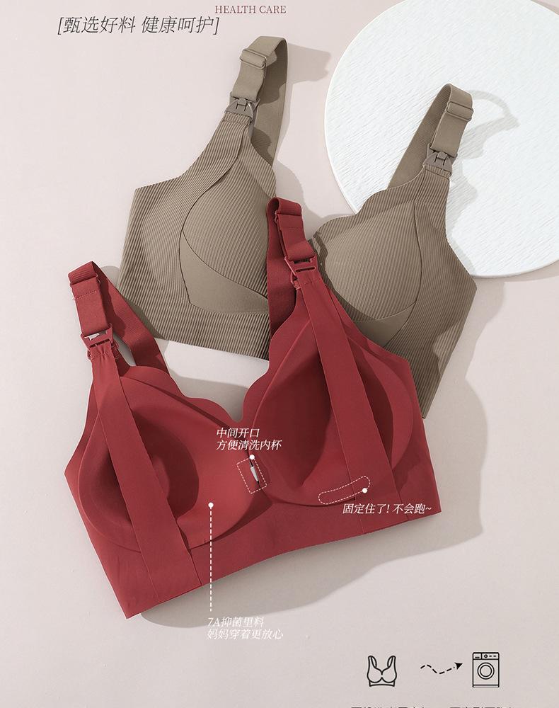 Ropa interior de lactancia de primavera, nueva, de gelatina, suave, sin aro de acero, push-up lateral, transpirable, copa fija, sujetador de lactancia.