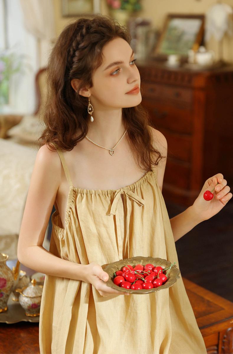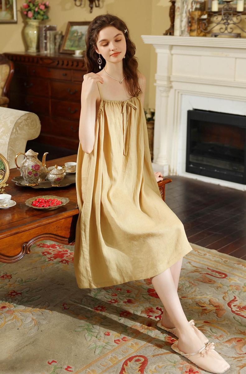 Camisón de tirantes para mujer, nuevo estilo francés de princesa dulce, suelto, talla grande, falda fina de tirantes, pijama de longitud media para el hogar