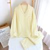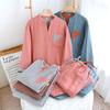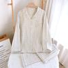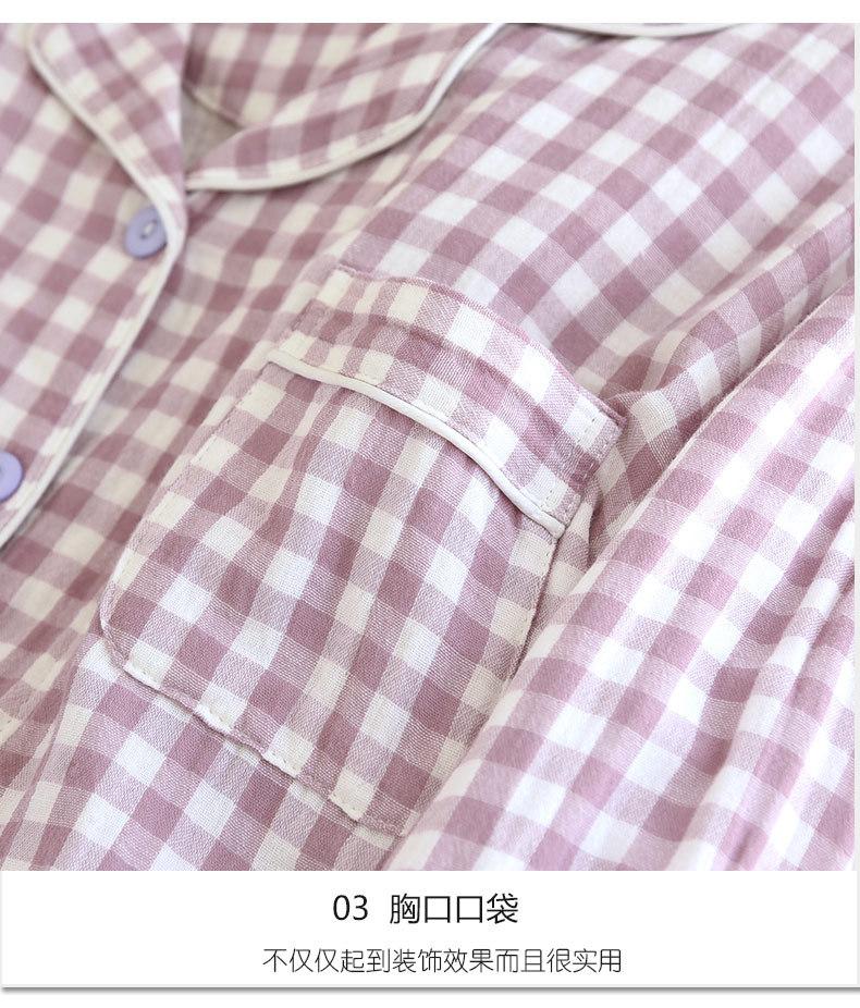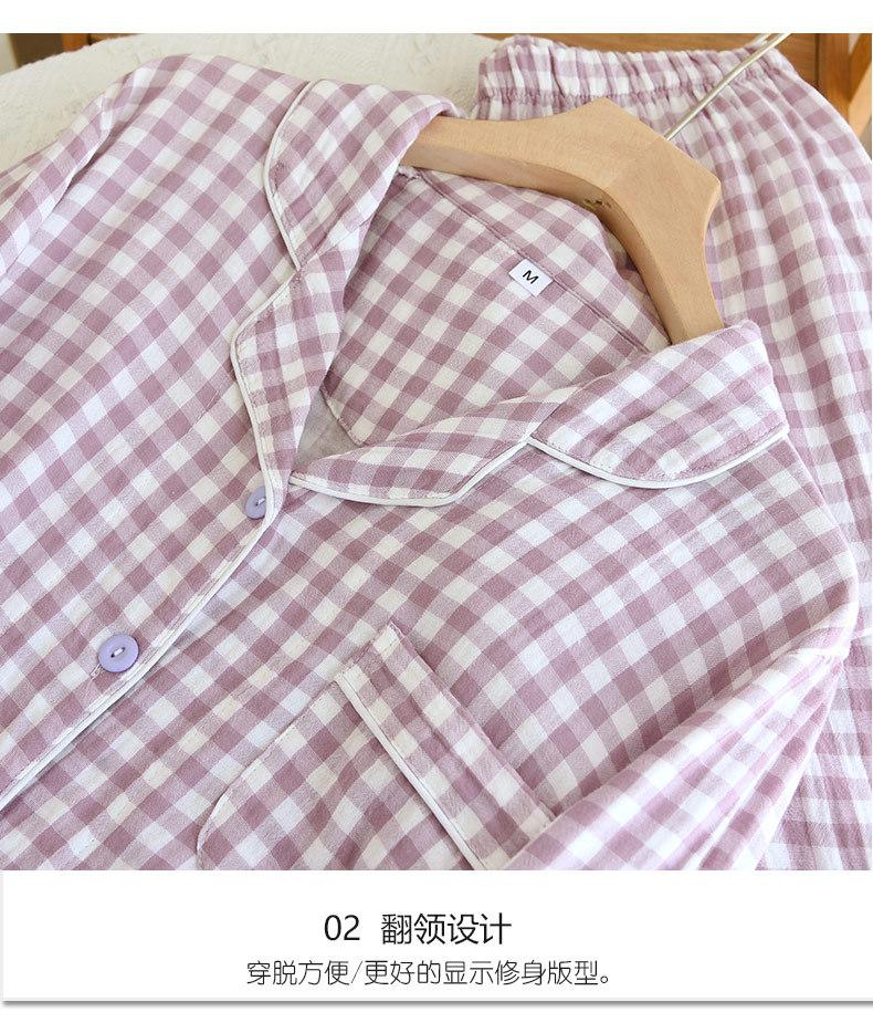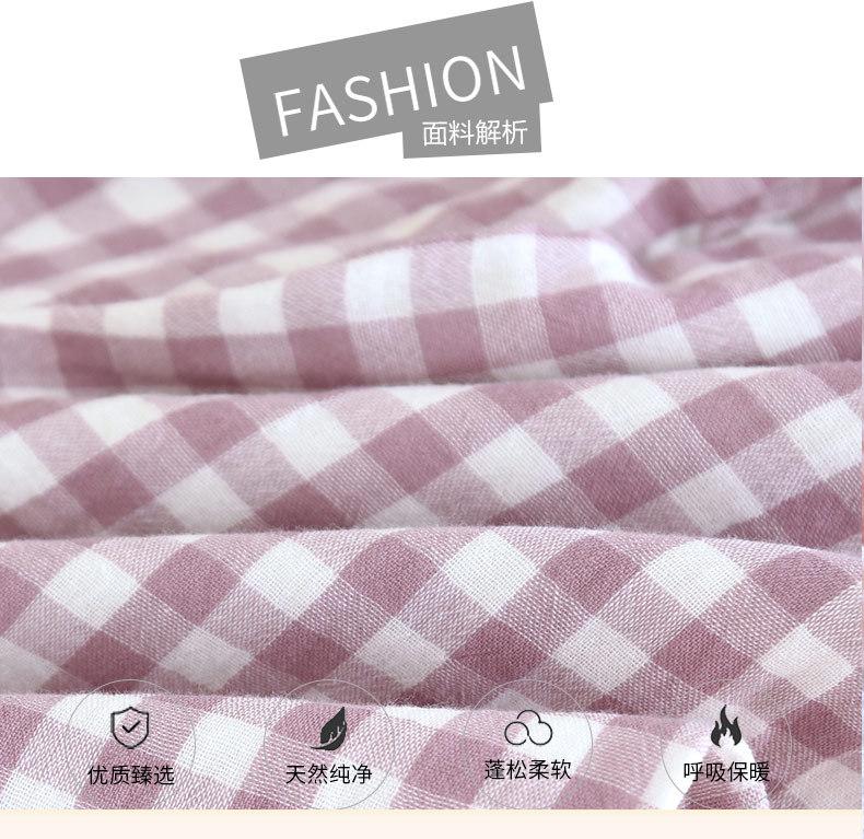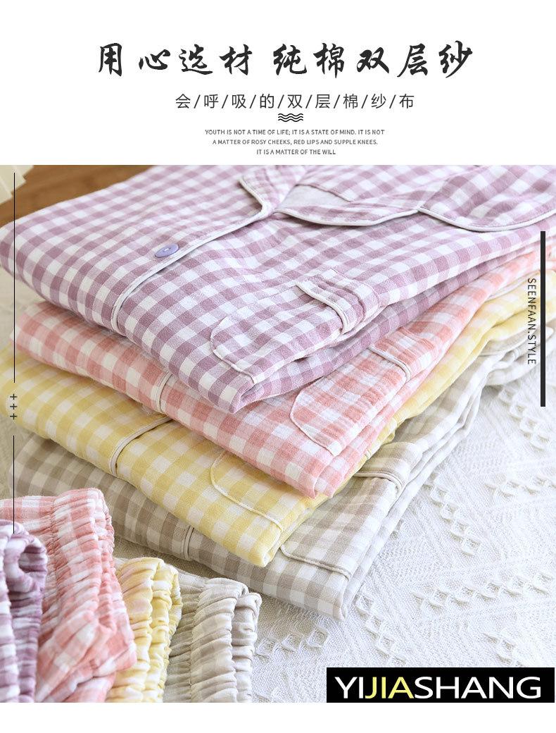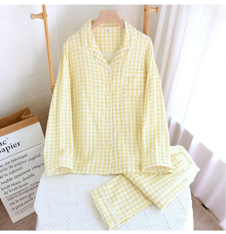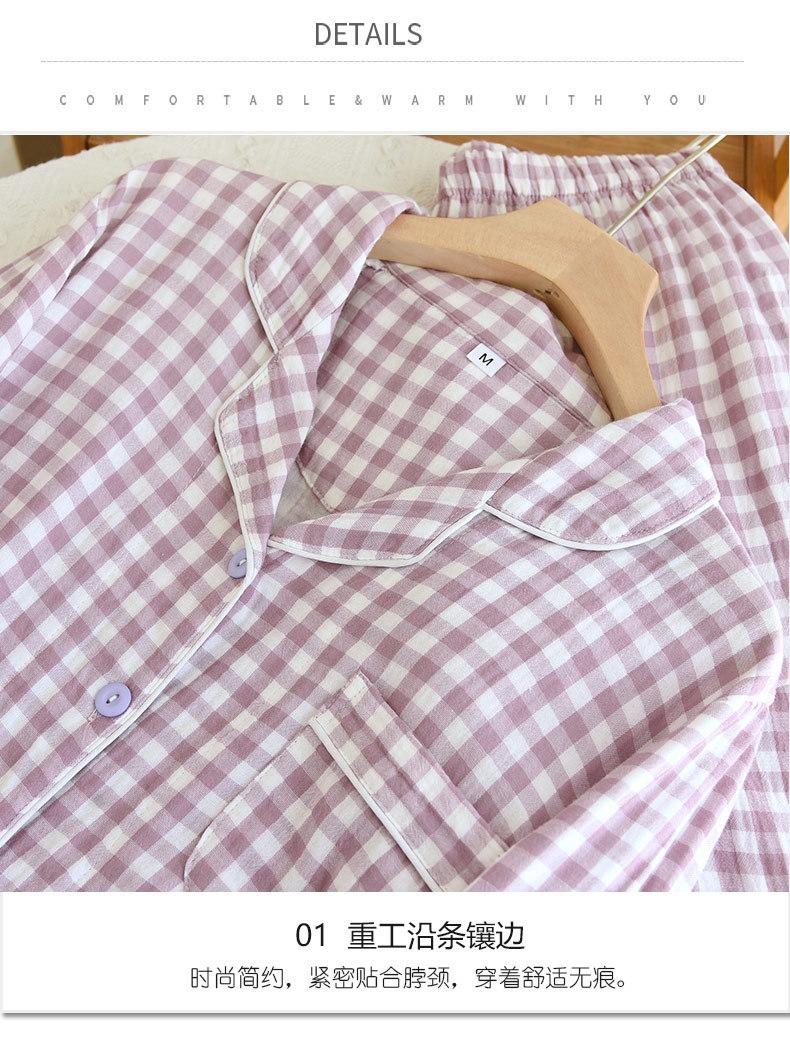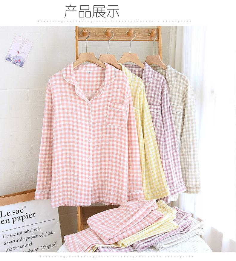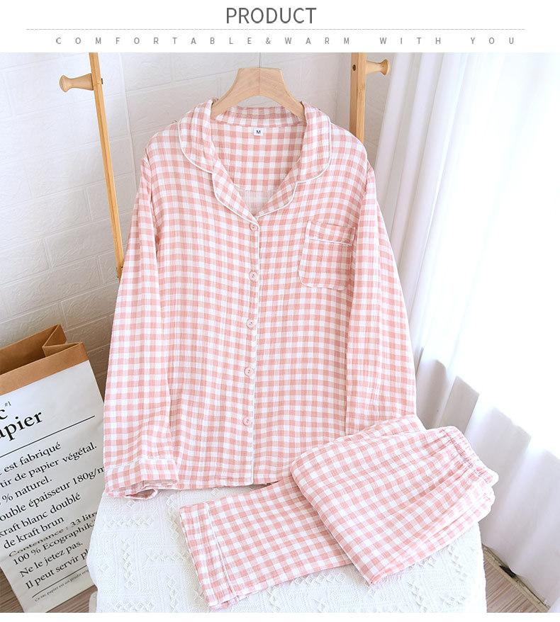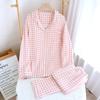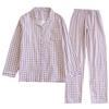 Pijama nuevo de algodón de doble capa dulce casual estilo chino estilo japonés a cuadros manga larga hilo de algodón estilo sin estampado traje de ropa para el hogar