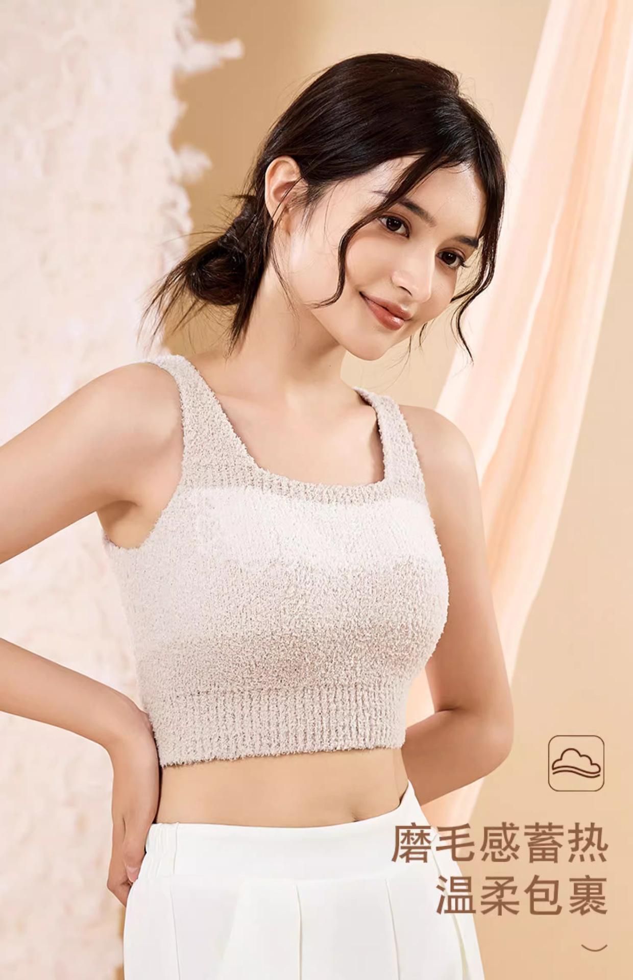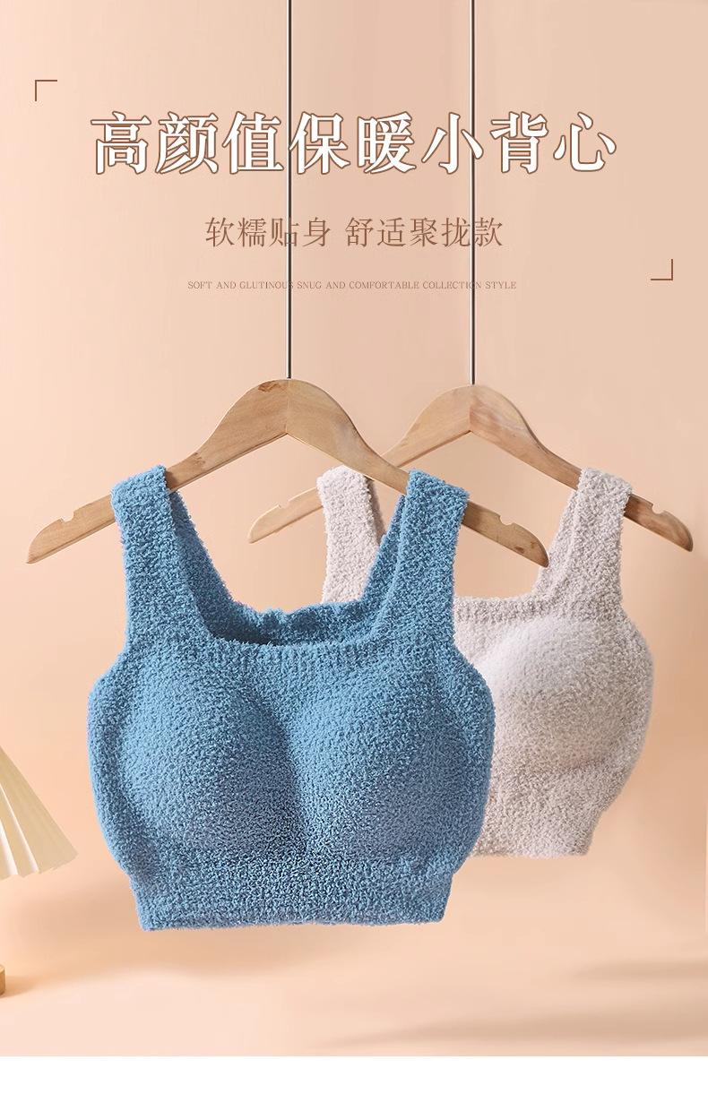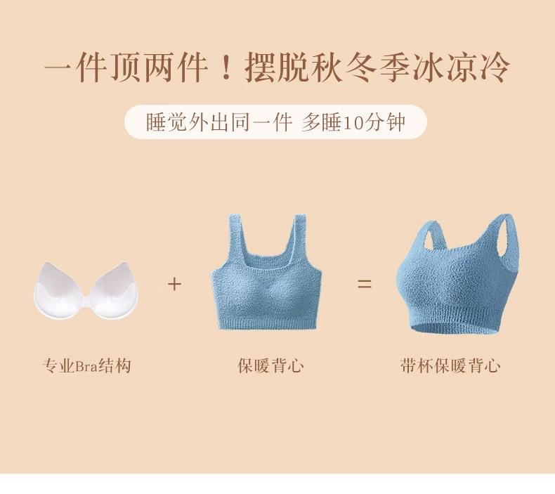 Chaleco Cálido de Piel de Cordero Longsha Ropa Interior para Mujer Otoño e Invierno con Almohadilla en el Pecho Forrado de Vellón Grueso Hermosa Espalda Camiseta Interior Térmica