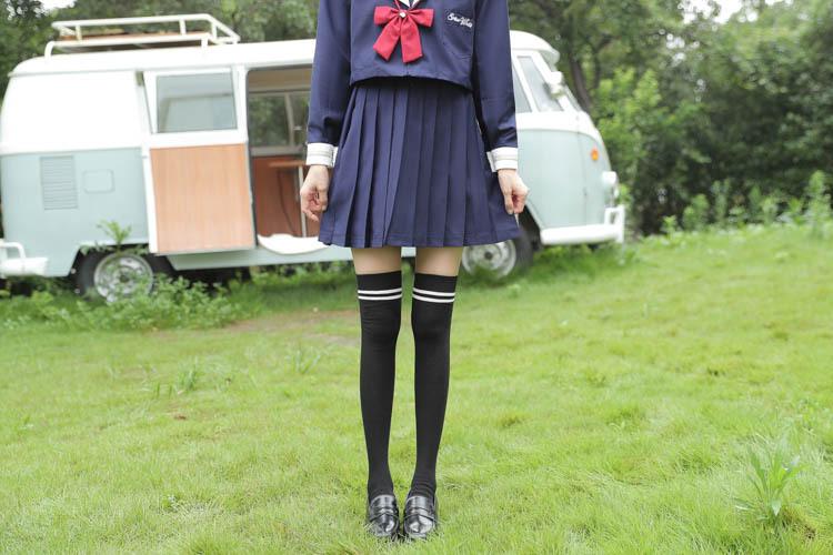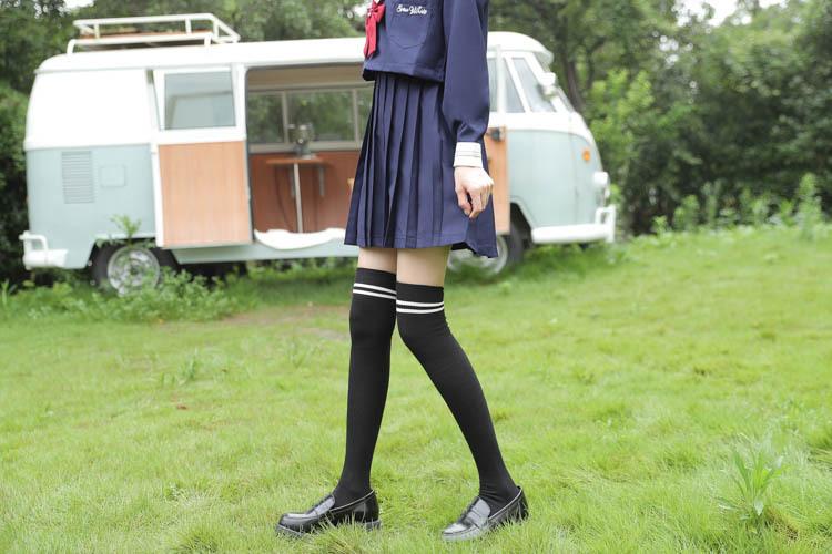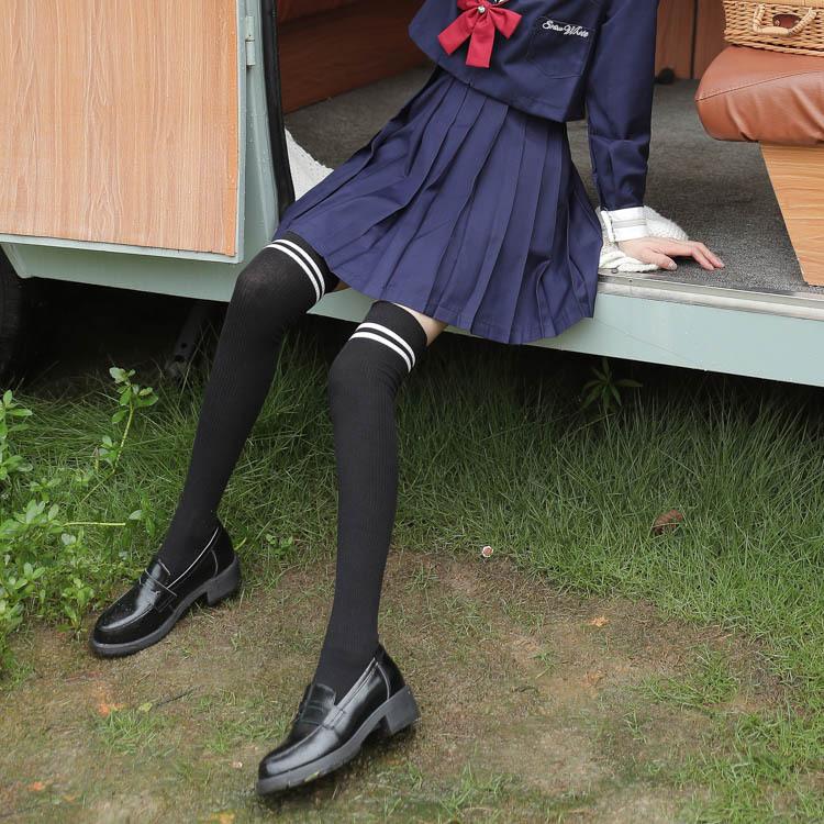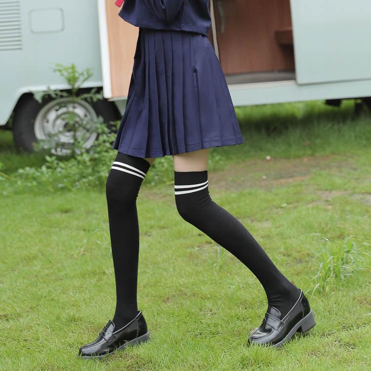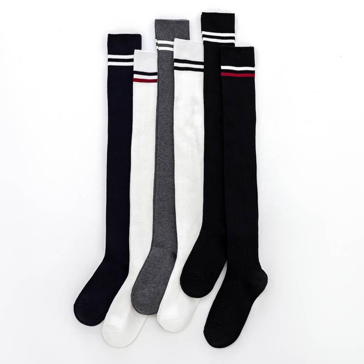Nombre del producto:3022Calcetines hasta la rodilla finos de doble aguja con rayas verticales de dos barras
