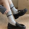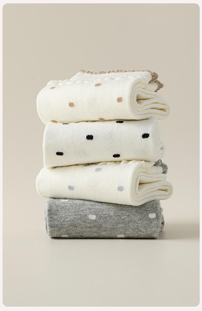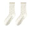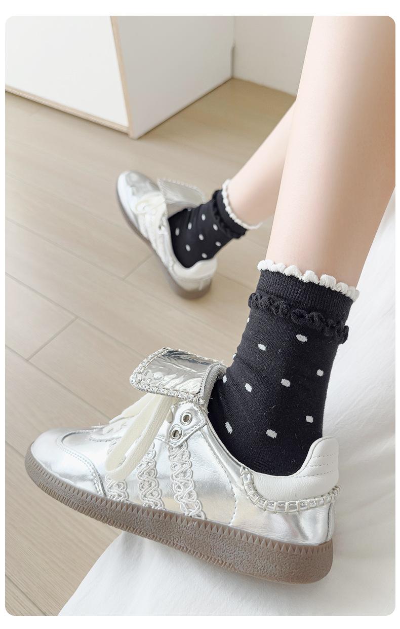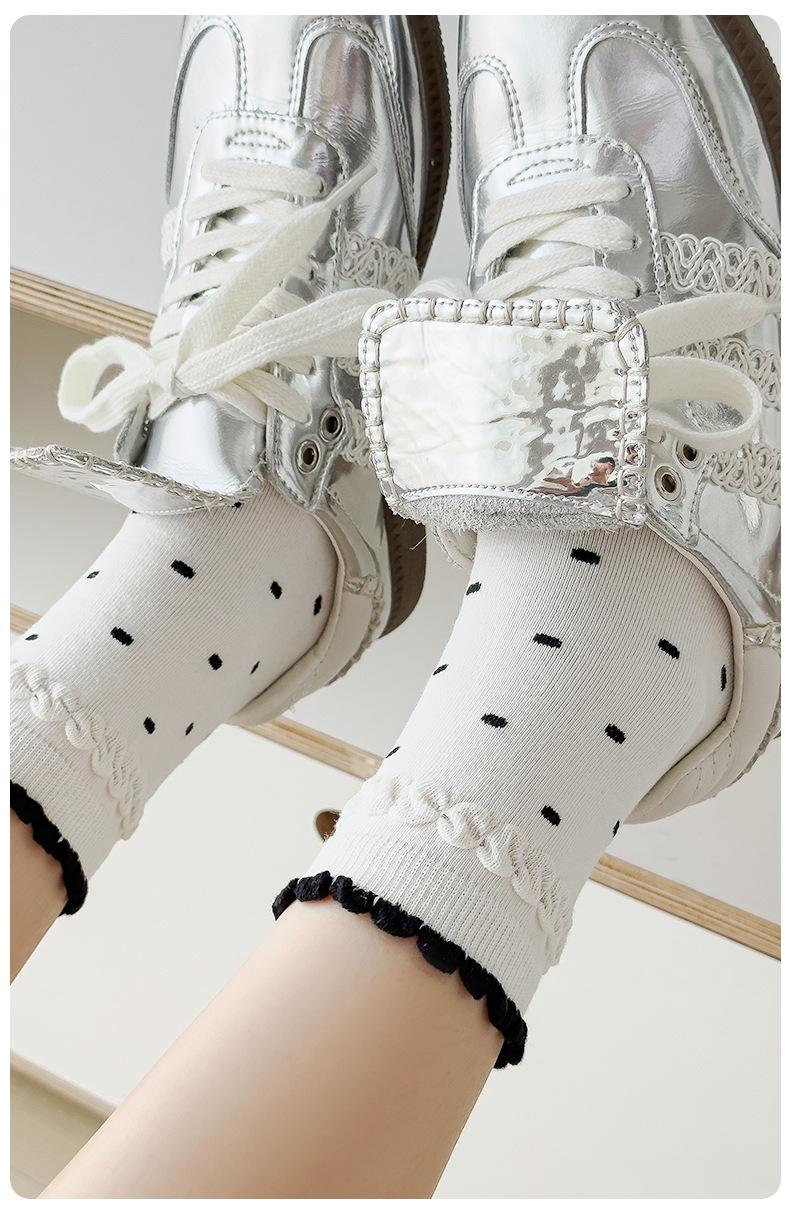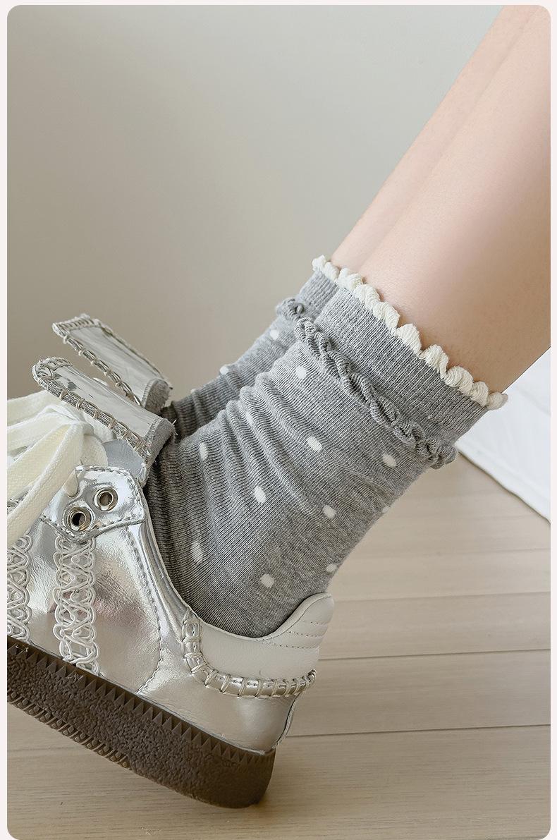 Calcetines de encaje de otoño para niños, primavera y otoño, calcetines de longitud media, bonitos calcetines japoneses de lunares apilados, calcetines de algodón para estudiantes y mujeres.