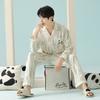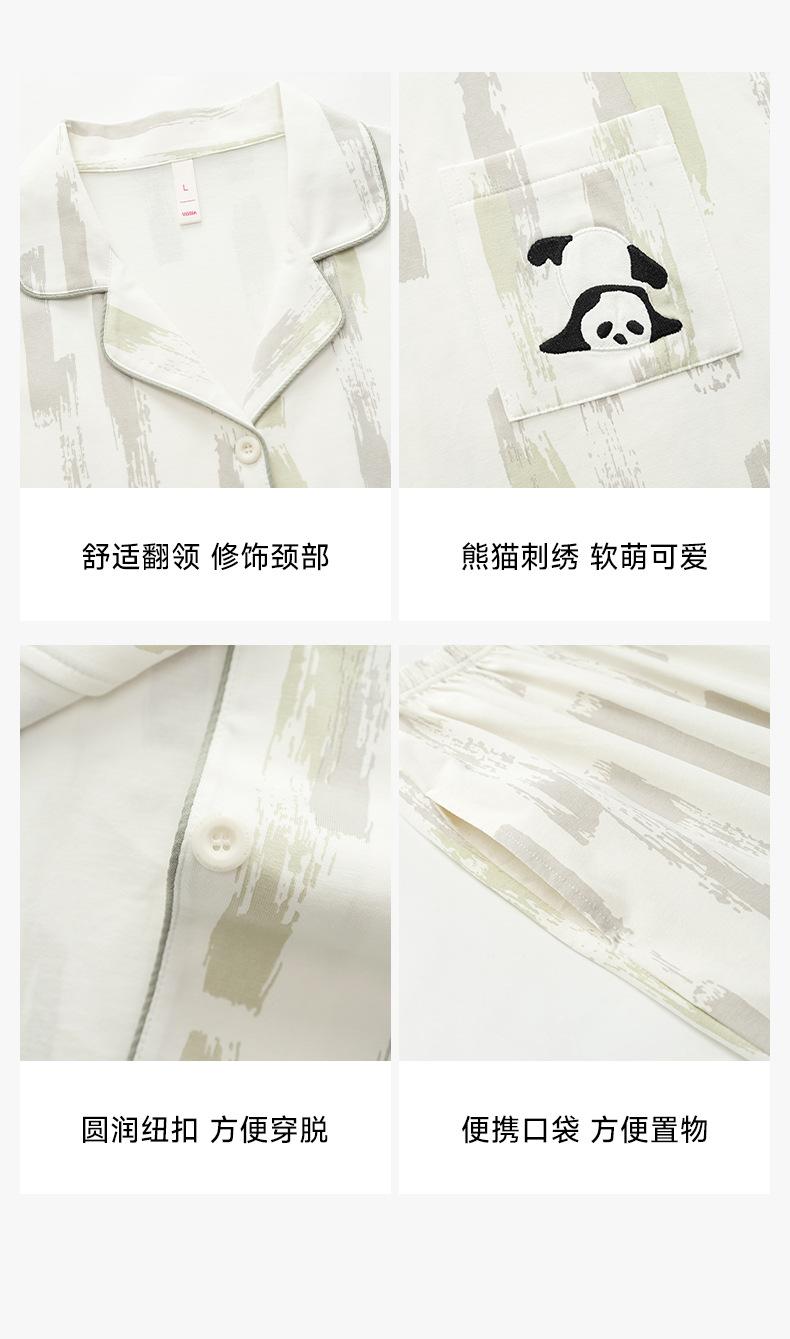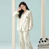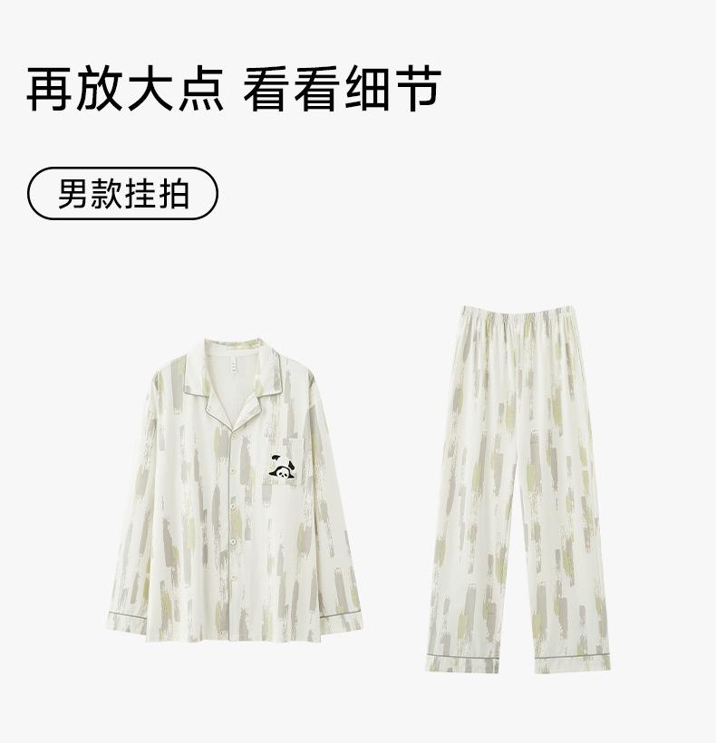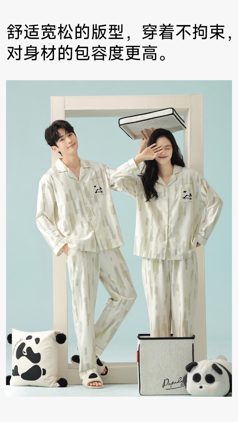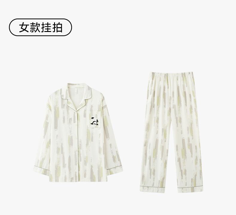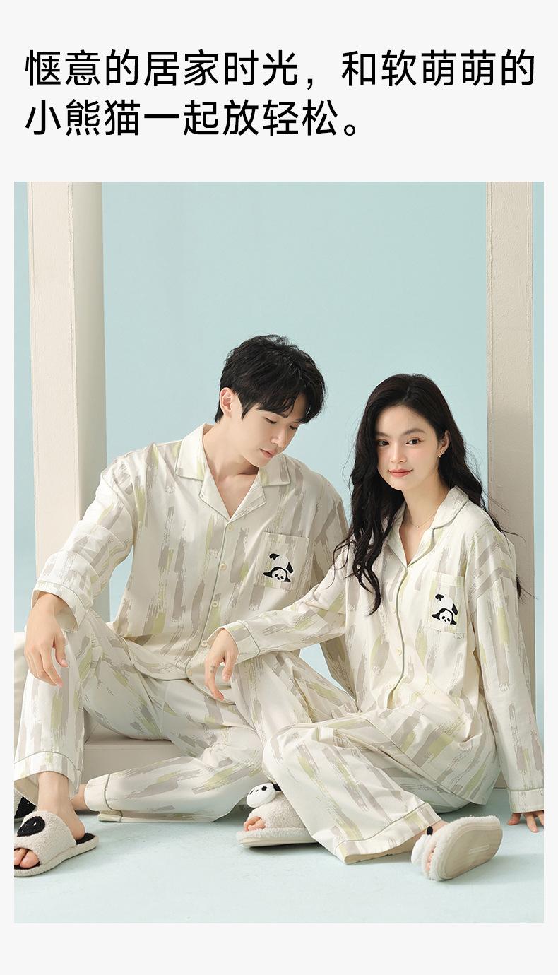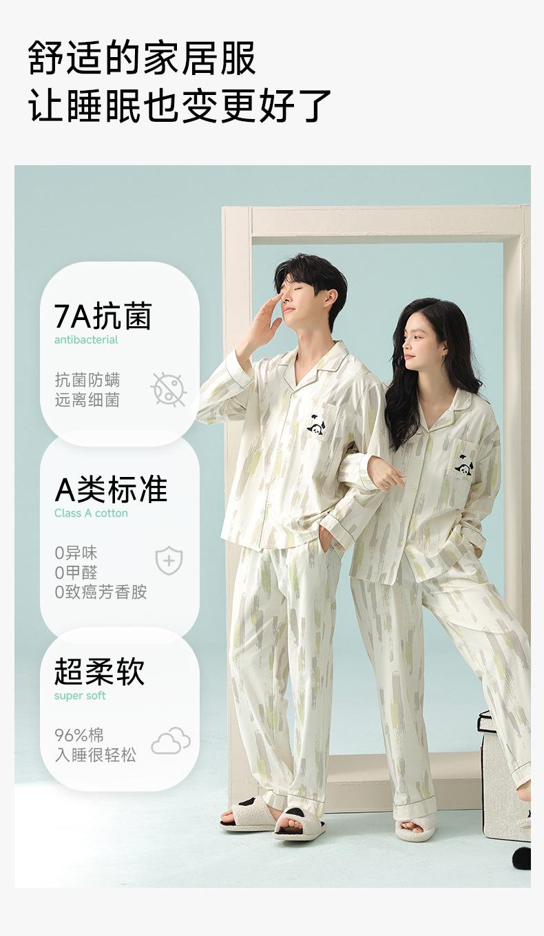 [Algodón Antibacteriano] Pijama Nuevo de Pareja de Primavera y Verano Algodón Puro Manga Larga Bordado de Panda Algodón para Jalar Ropa para el Hogar