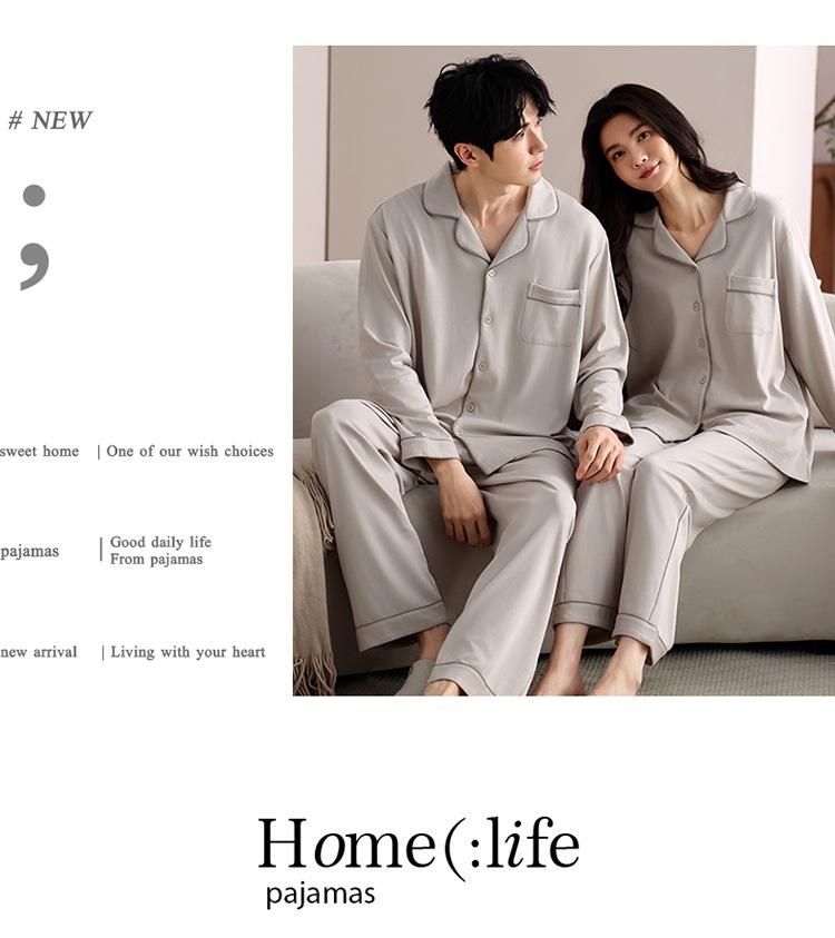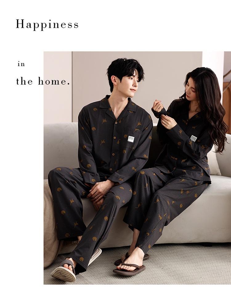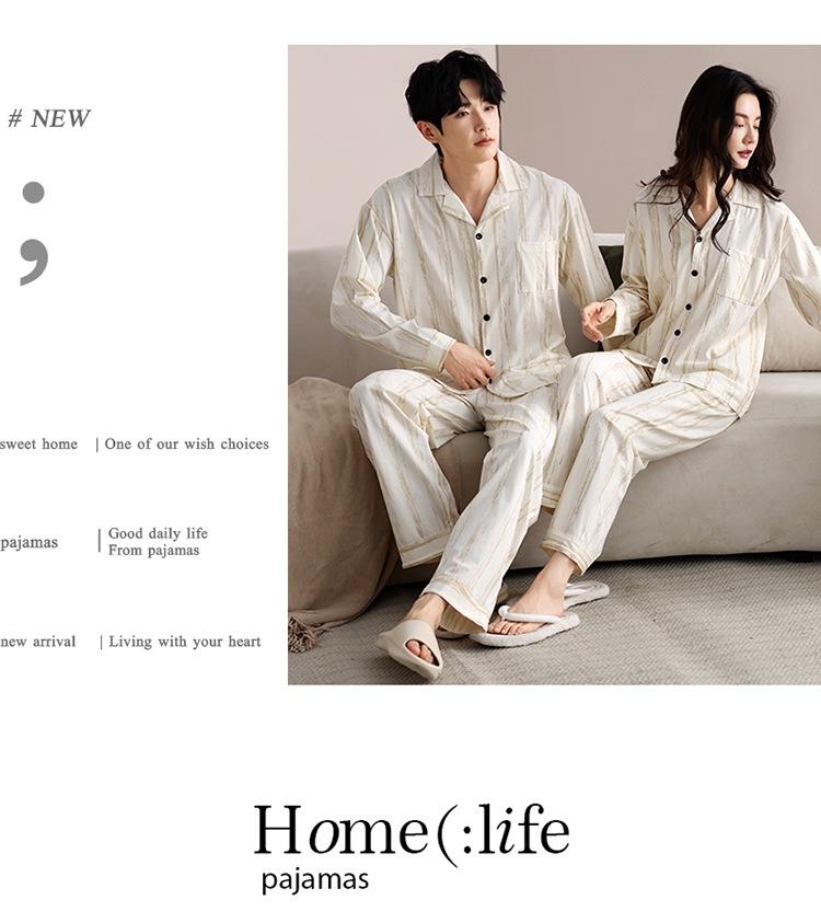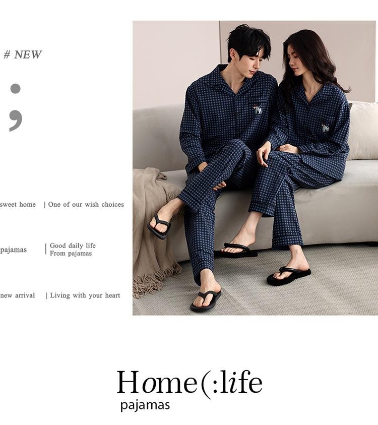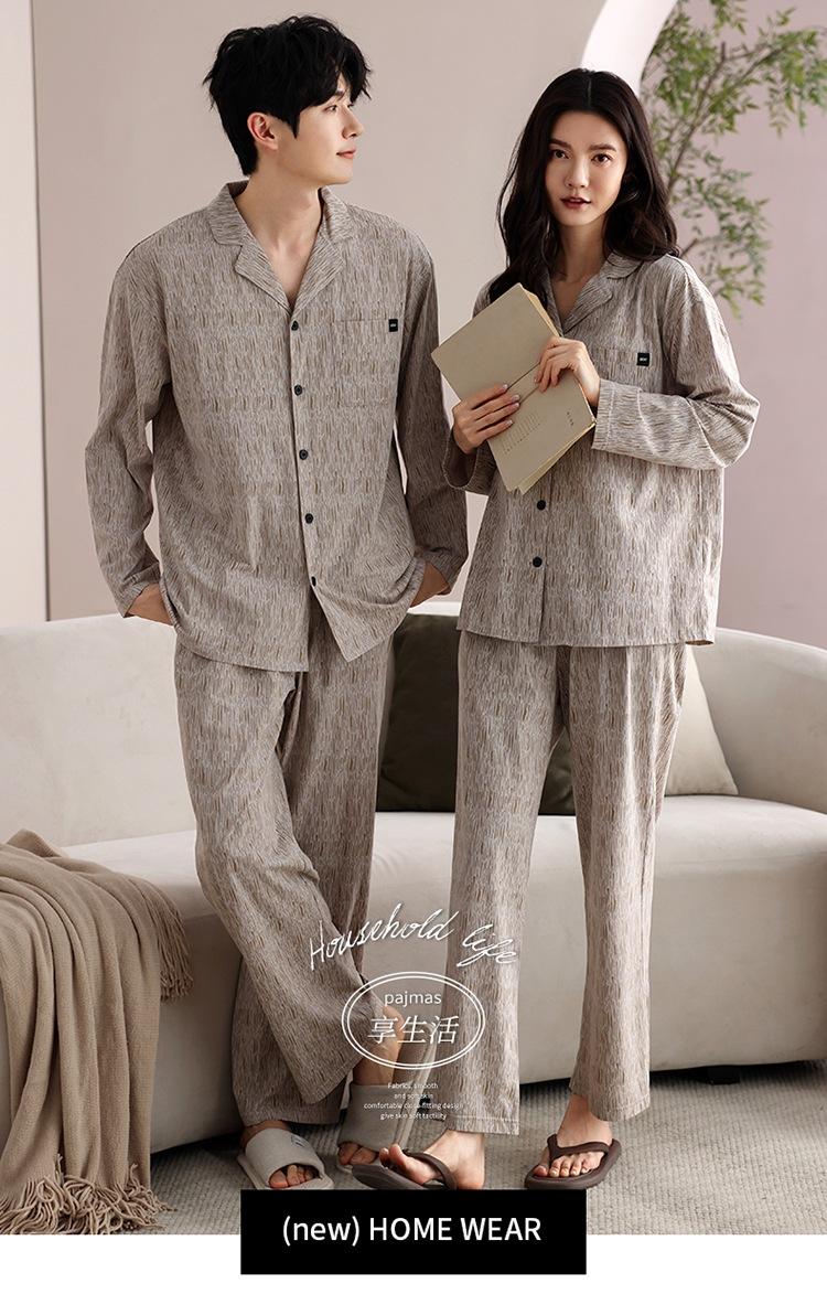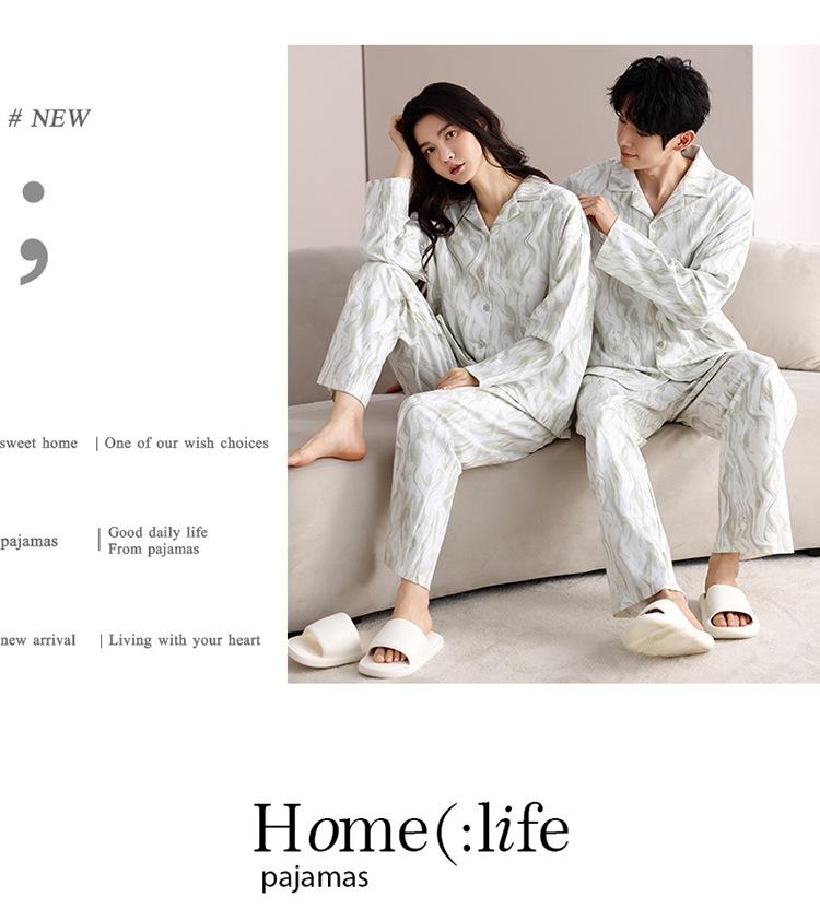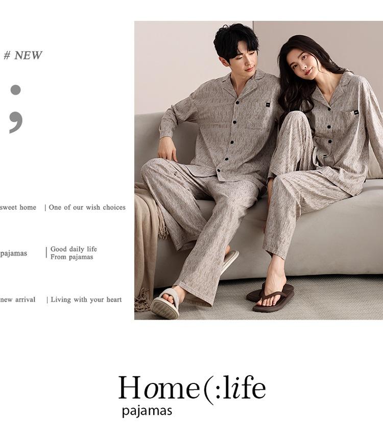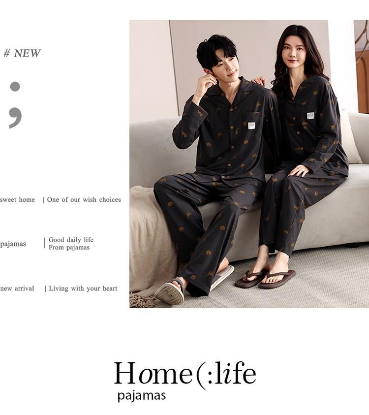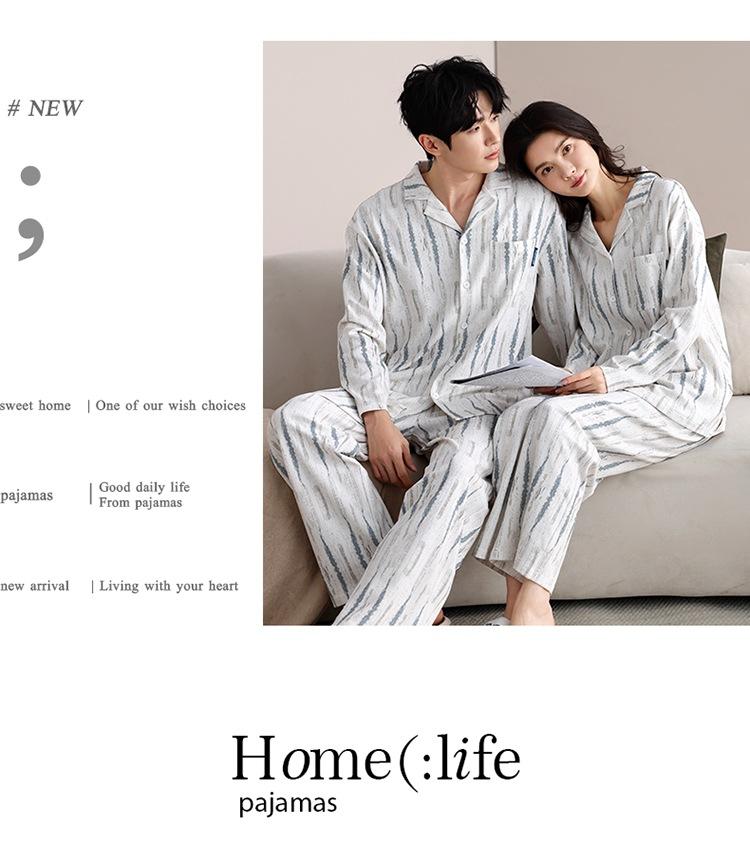 [Tienda] Ropa de hogar para mujer nueva de primavera y otoño (Algodón) Conjunto de pijama de manga larga para hombre, dos piezas, para pareja