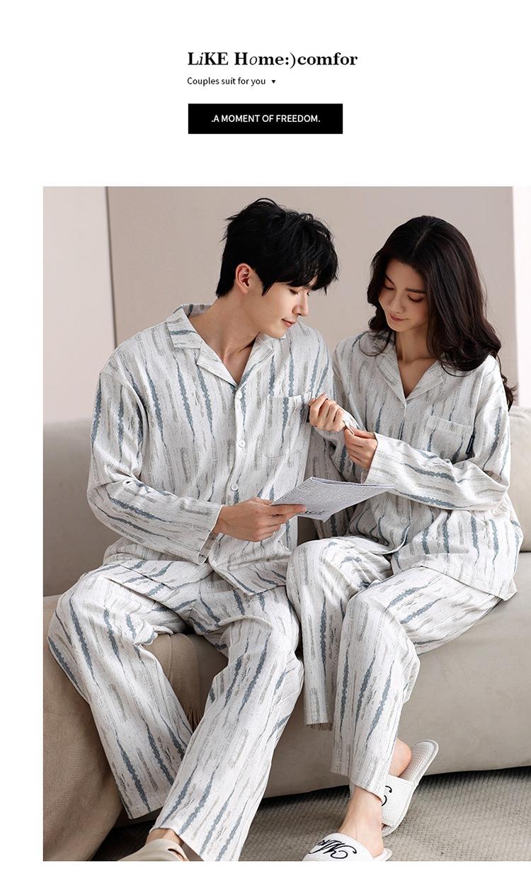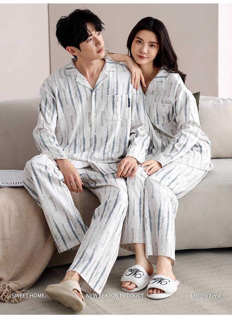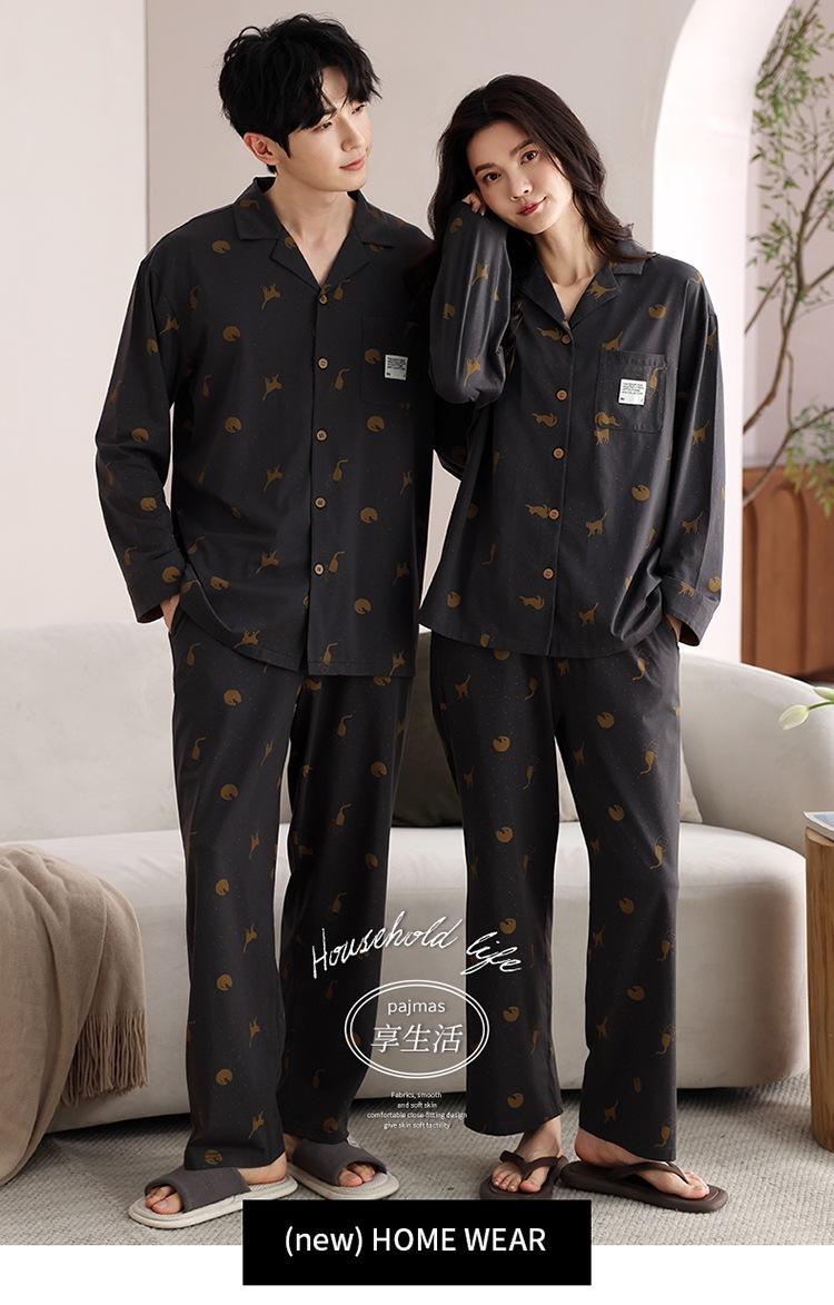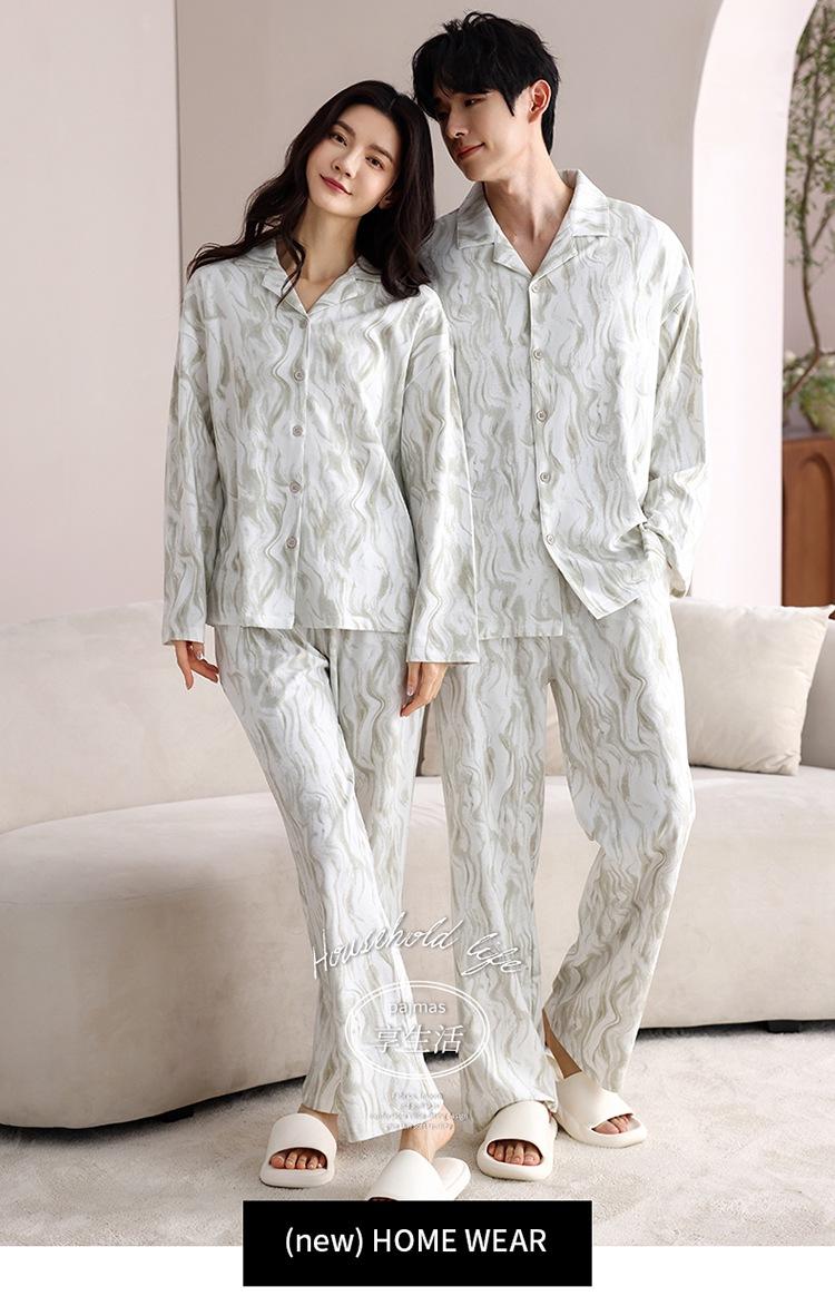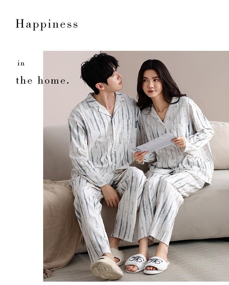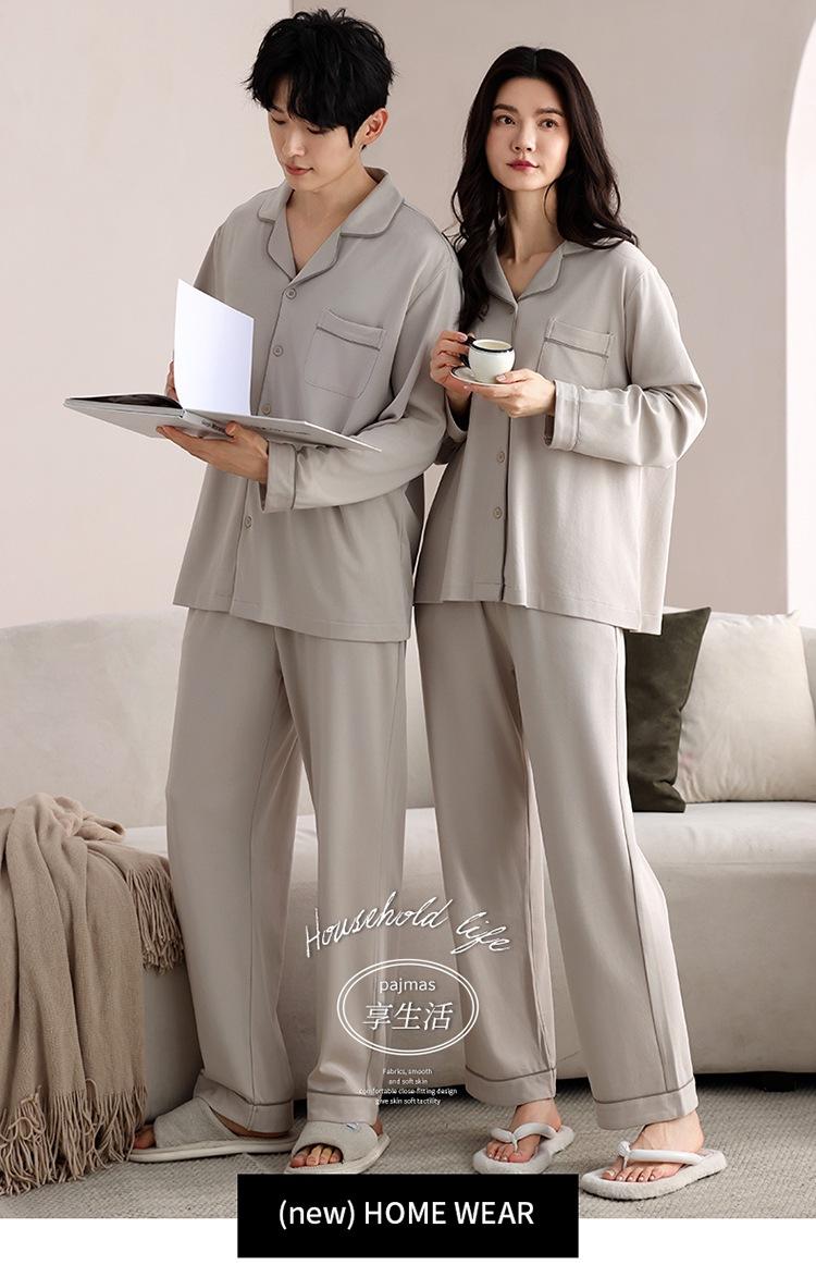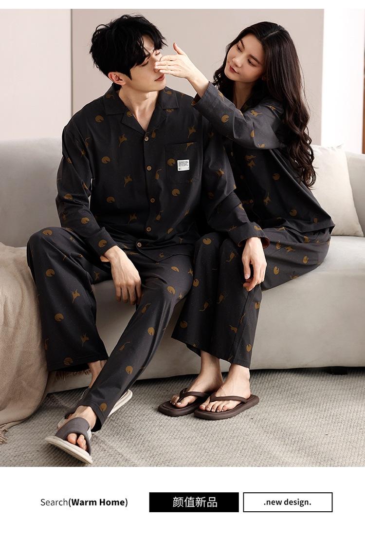[Tienda] Ropa de hogar para mujer nueva de primavera y otoño (Algodón) Conjunto de pijama de manga larga para hombre, dos piezas, para pareja