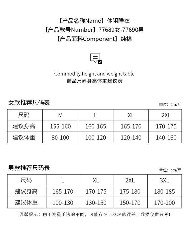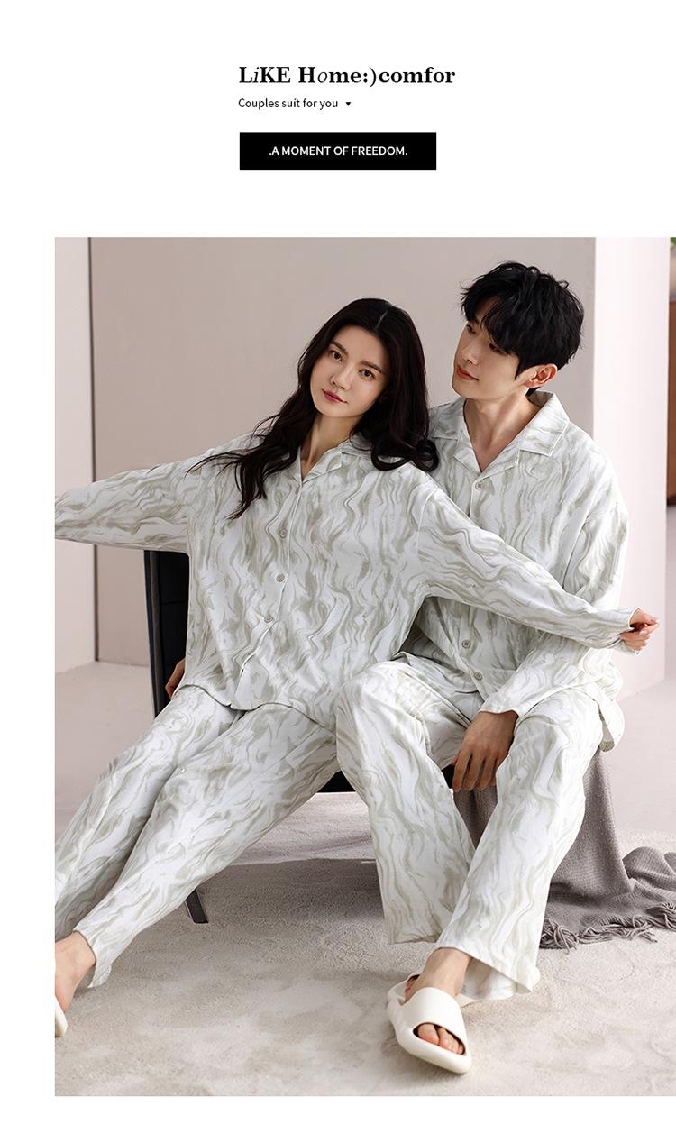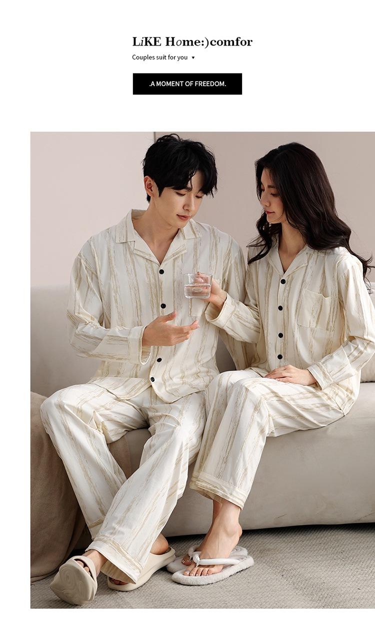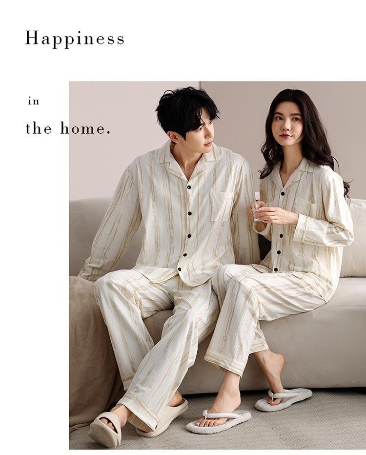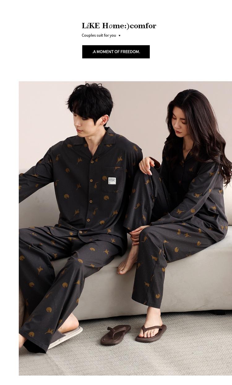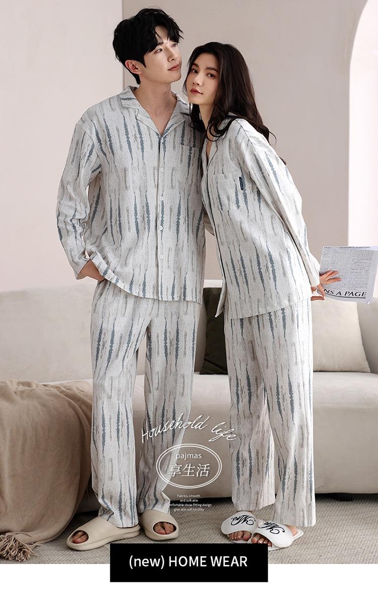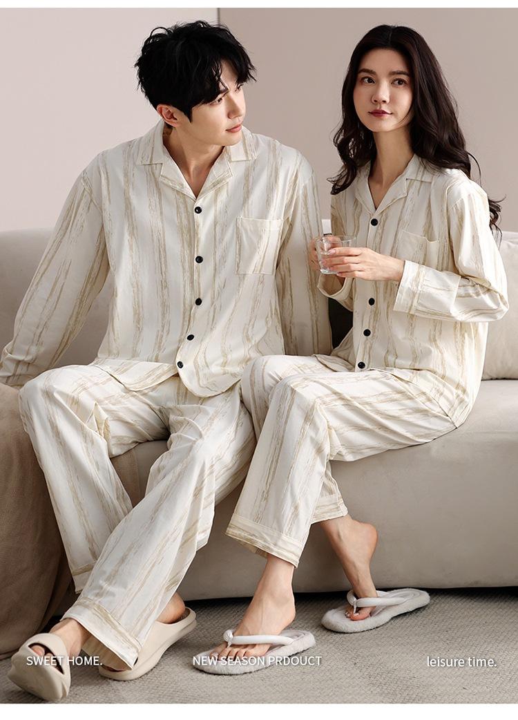 [Tienda] Ropa de hogar para mujer nueva de primavera y otoño (Algodón) Conjunto de pijama de manga larga para hombre, dos piezas, para pareja
