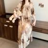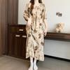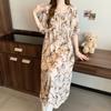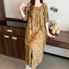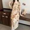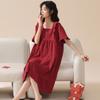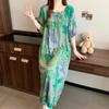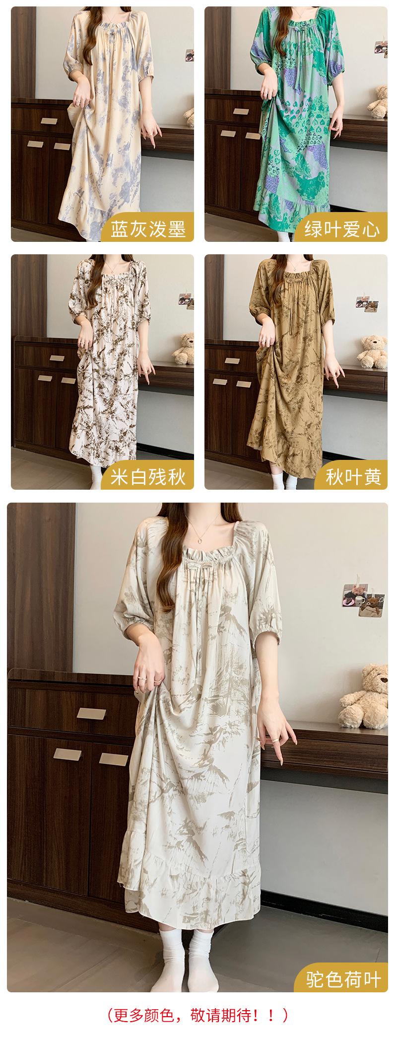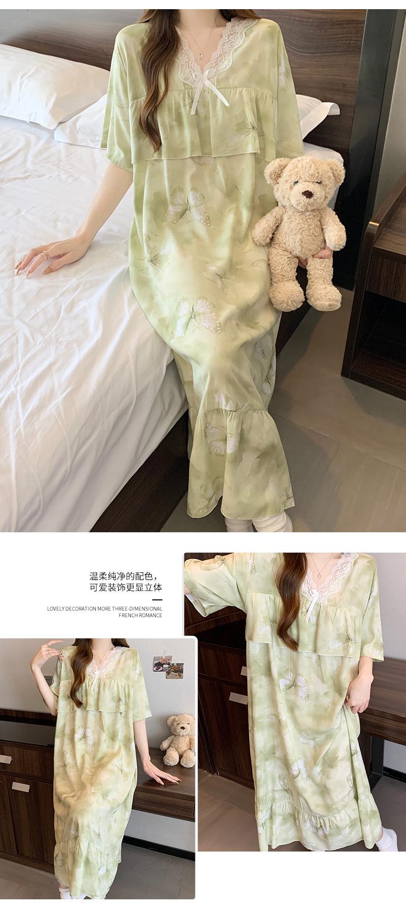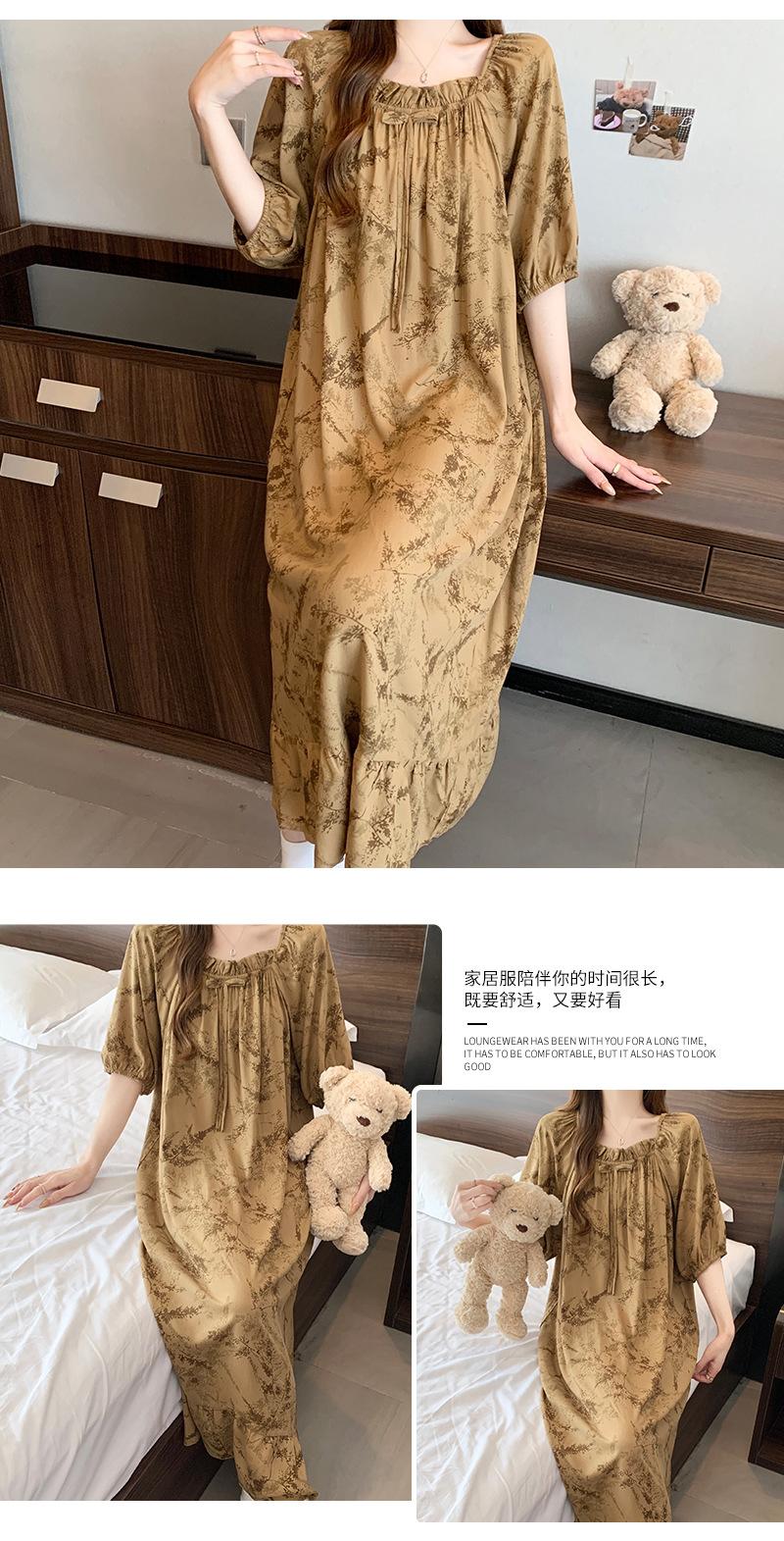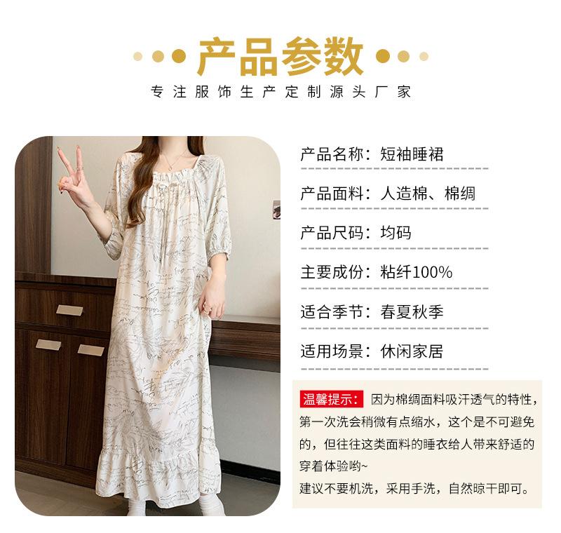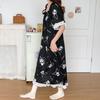 Pijama de Falda Larga de Verano, Vestido Hueco Estampado de Algodón Artificial, Camisón Estilo Hada Adelgazante para Mujer, Holgado y se Puede Usar Afuera