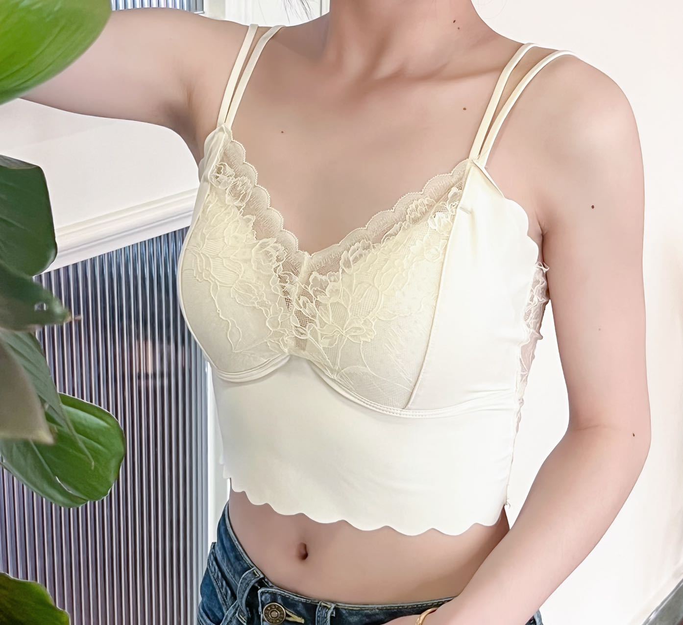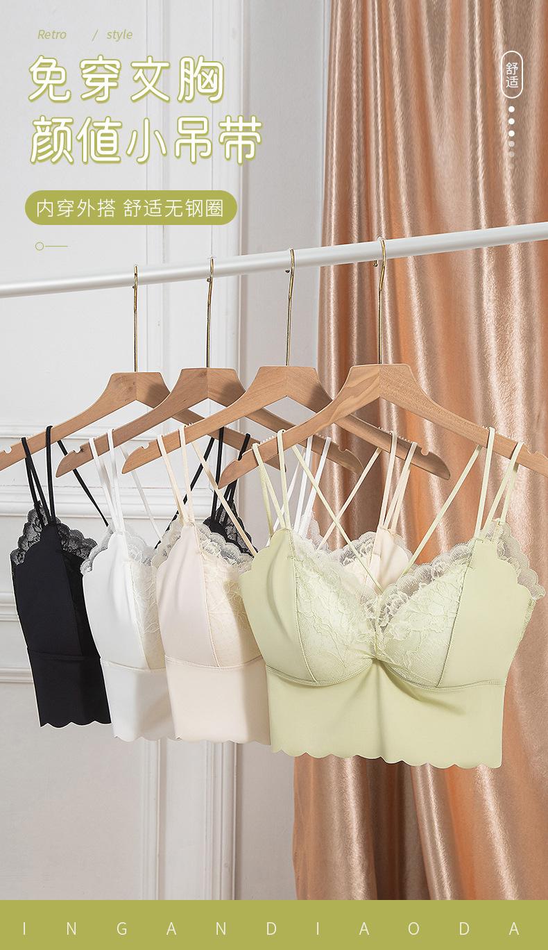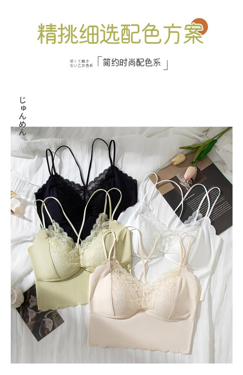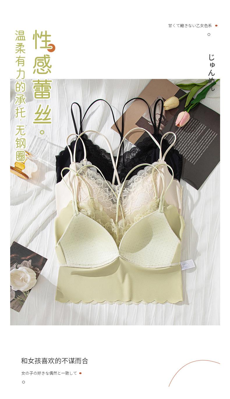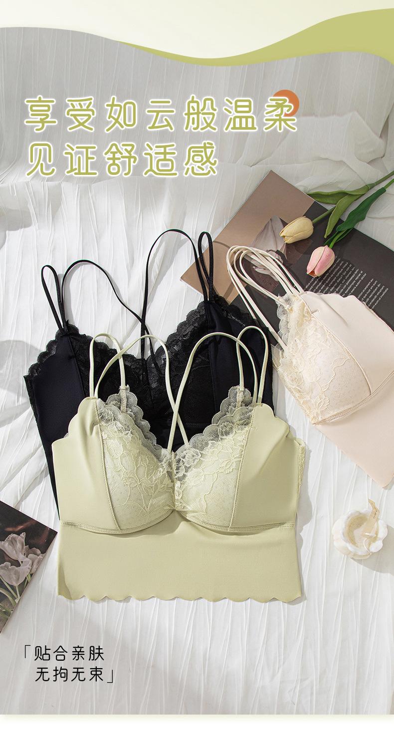Ropa interior de una pieza con copa fija, estilo francés, de encaje, sexy, con tirantes cruzados, sin aros de acero, para mujer.