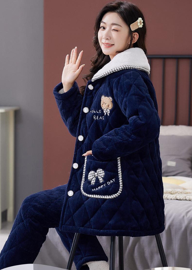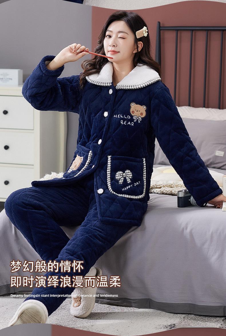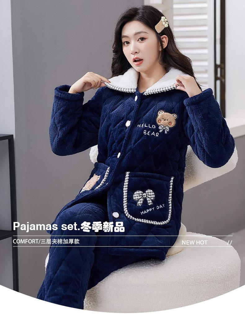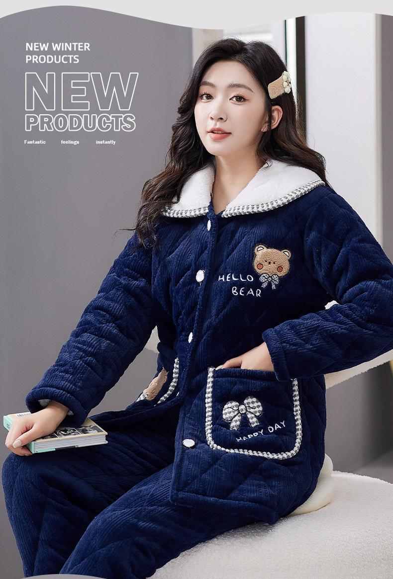 Pijama de Invierno para Mujer con Forro Polar, Grueso, Acolchado de Tres Capas, Traje con Solapa, Lindo Dibujo Animado, Felpa Coral, Ropa para el Hogar