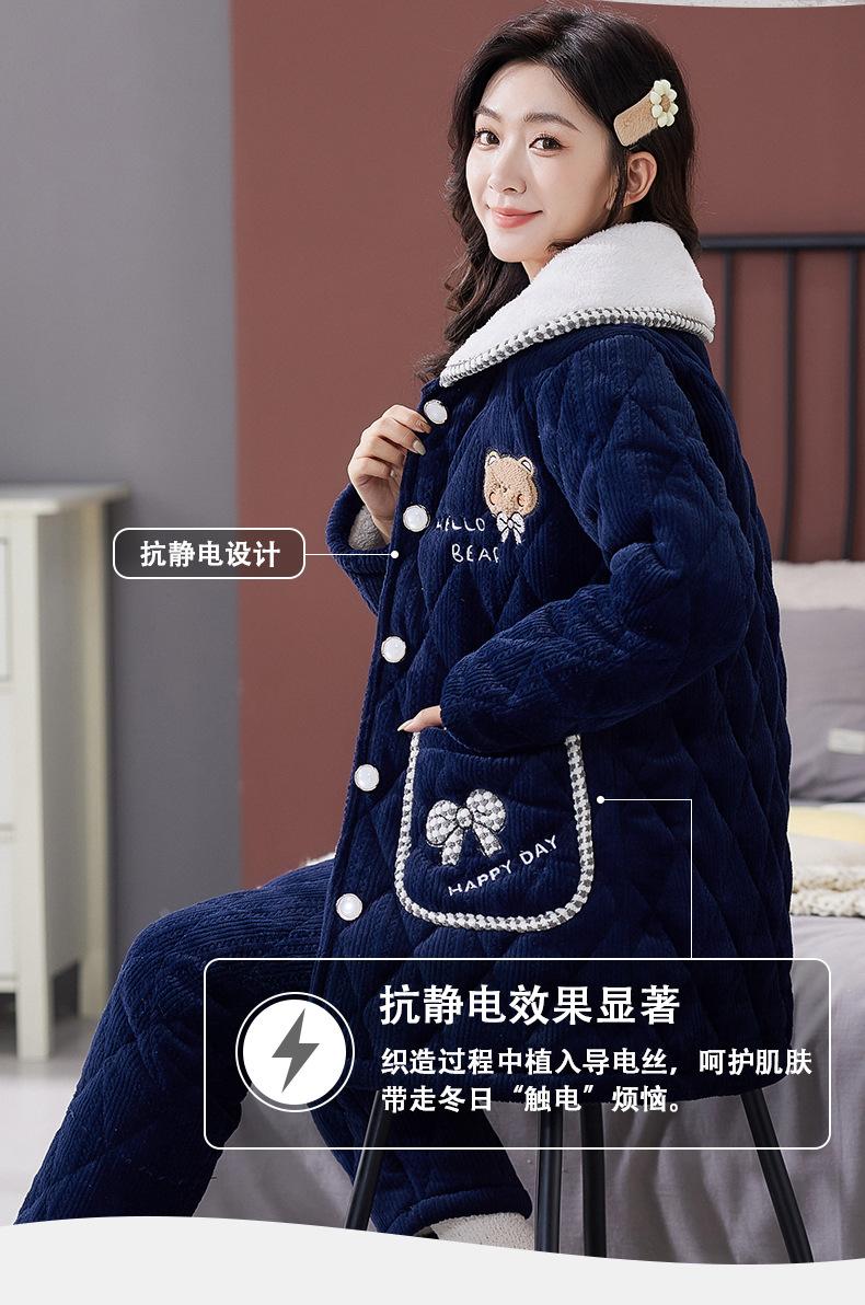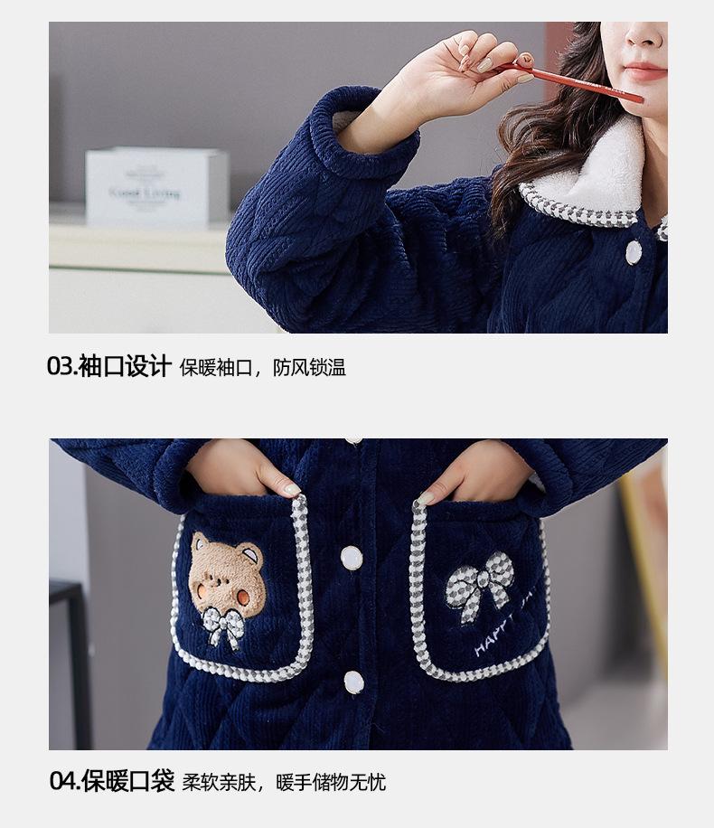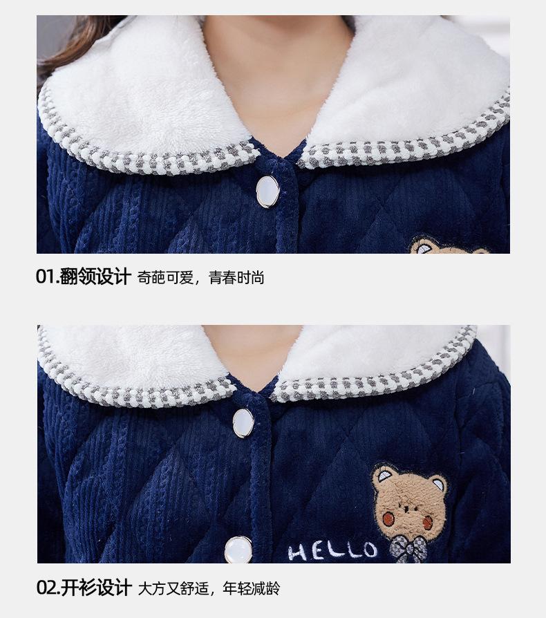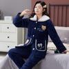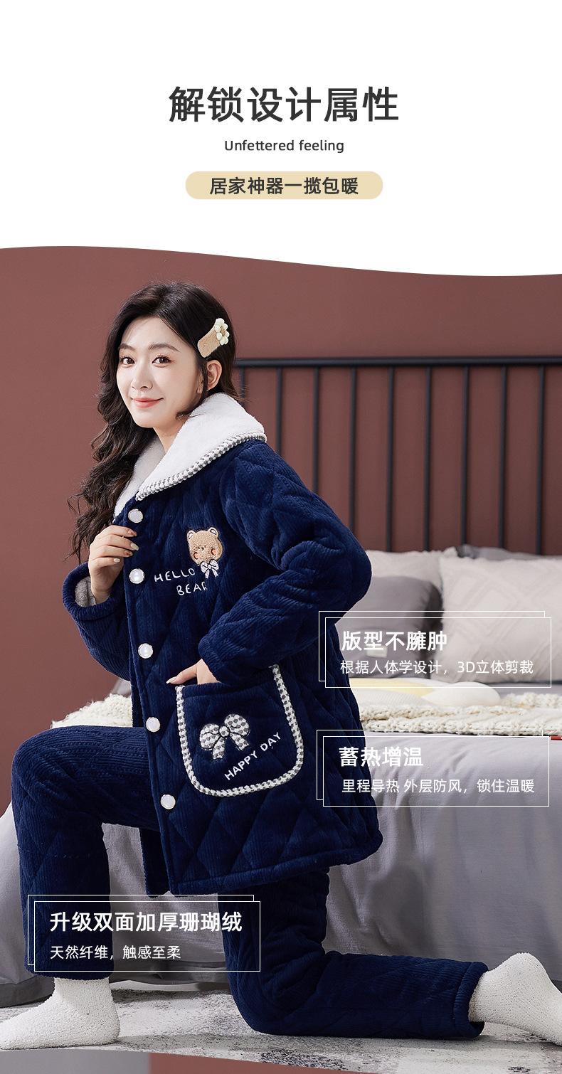 Pijama de Invierno para Mujer con Forro Polar, Grueso, Acolchado de Tres Capas, Traje con Solapa, Lindo Dibujo Animado, Felpa Coral, Ropa para el Hogar