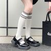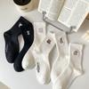 Calcetines de Otoño e Invierno Grises Bordados con Flores Pequeñas de Doble Aguja para Mujer hasta la Media Pantorrilla Calcetines de Color Puro Calcetines de Algodón de Rizo Estilo Preppy Coreano
