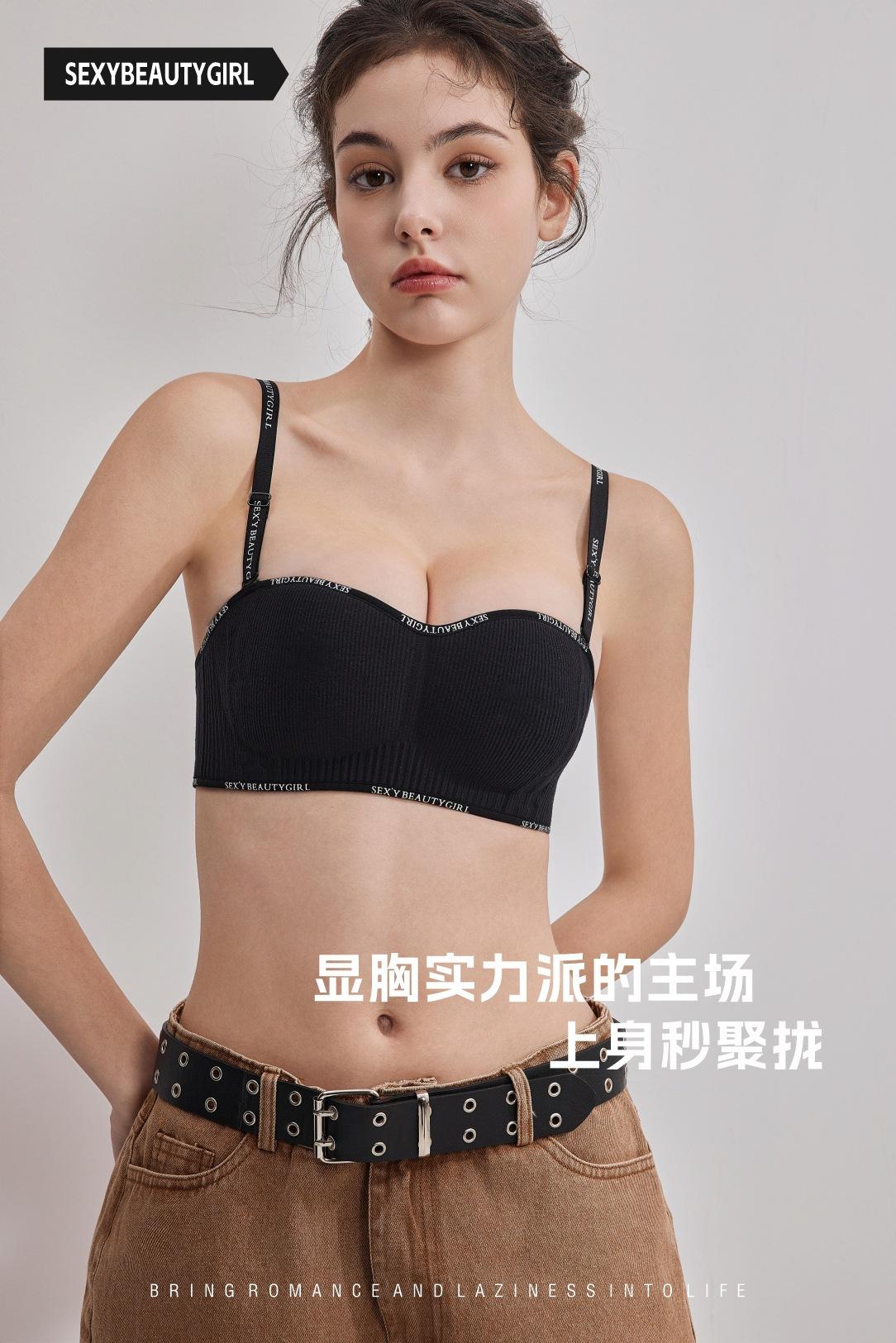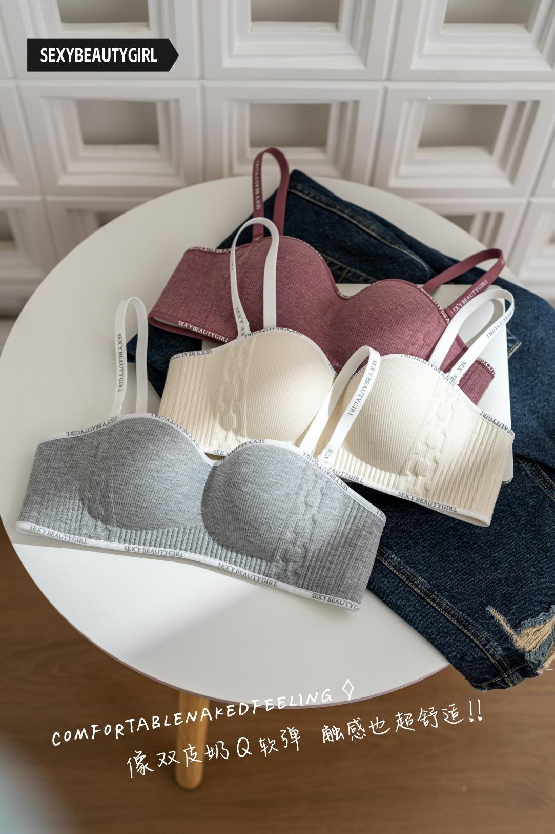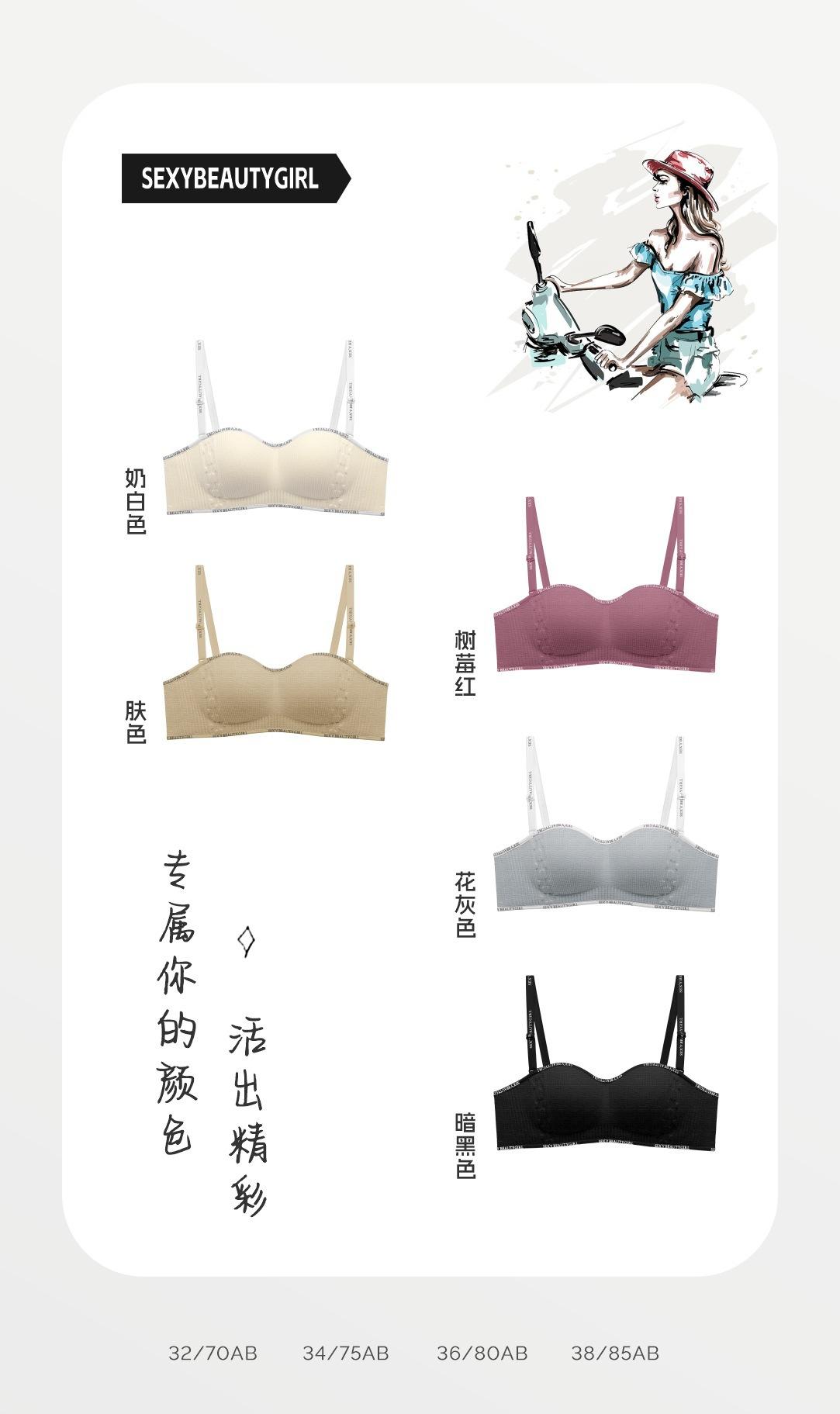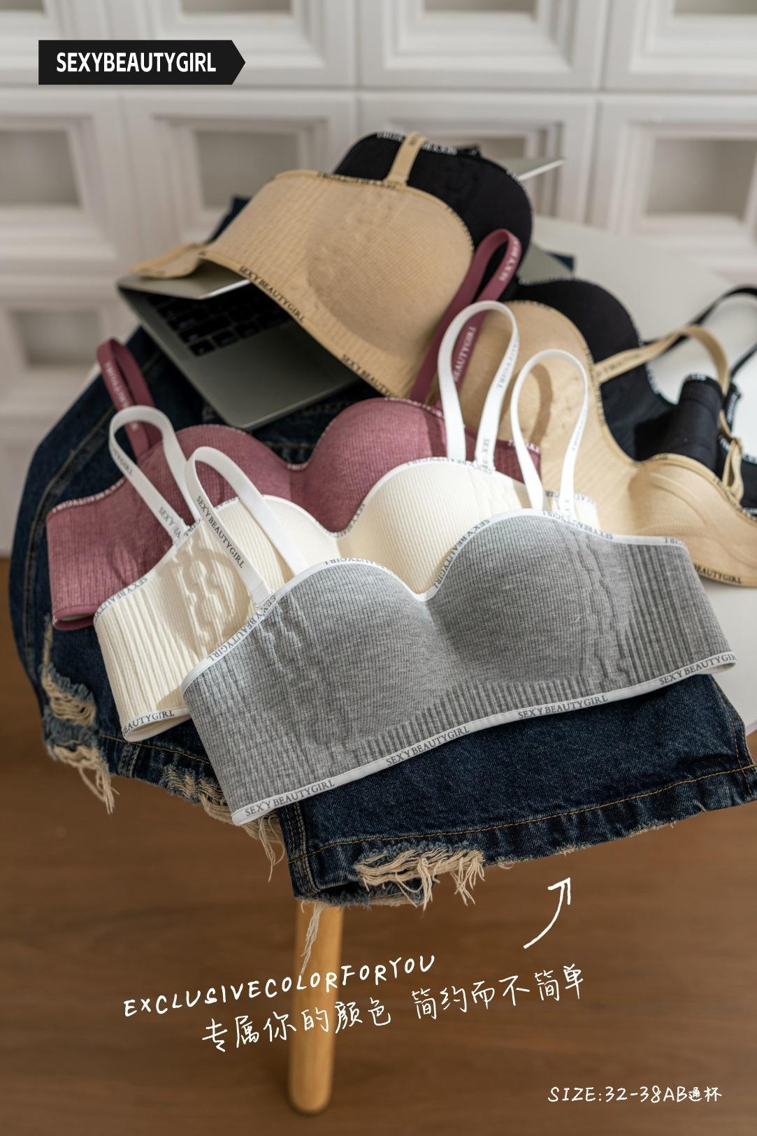 Ropa interior para niña de pecho pequeño push-up pecho de caricatura grande engrosado sin aro de acero anti-caída ajustable extra-expansión sujetador con letras
