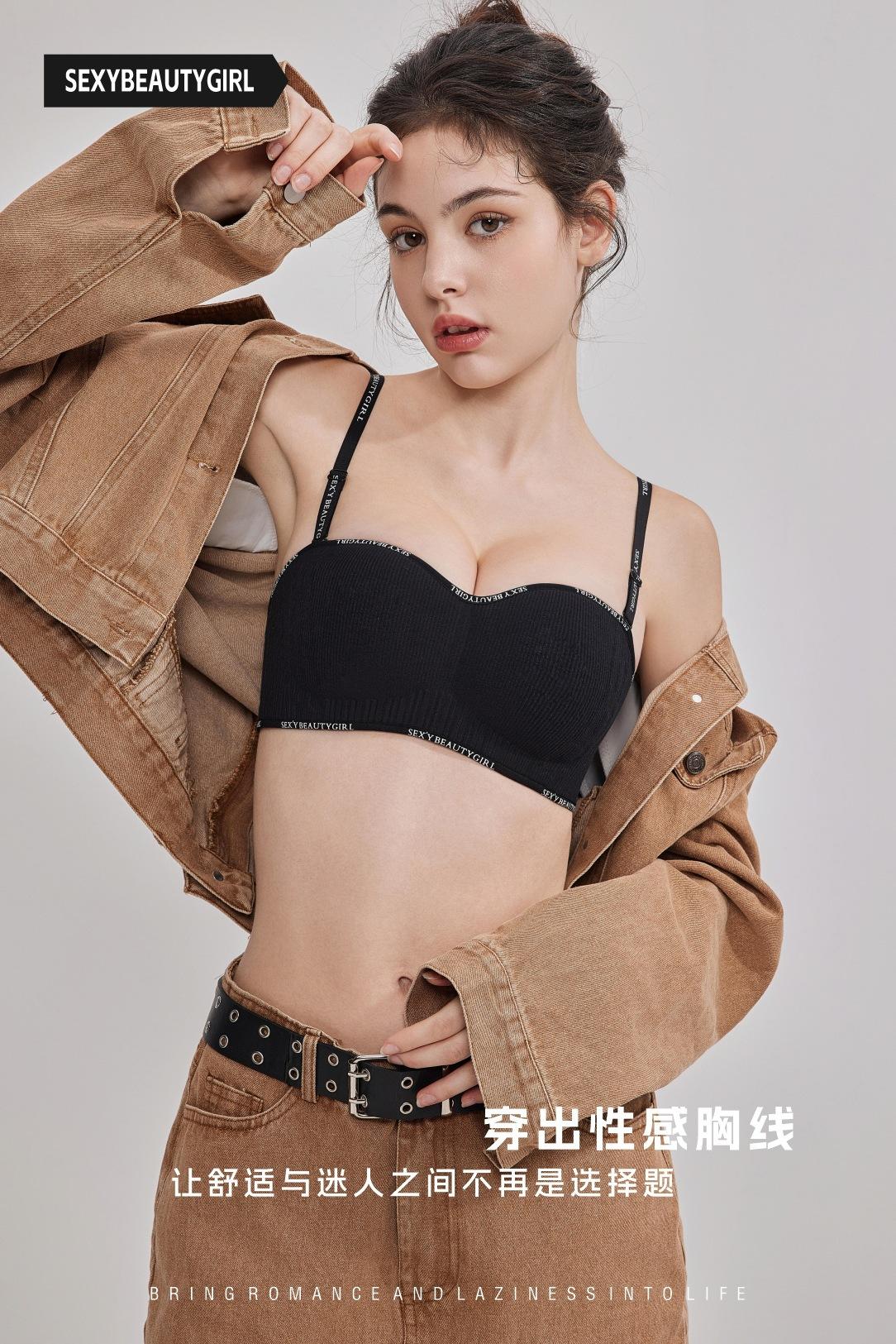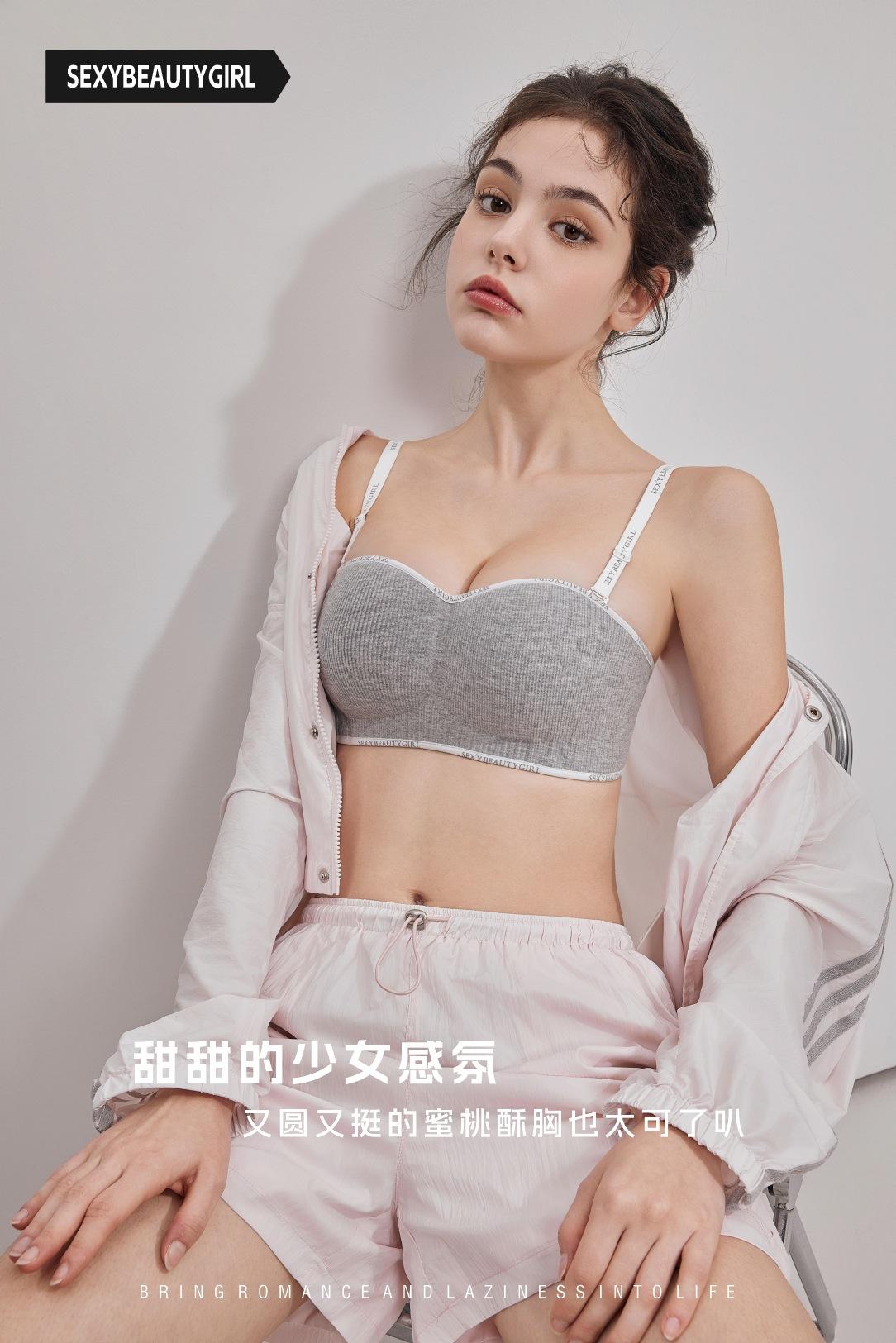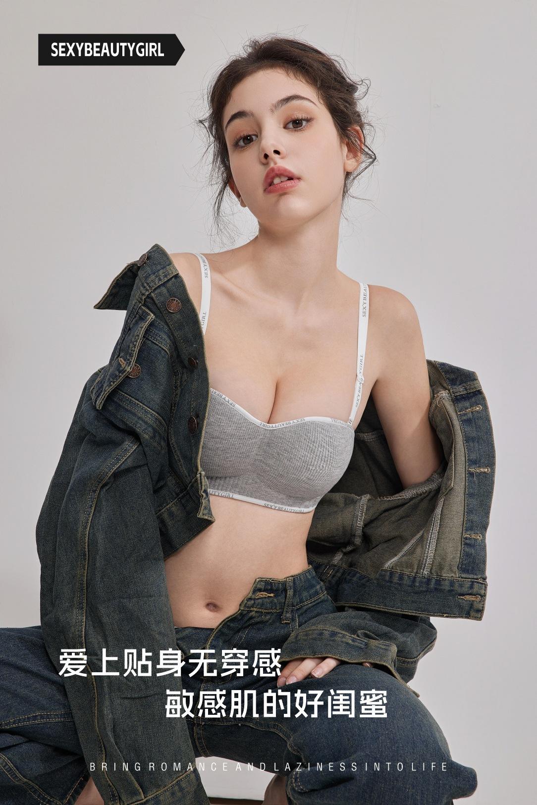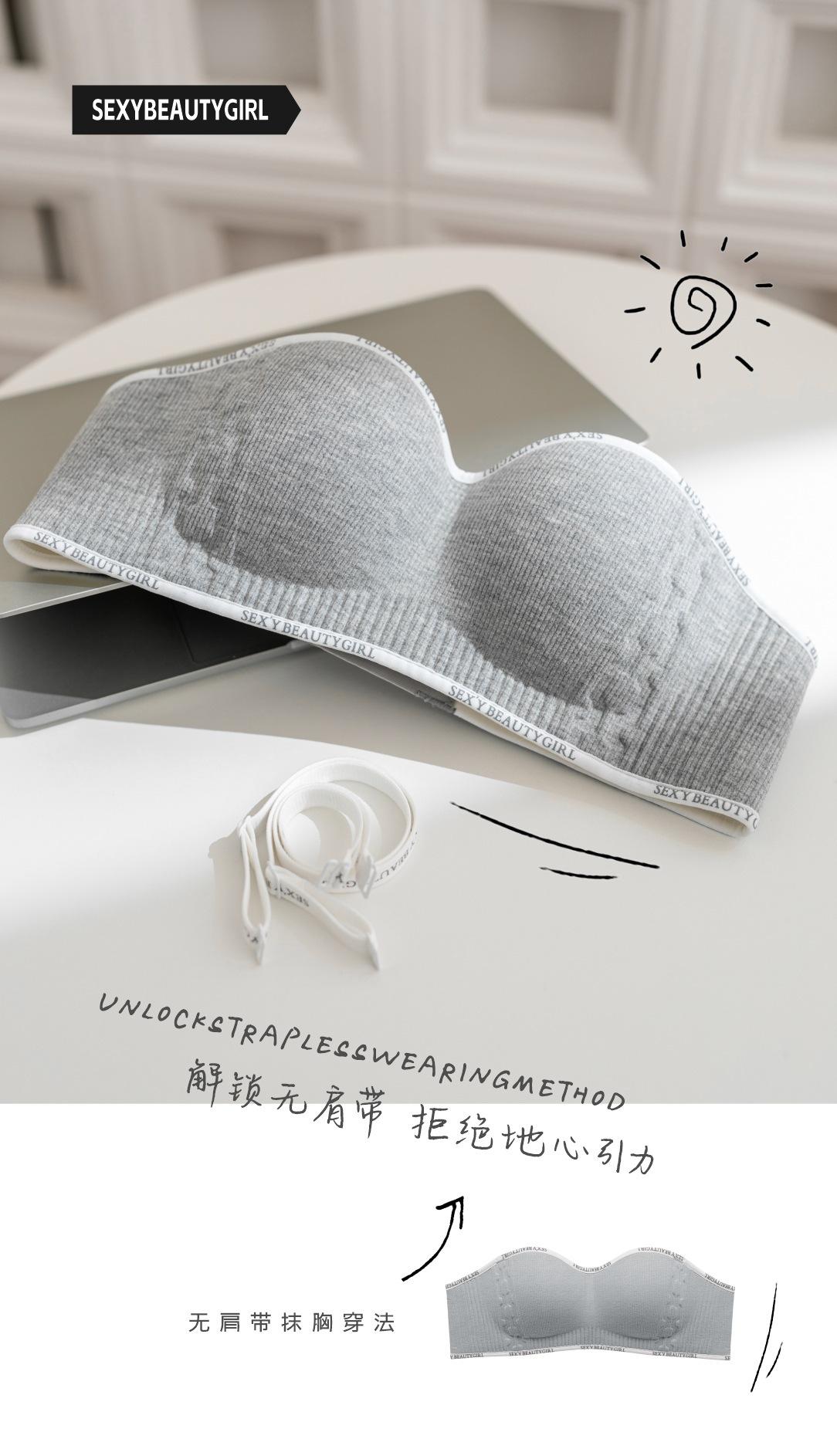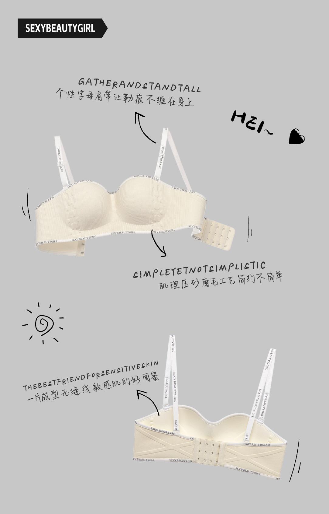 Ropa interior para niña de pecho pequeño push-up pecho de caricatura grande engrosado sin aro de acero anti-caída ajustable extra-expansión sujetador con letras